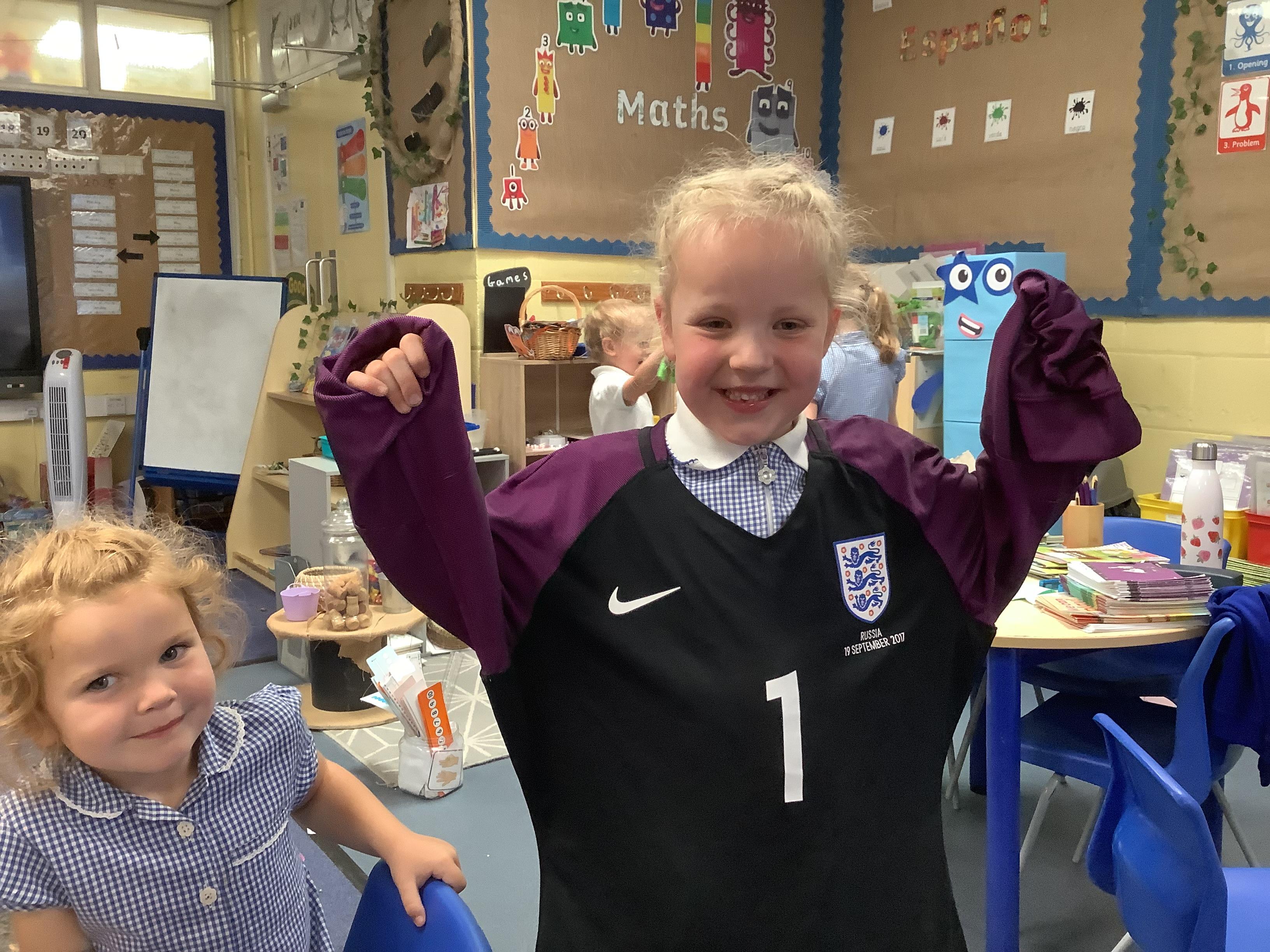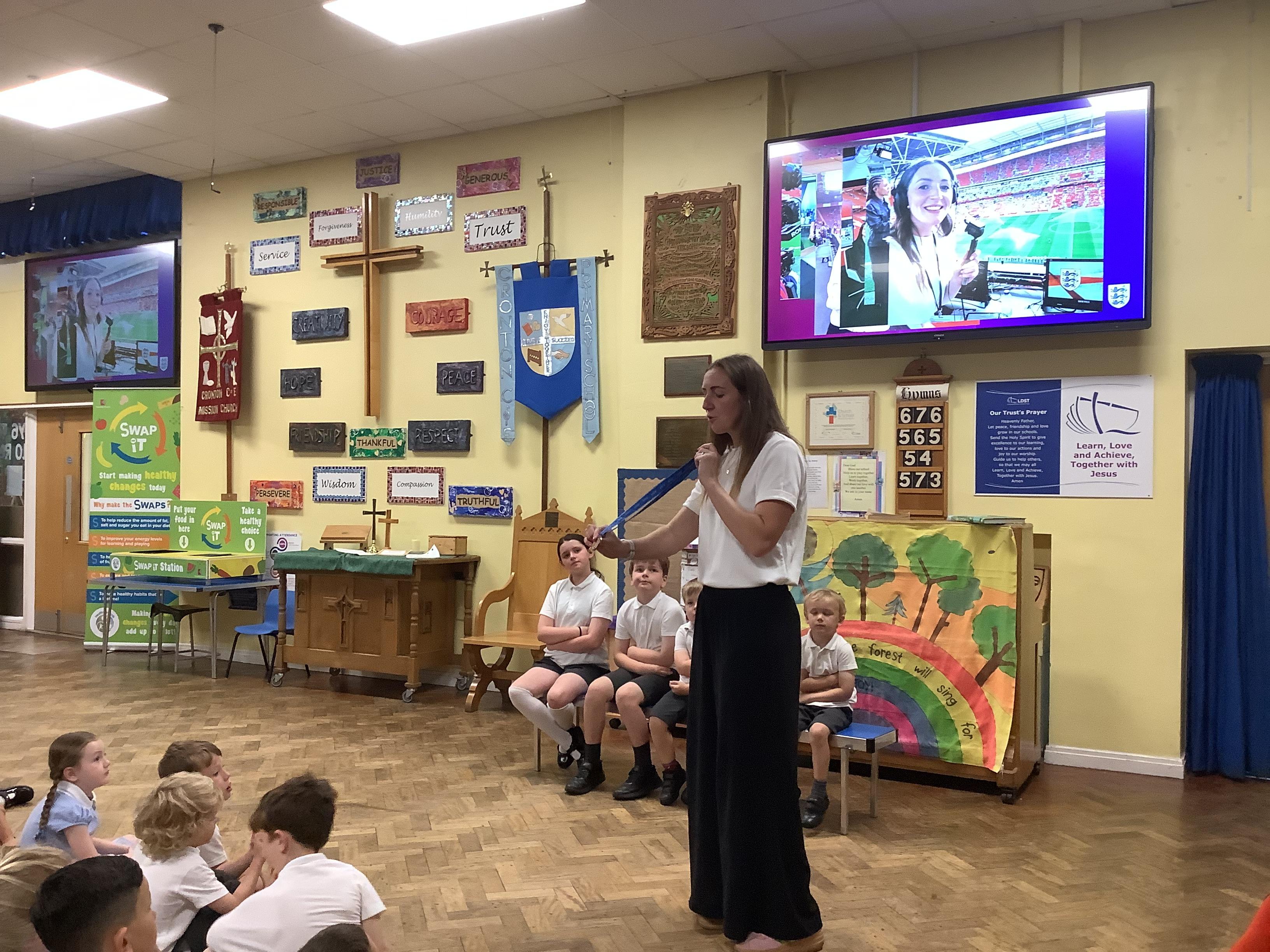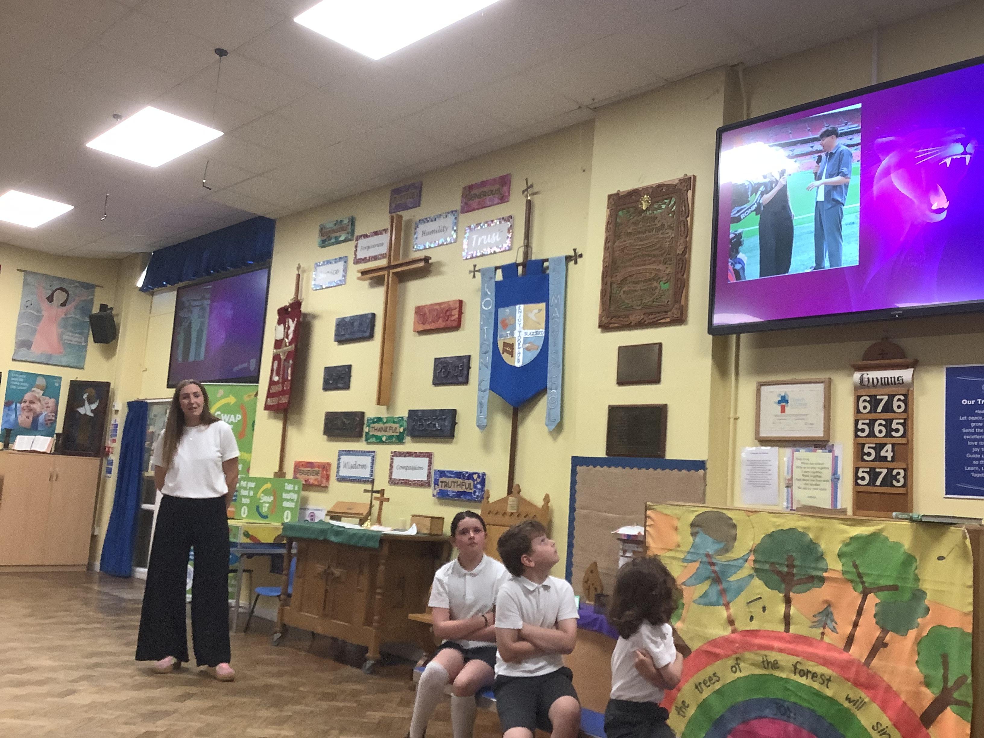 The excitement didn’t stop there. On Thursday morning, we had a very special worship led by Emilia’s mummy, who shared her inspiring journey to becoming a professional footballer. She brought in her England caps, medals, and even her giant Panini football card! The children were thrilled and asked some brilliant questions to find out more about her experiences.