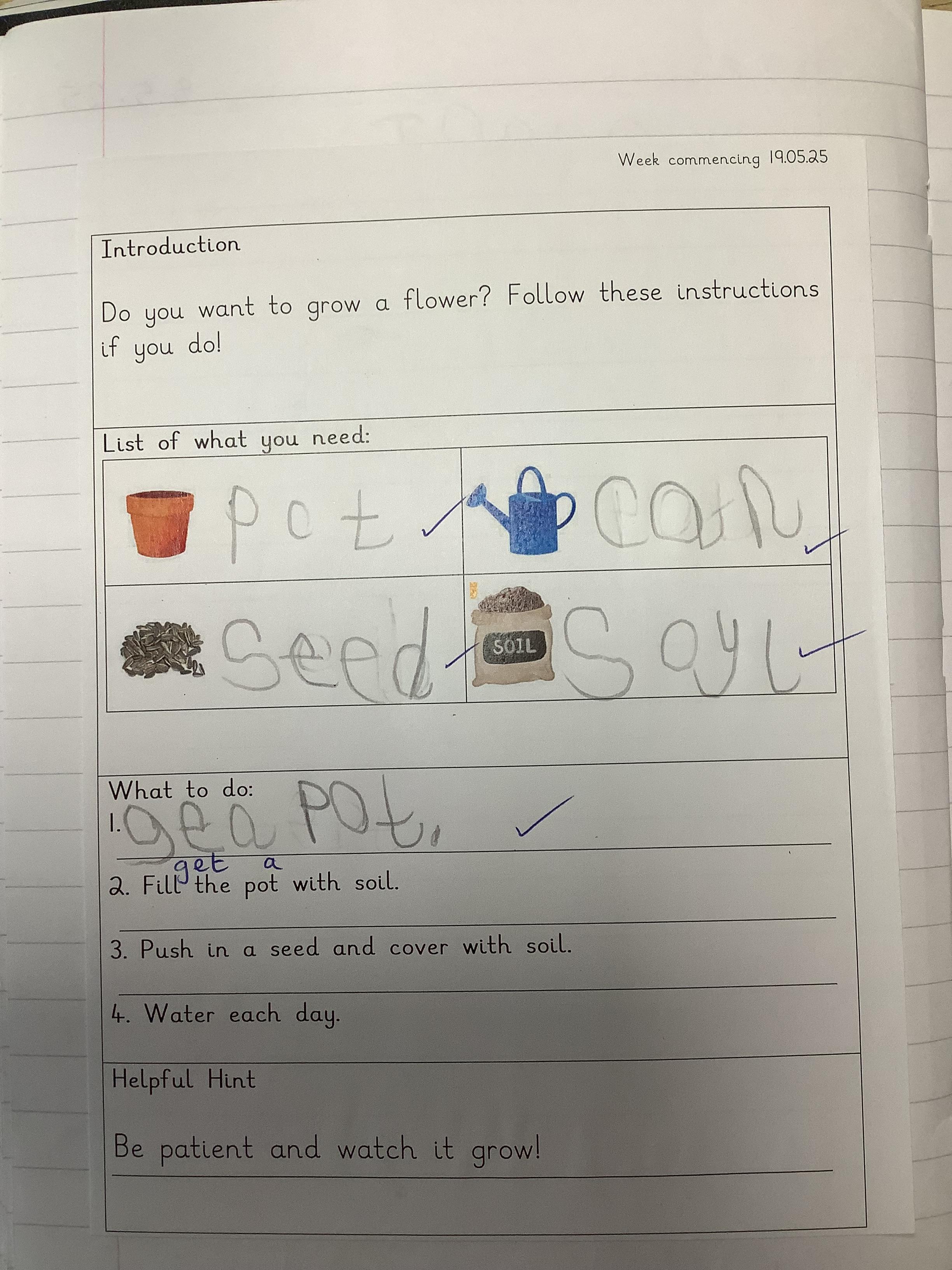 The activity gave the children a chance to follow their own instructions and see how writing can be used in real life. They were excited to get their hands dirty and enjoyed the experience of planting, showing great care and enthusiasm.