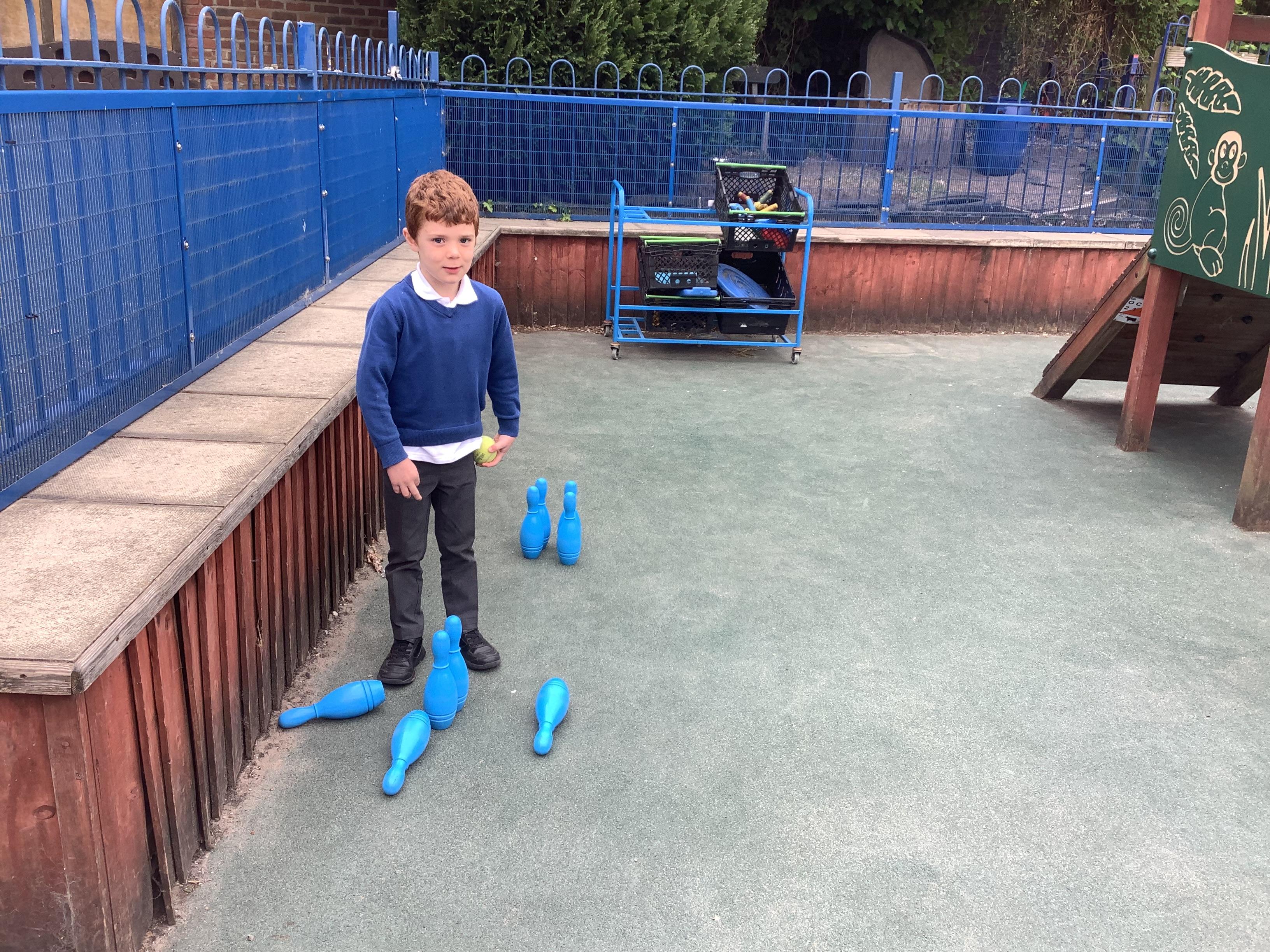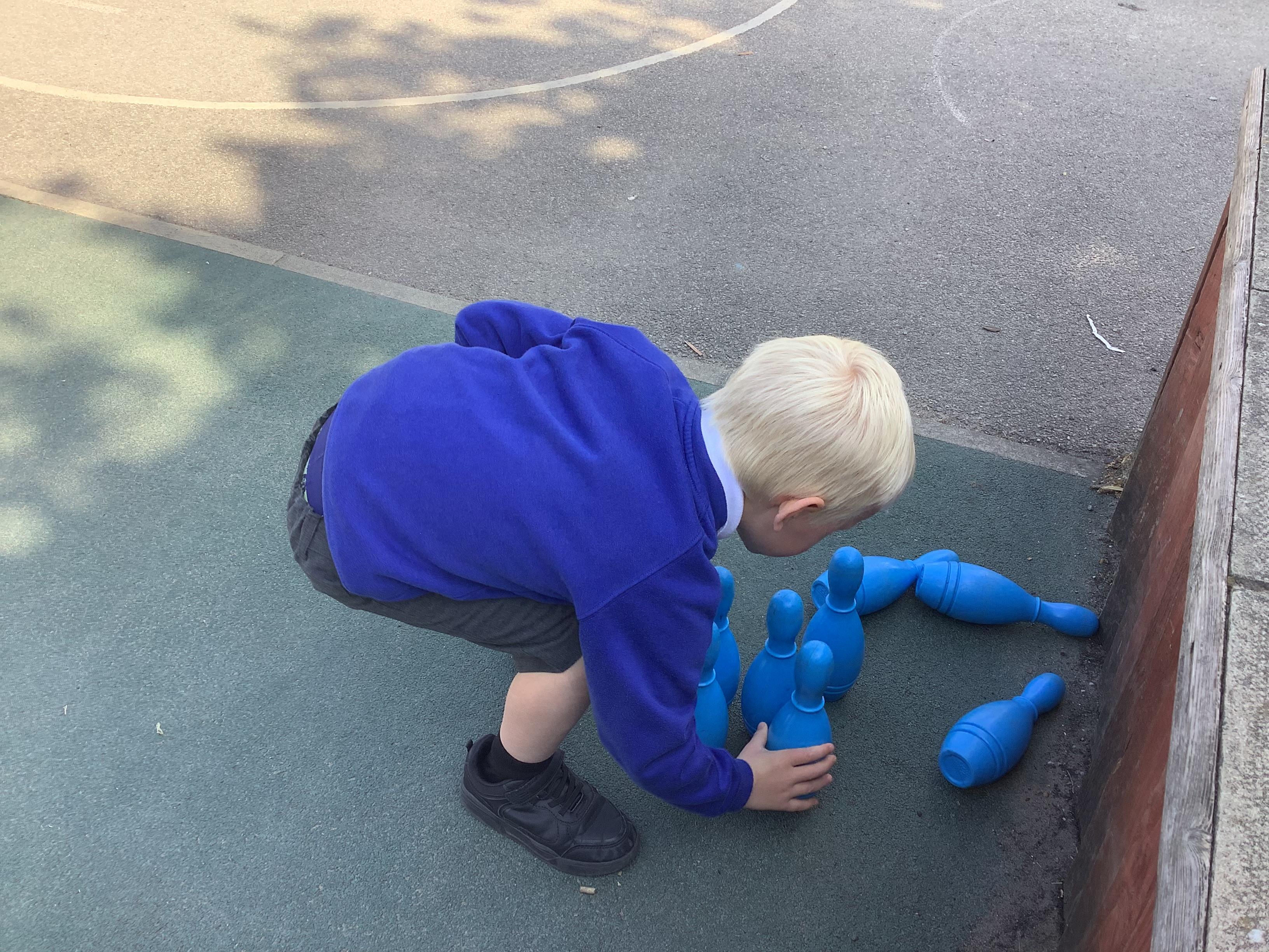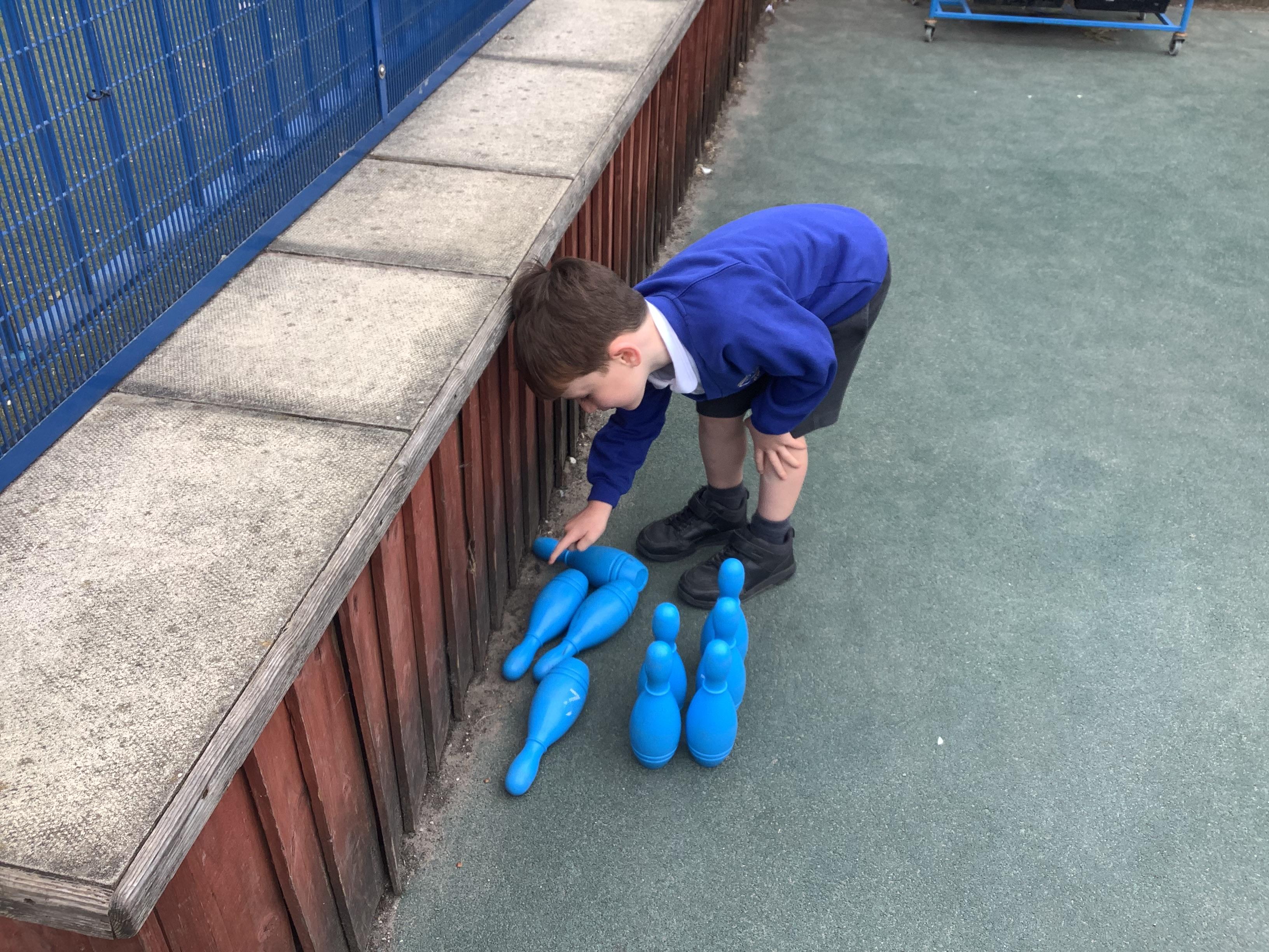 This week in Maths, Reception Class have been busy securing their understanding of subtraction facts through practical activities. One of the highlights was playing skittles, where the children practised subtracting by counting how many skittles they knocked over each turn.