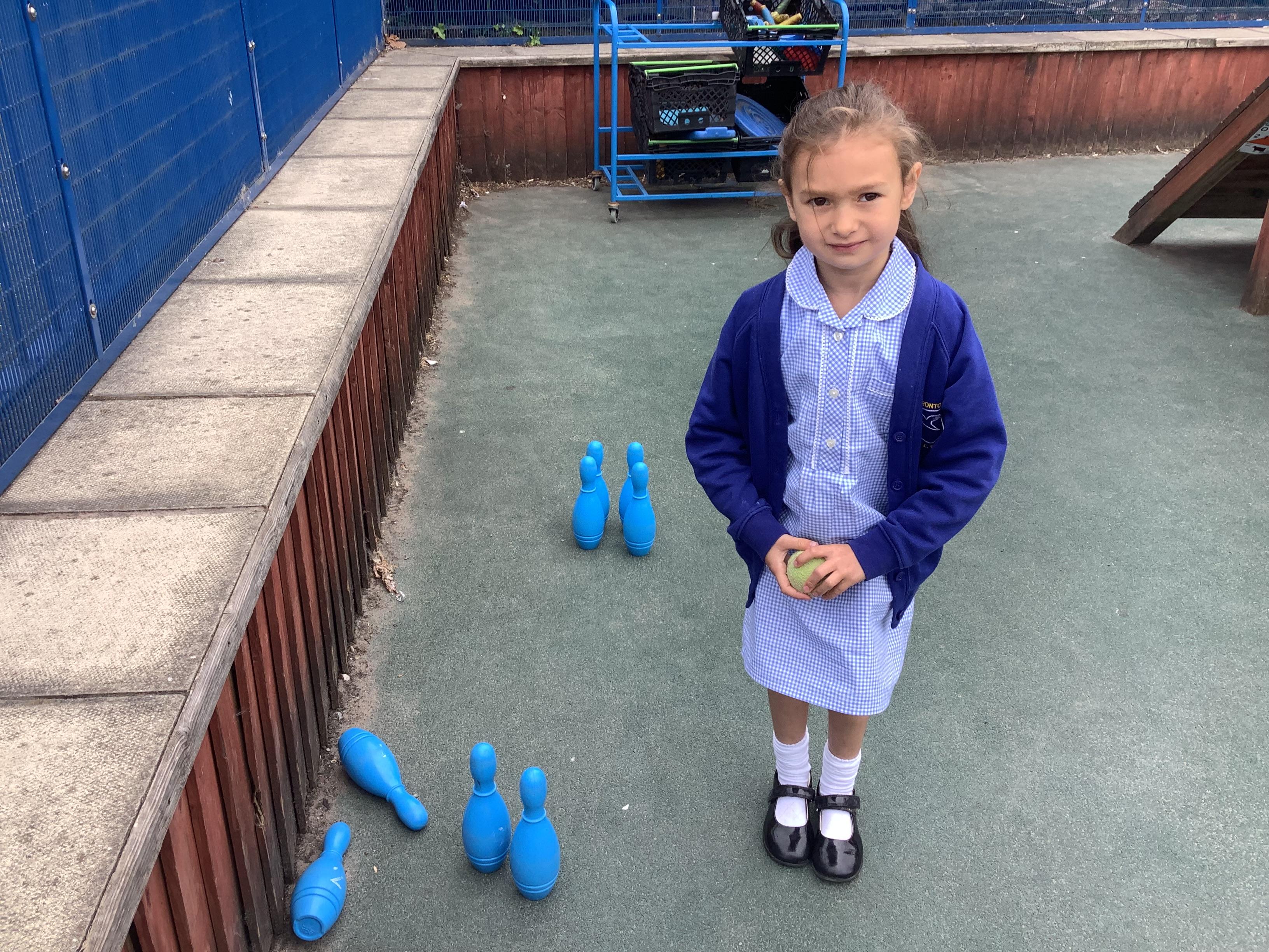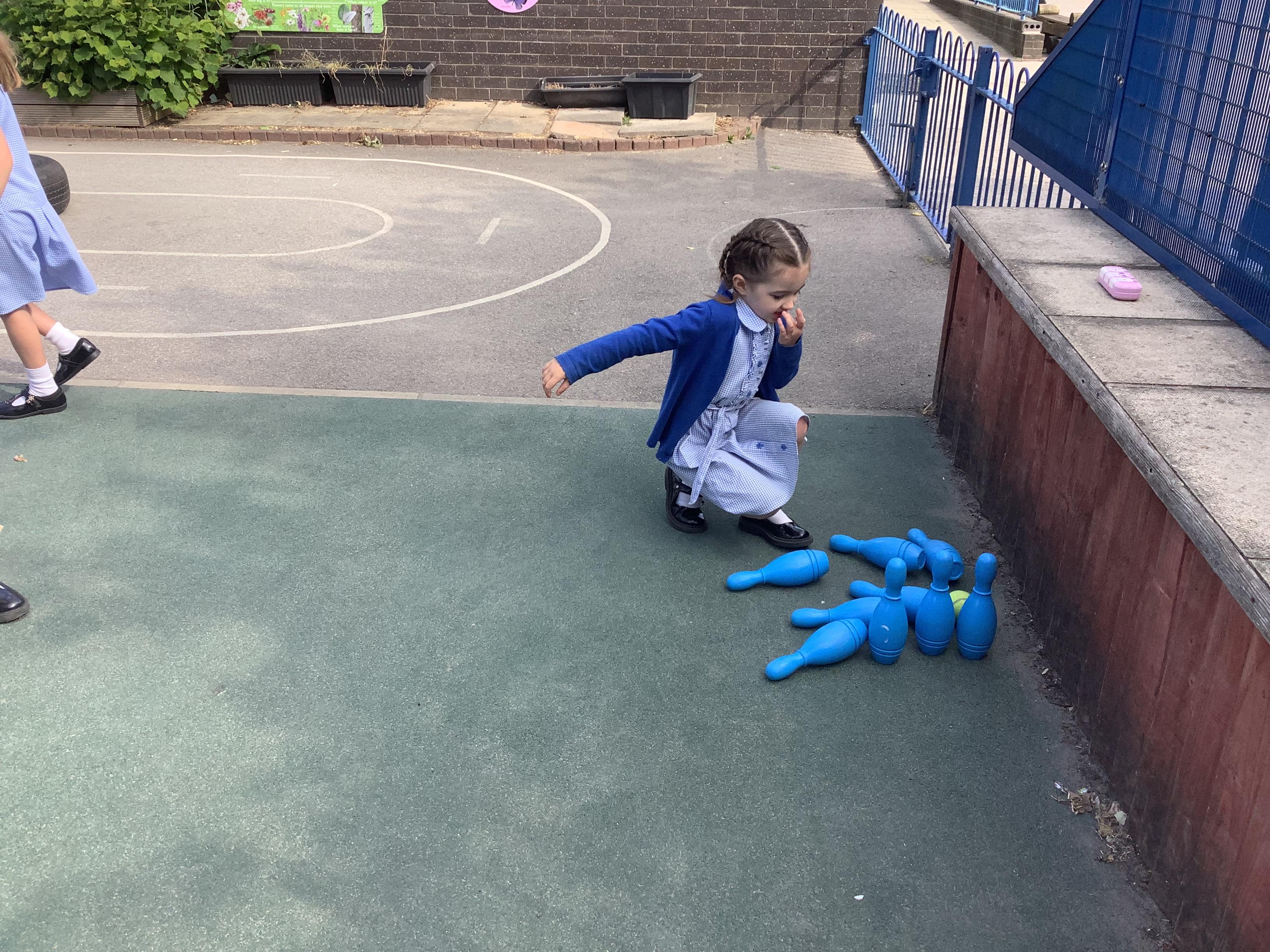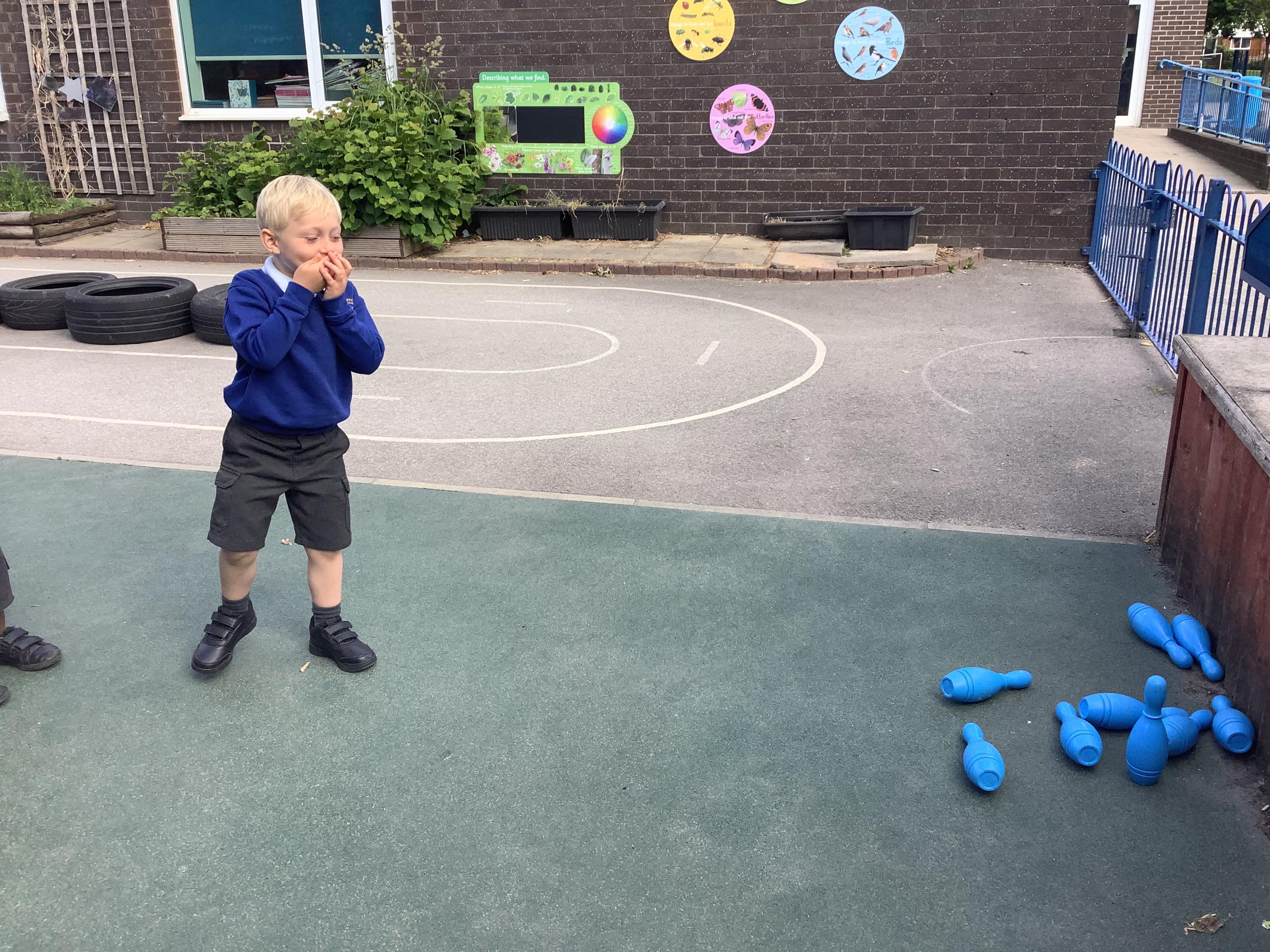 This week in Maths, Reception Class have been busy securing their understanding of subtraction facts through practical activities. One of the highlights was playing skittles, where the children practised subtracting by counting how many skittles they knocked over each turn.