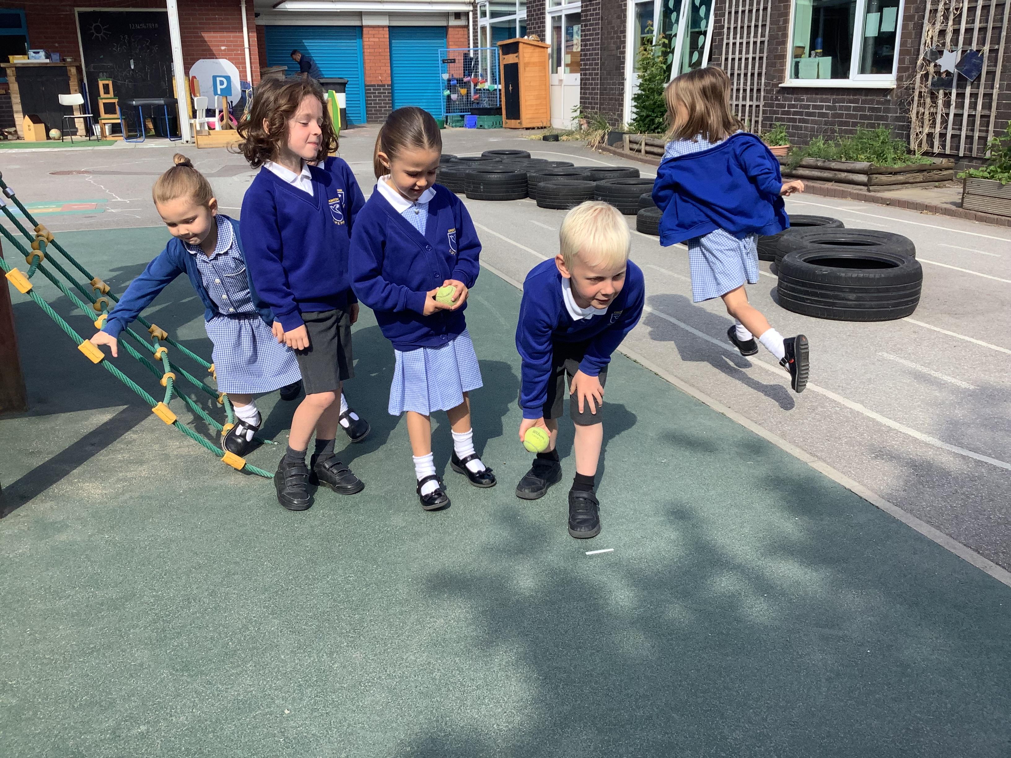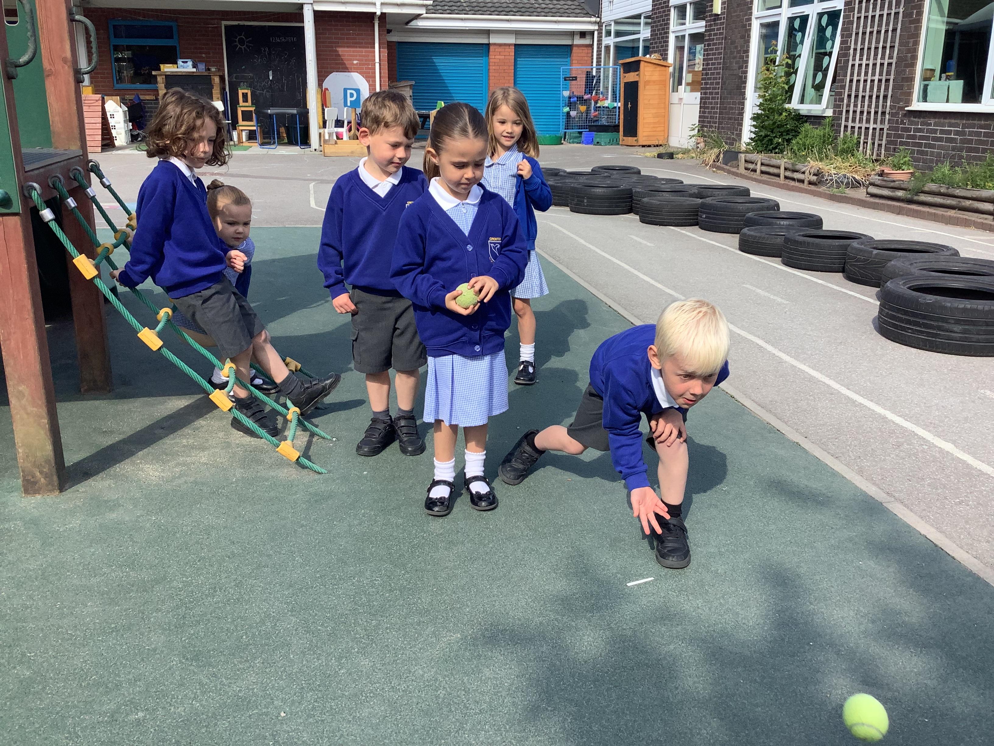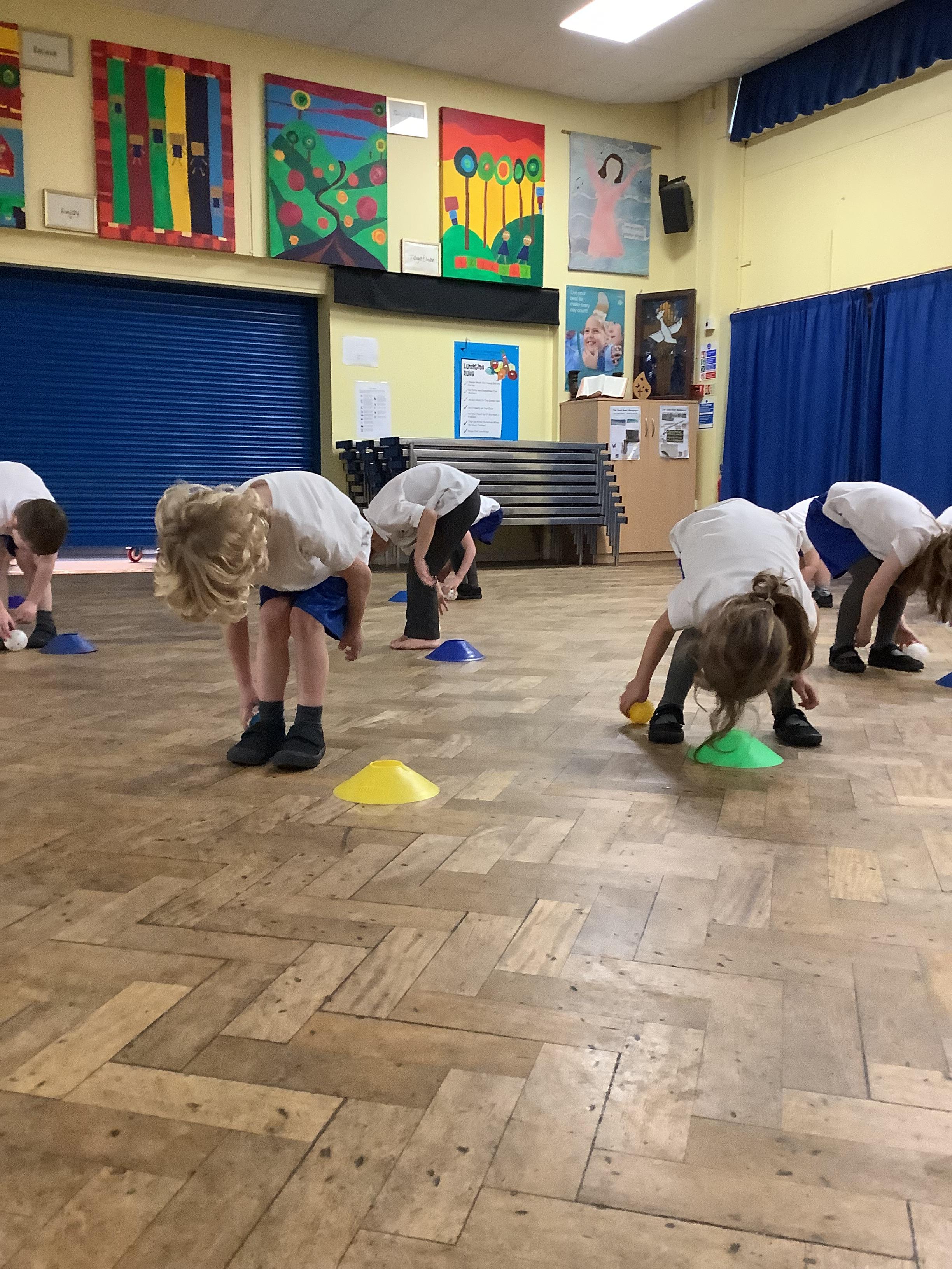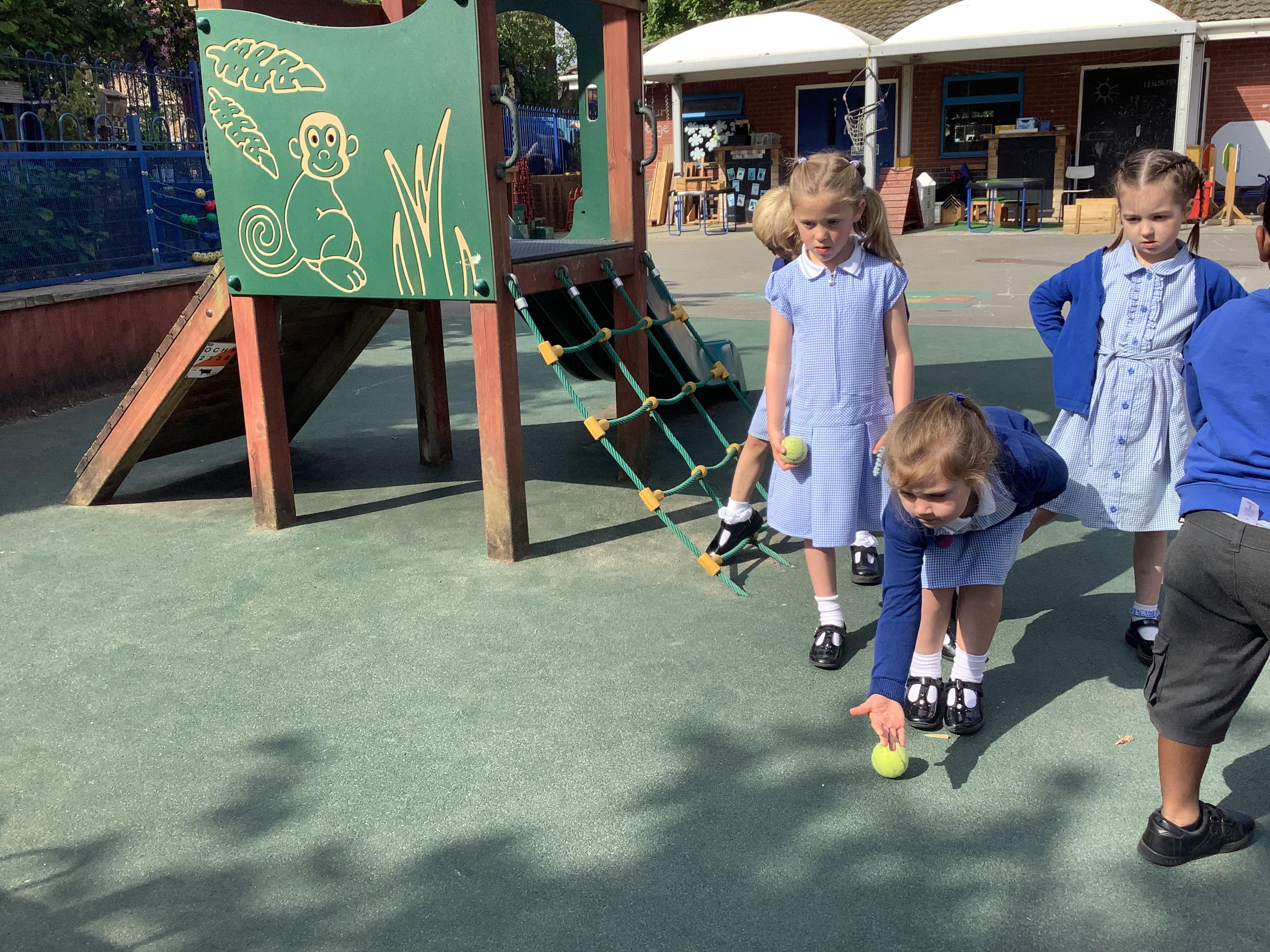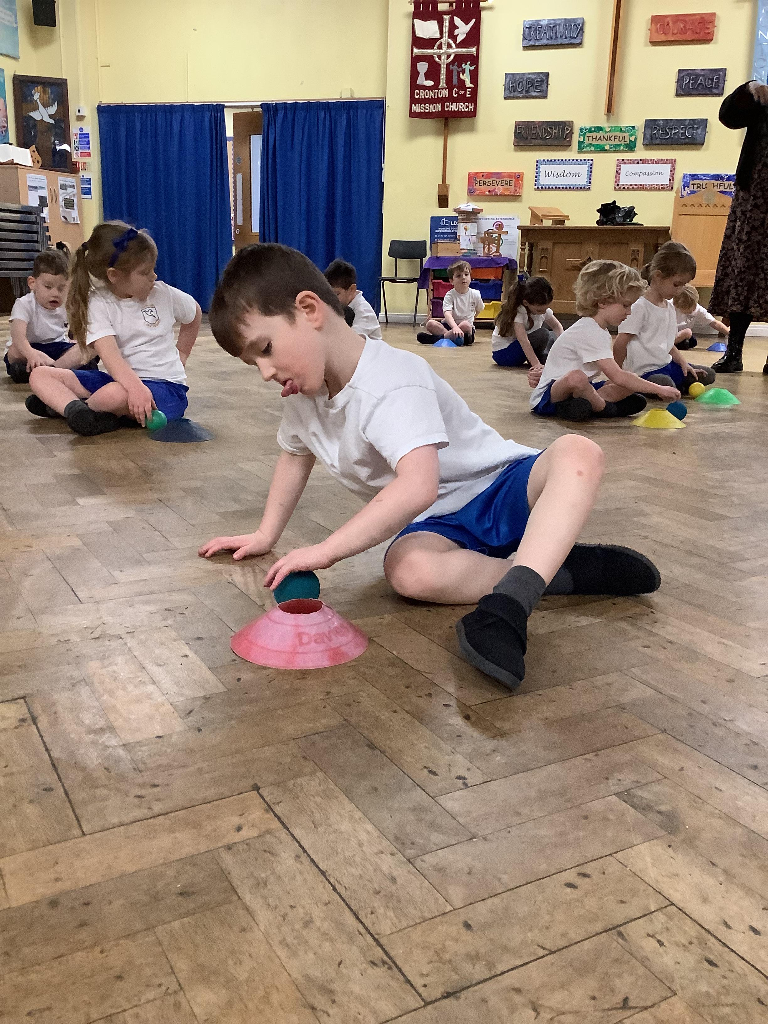 In PE, the children showed excellent control as we rolled the ball and used our skills to play an individual and partner game.
