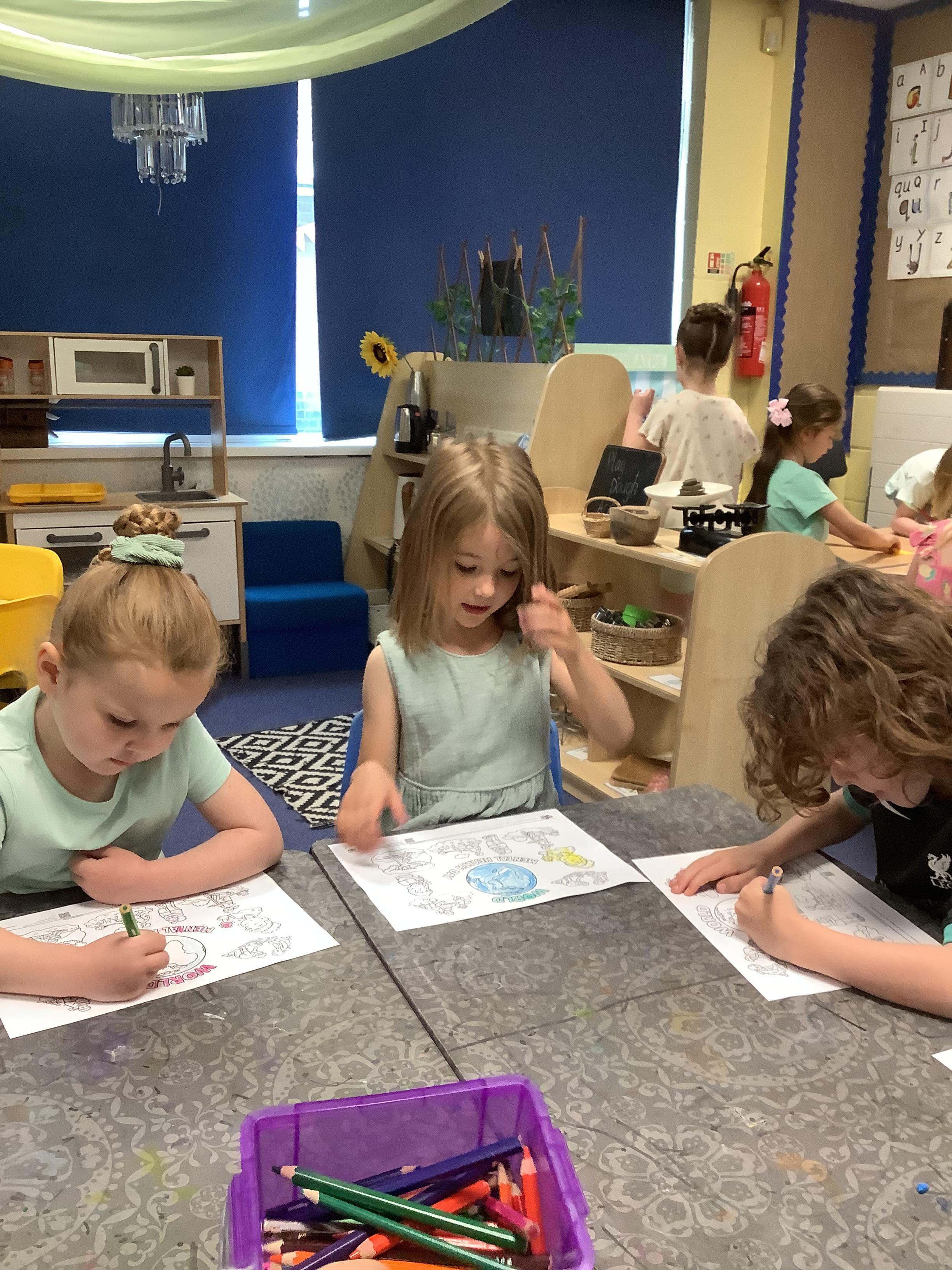 They began with mindfulness colouring, which encouraged calmness and focus. The class also enjoyed dancing, helping them express themselves and boost their mood through movement. Throughout the day, there was plenty of child-initiated play, giving the children the freedom to explore their own interests and develop their social and emotional skills.