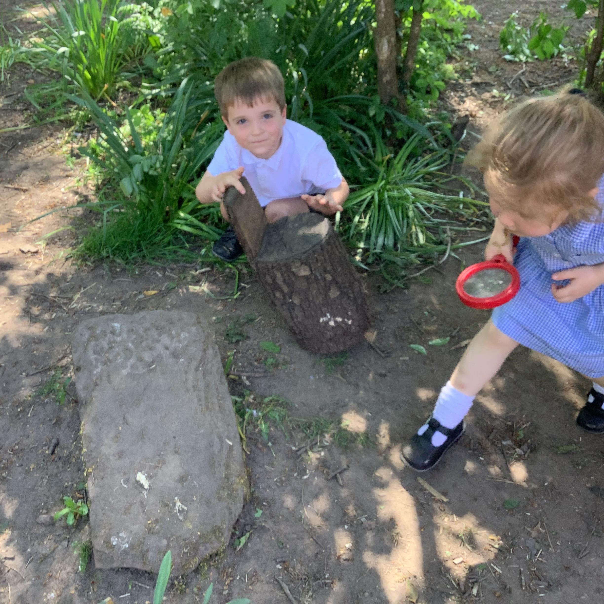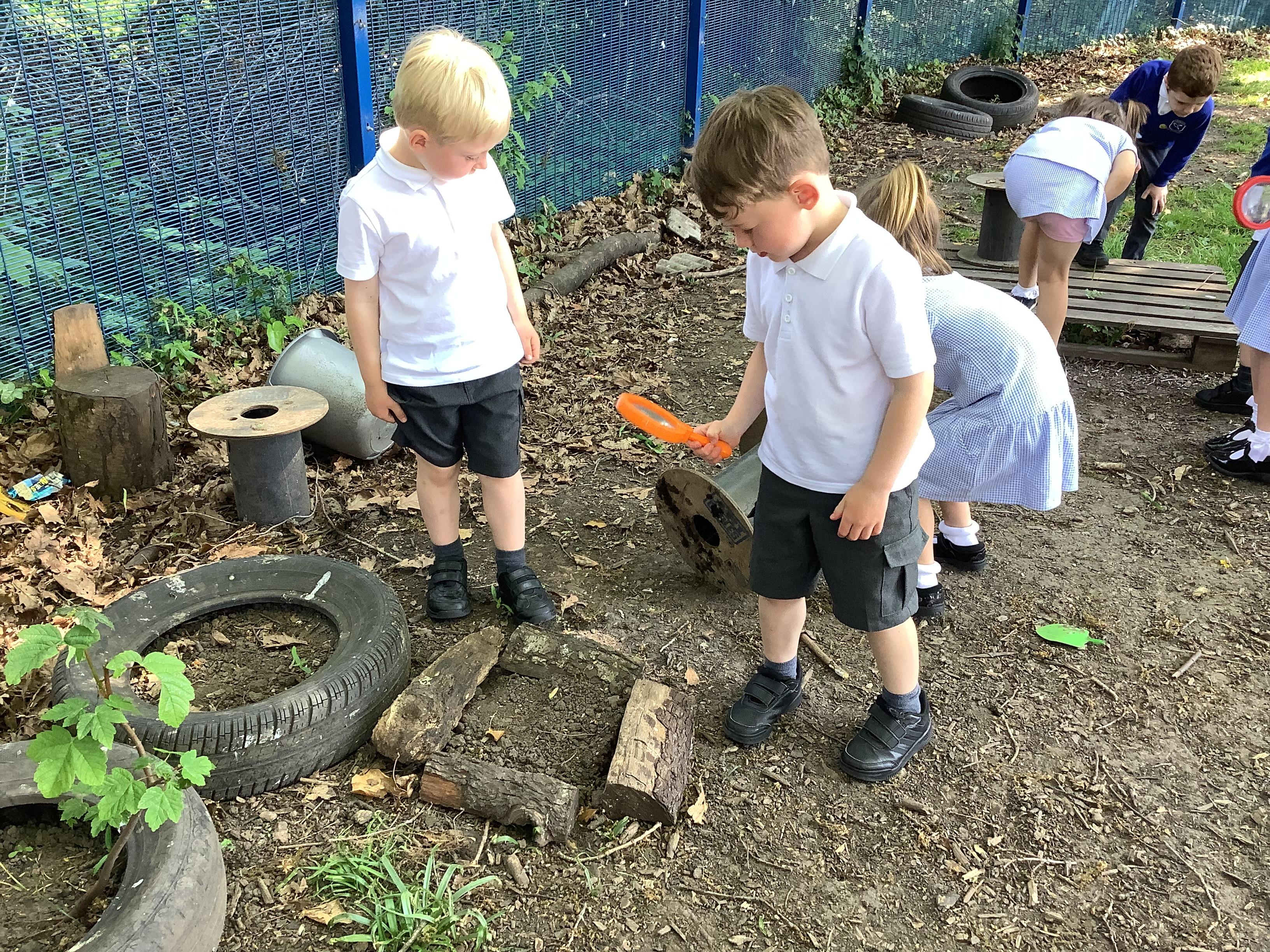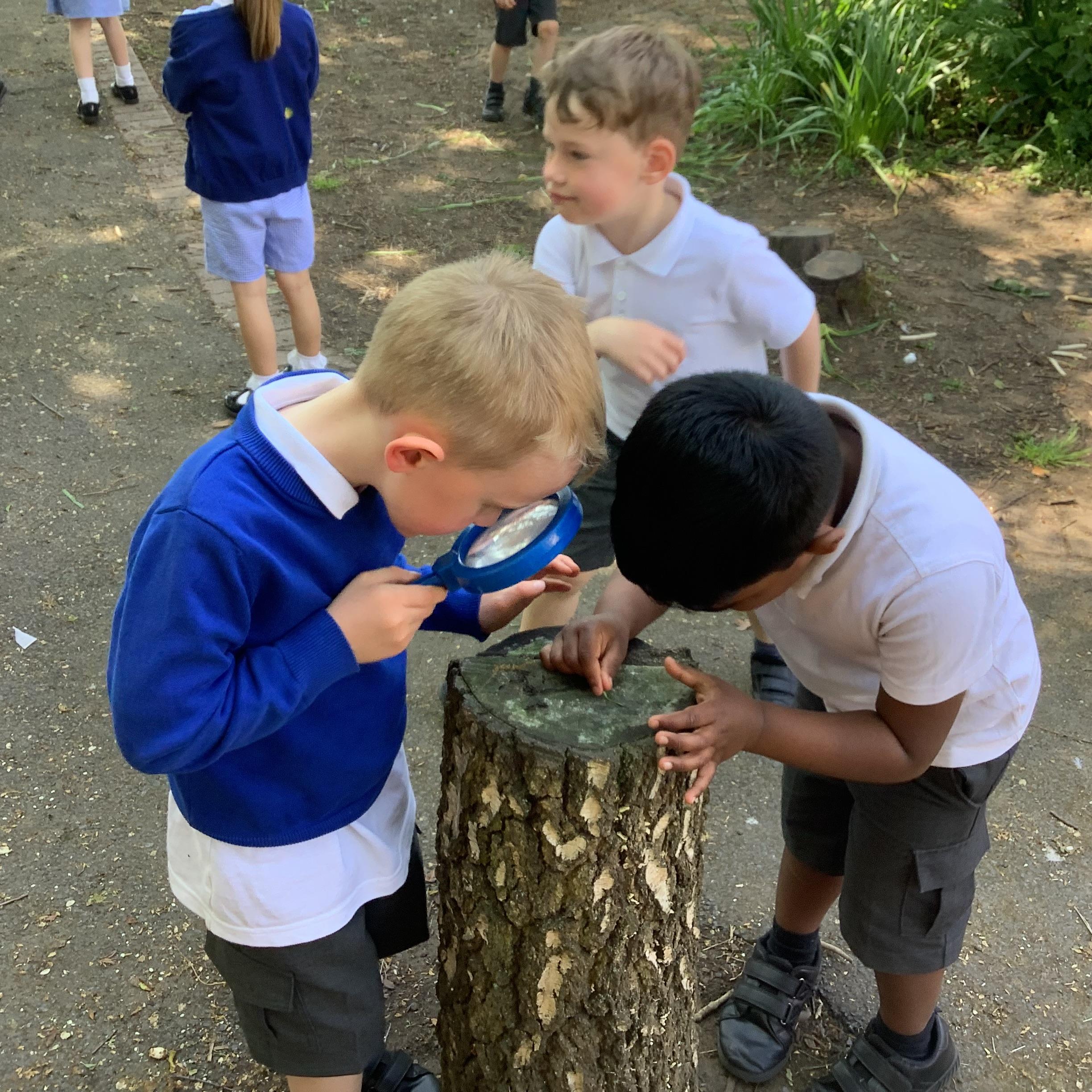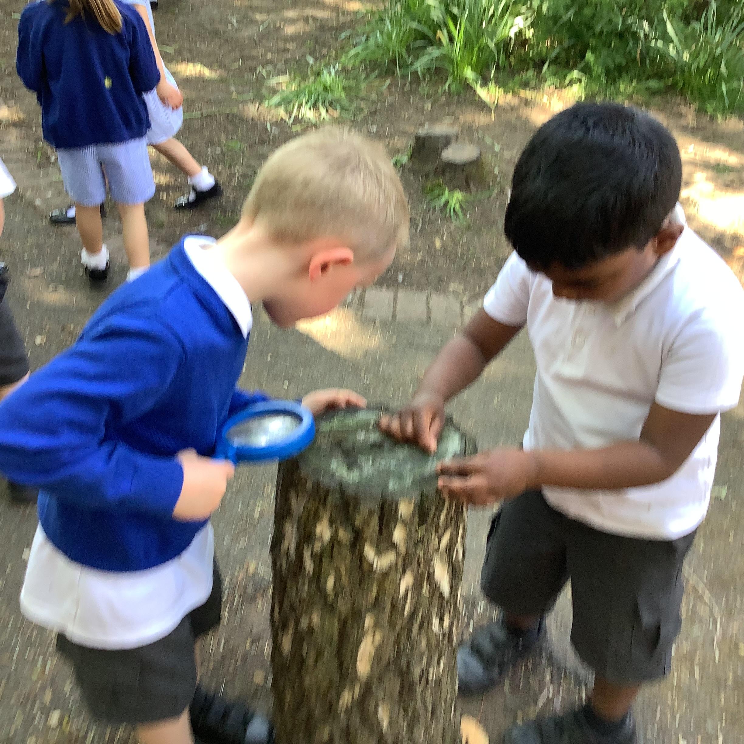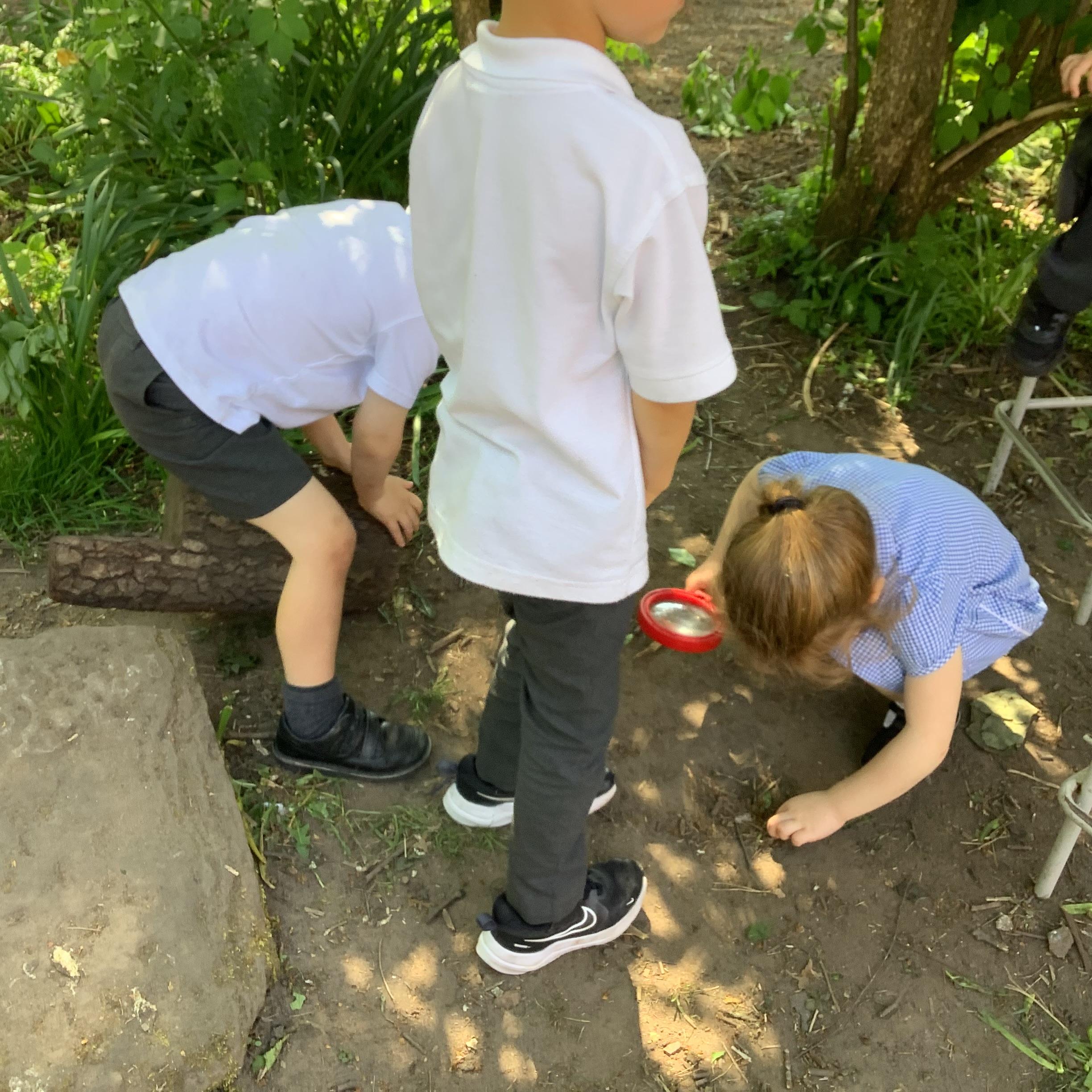 After exploring different minibeast habitats in class—like damp logs, leafy bushes, and hidden corners under stones—the children were eager to find out where their favourite creepy crawlies might be hiding in real life. Armed with magnifying glasses, observation pots, and lots of curiosity, they searched high and low, using everything they had learnt to make predictions and spot signs of life.