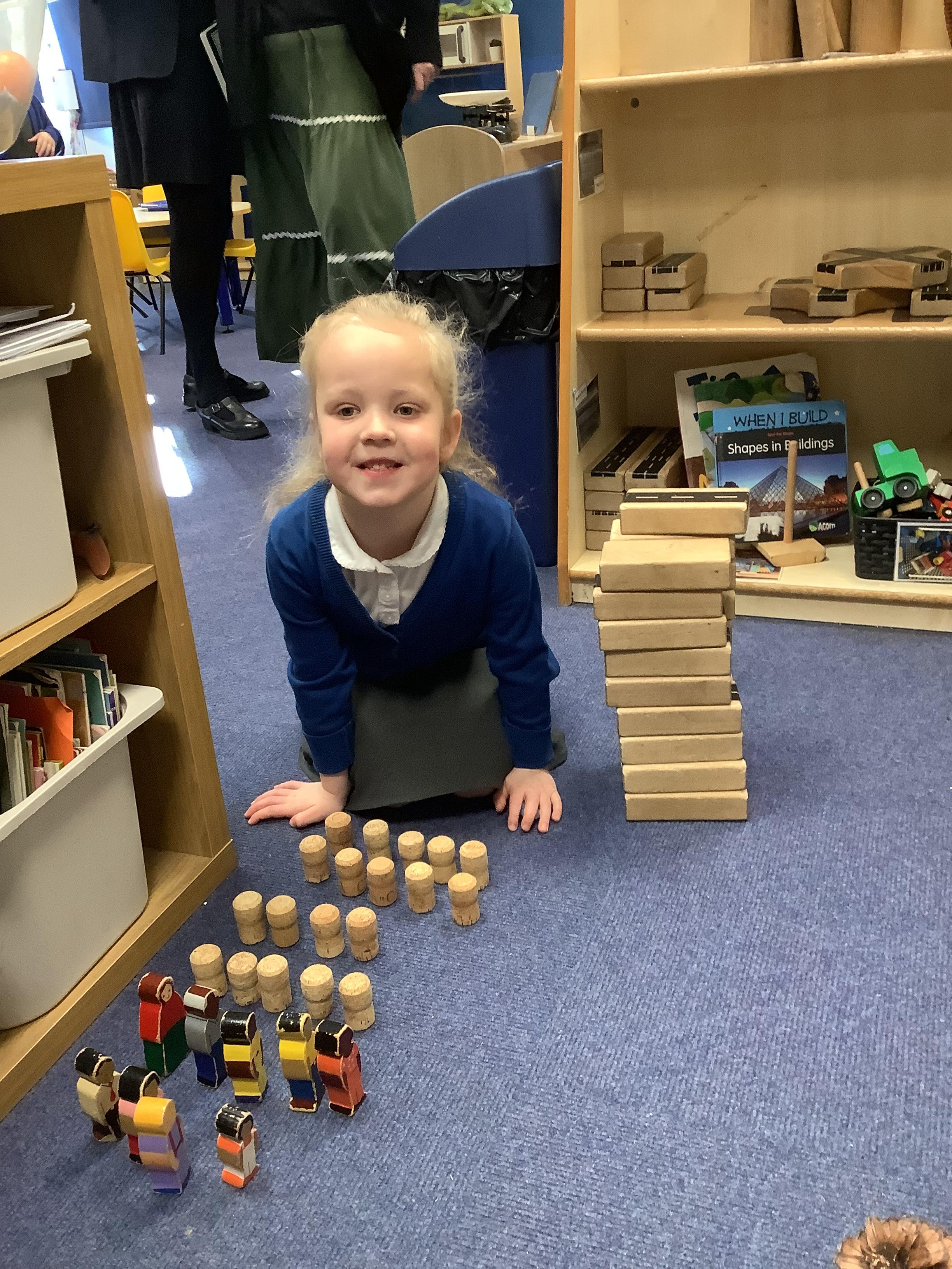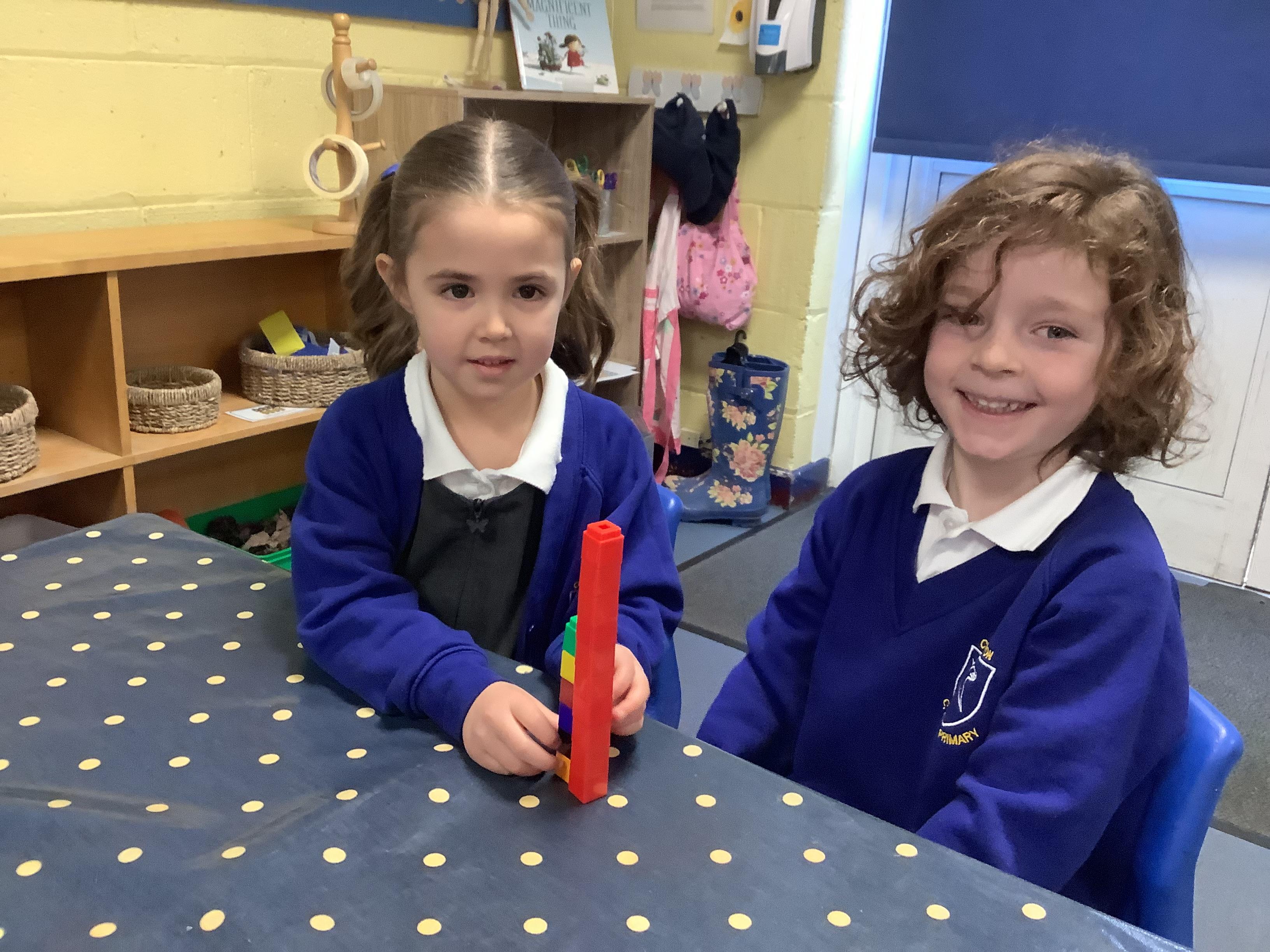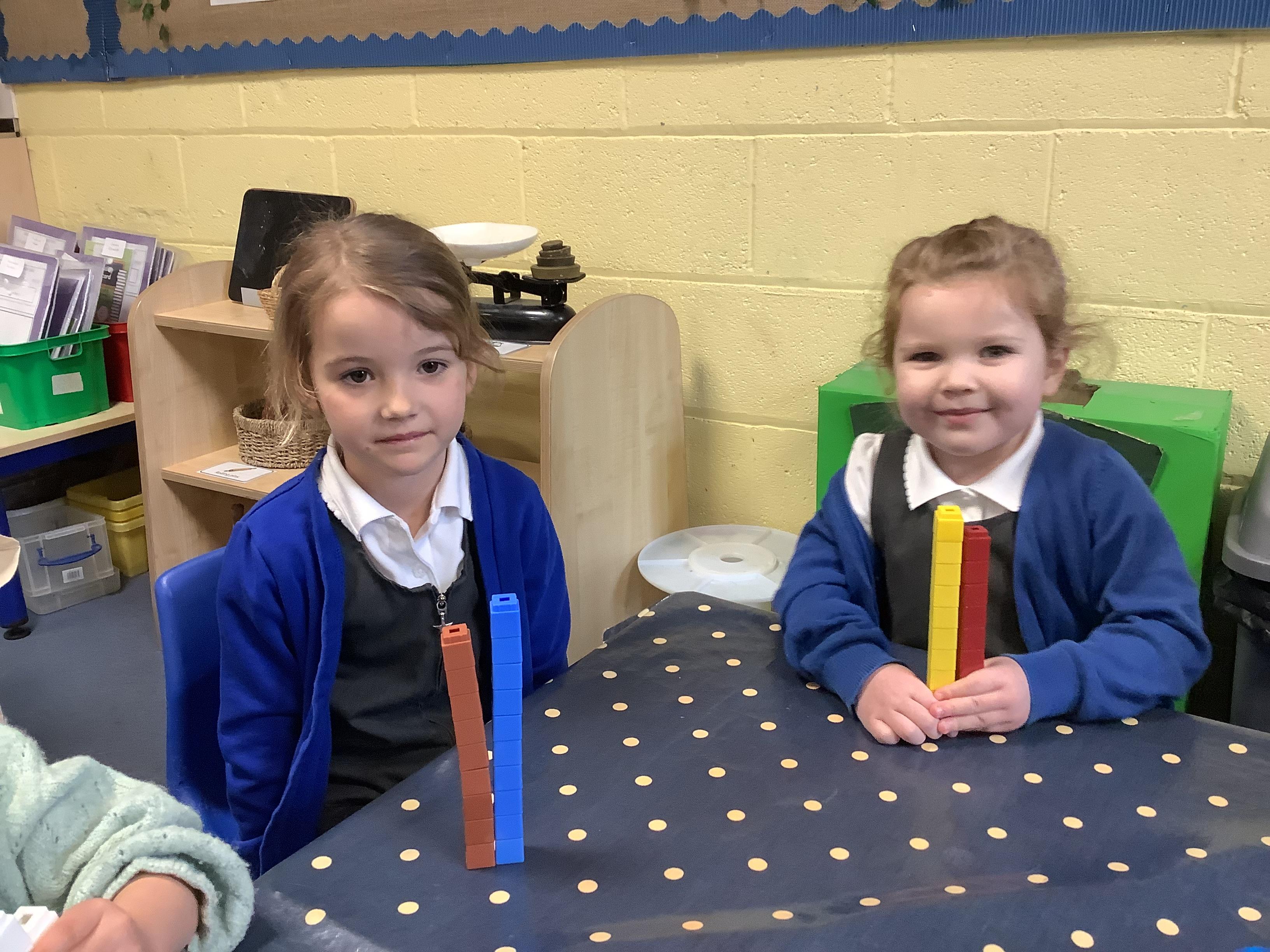 In Maths, we have been learning to explore and compare length and height. We used size vocabulary to compare towers, we used cubes to measure the length of Superhero footprints and we ordered the superheroes by their size.