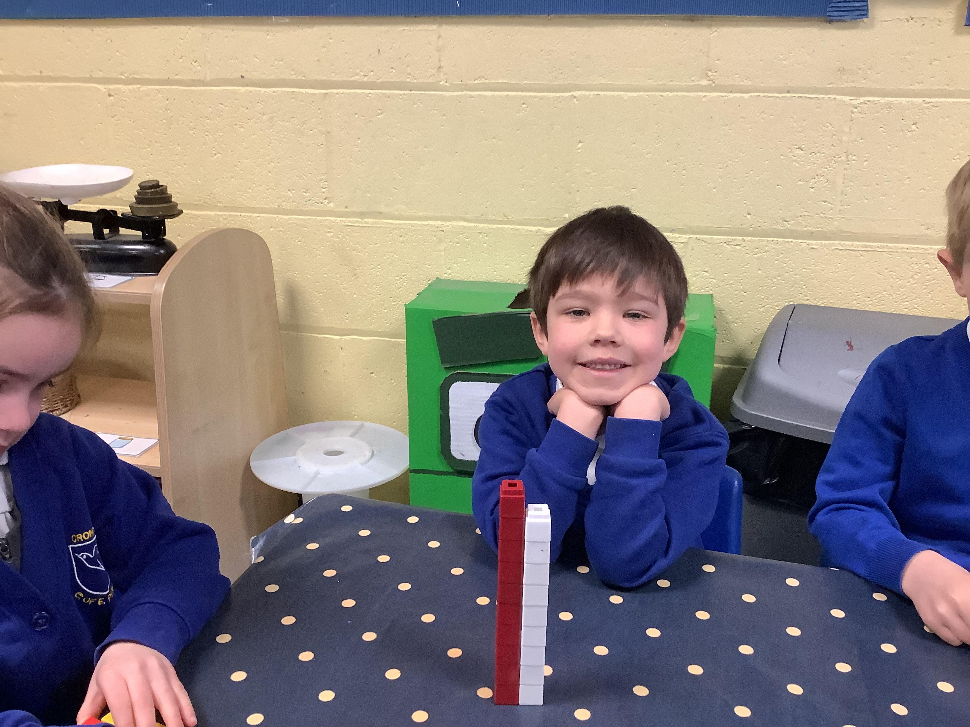 To stretch their thinking even further, Mrs Myler set them a challenge to subtract from bigger numbers, which the children tackled with great enthusiasm and determination.