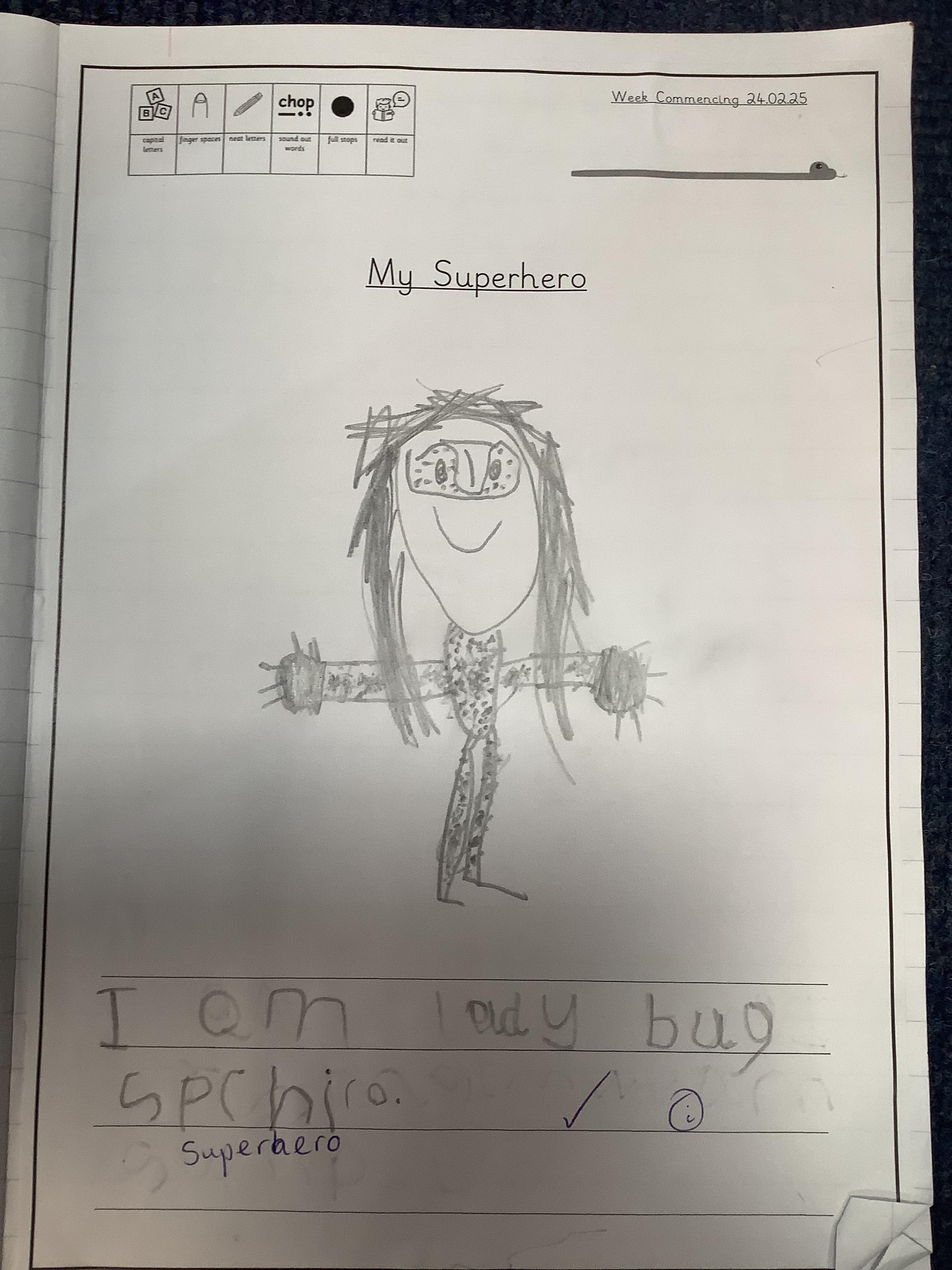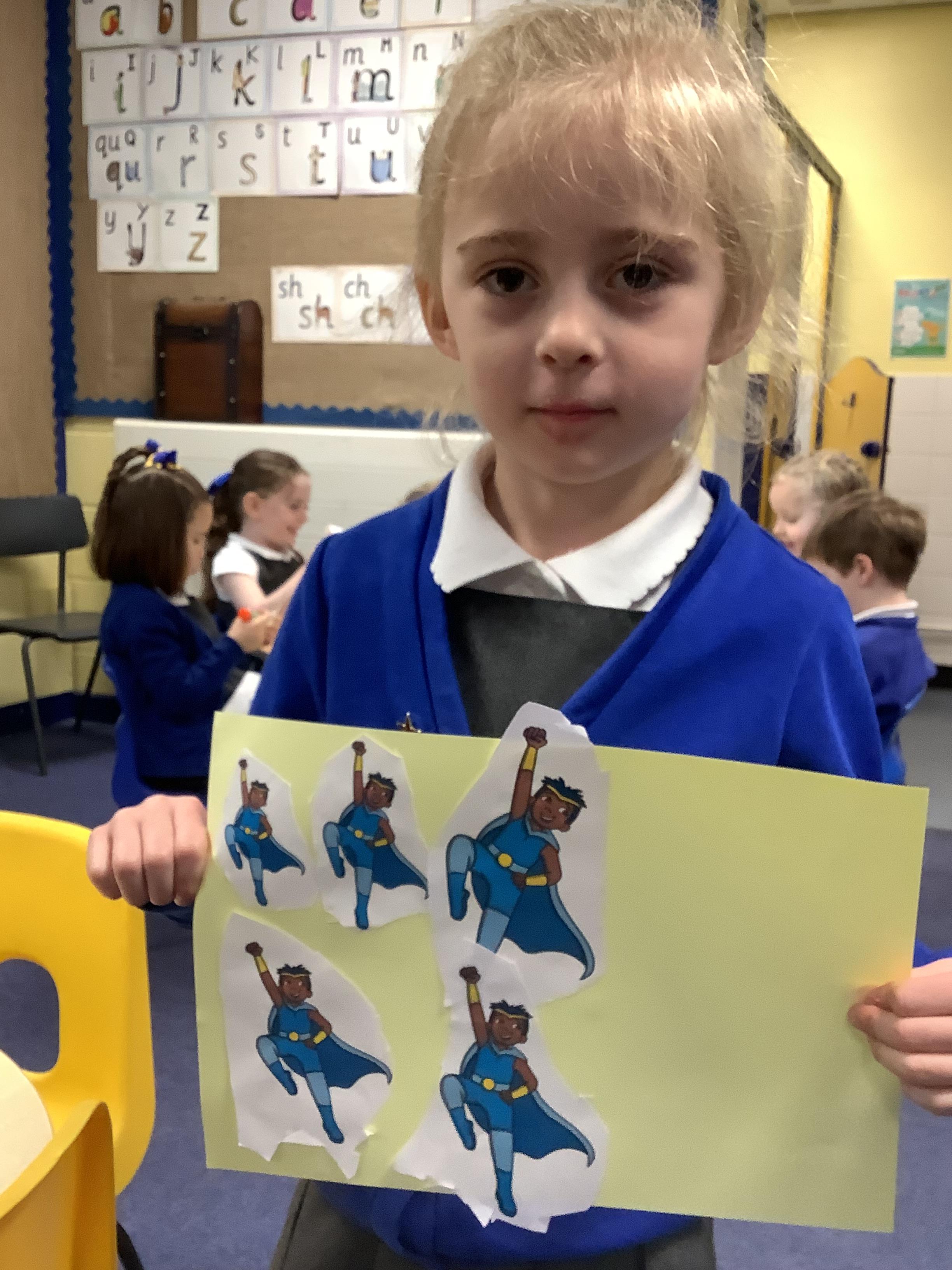 In Literacy we have moved on to our new Ready Steady Write text Juniper Jupiter by Lizzy Stewart and the children have enjoyed designing, and writing a sentence, about their own superheroes.
