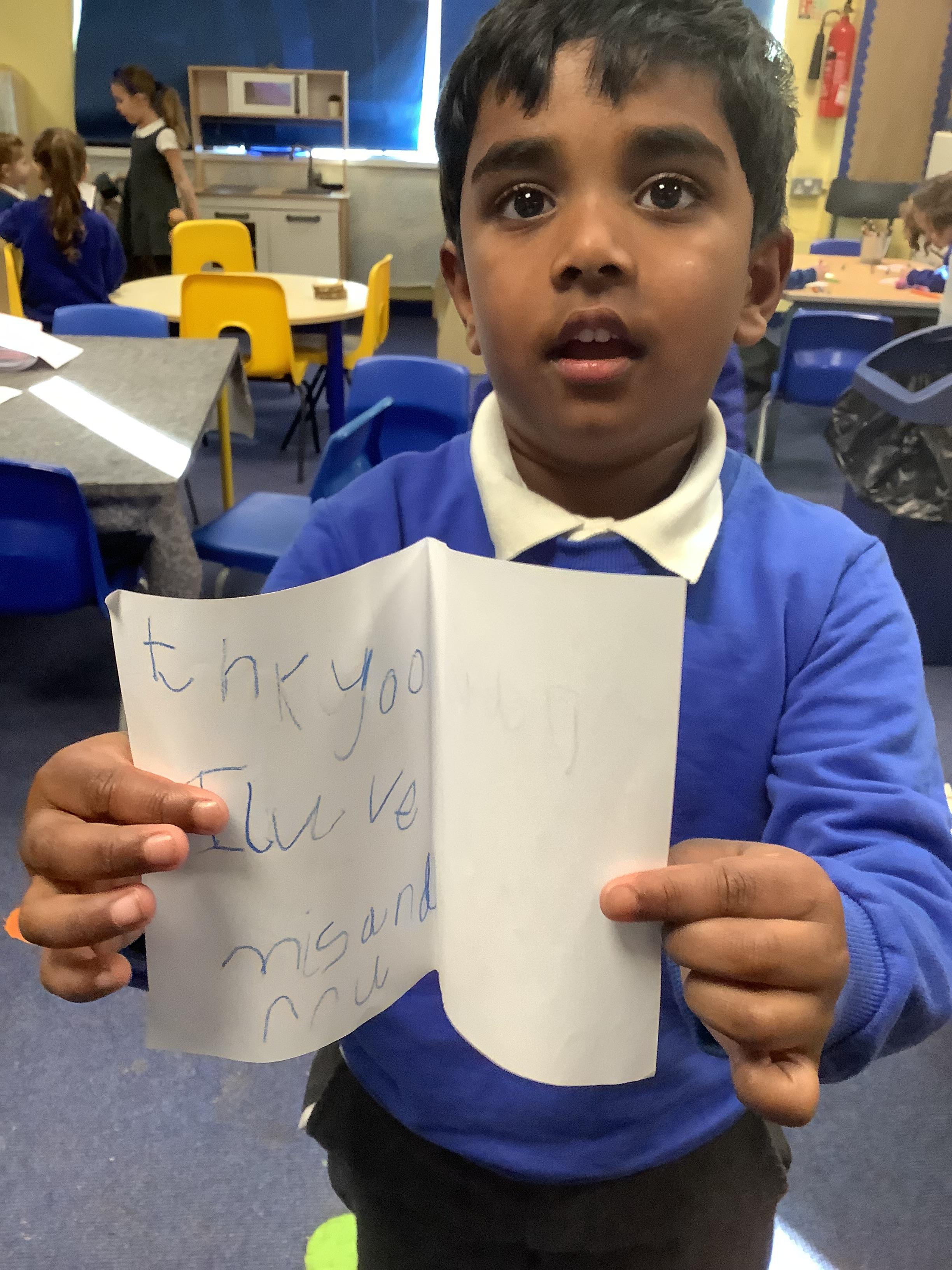 In Literacy, we have been learning how to write messages in a card.