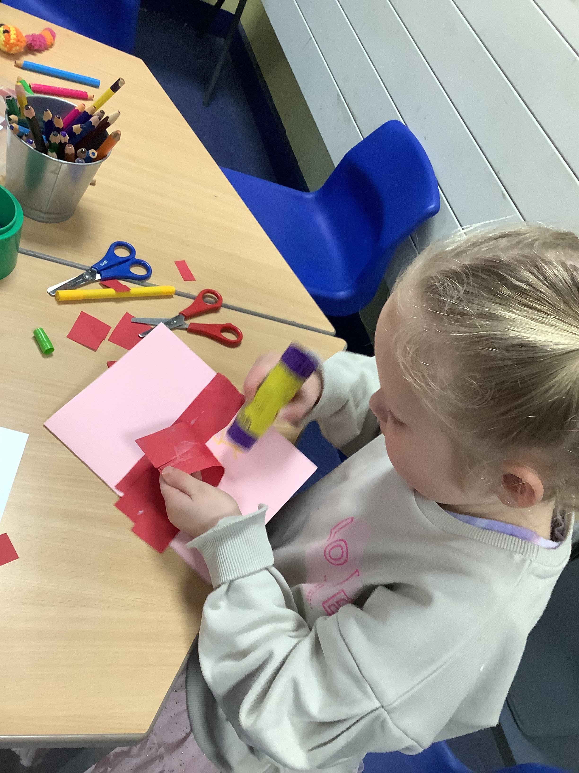 To finish the week, we had red and pink crafts available for the children to make their own Valentines cards. We also enjoyed putting our dancing shoes on for the Valentines Disco. What a great way to finish Spring 1!