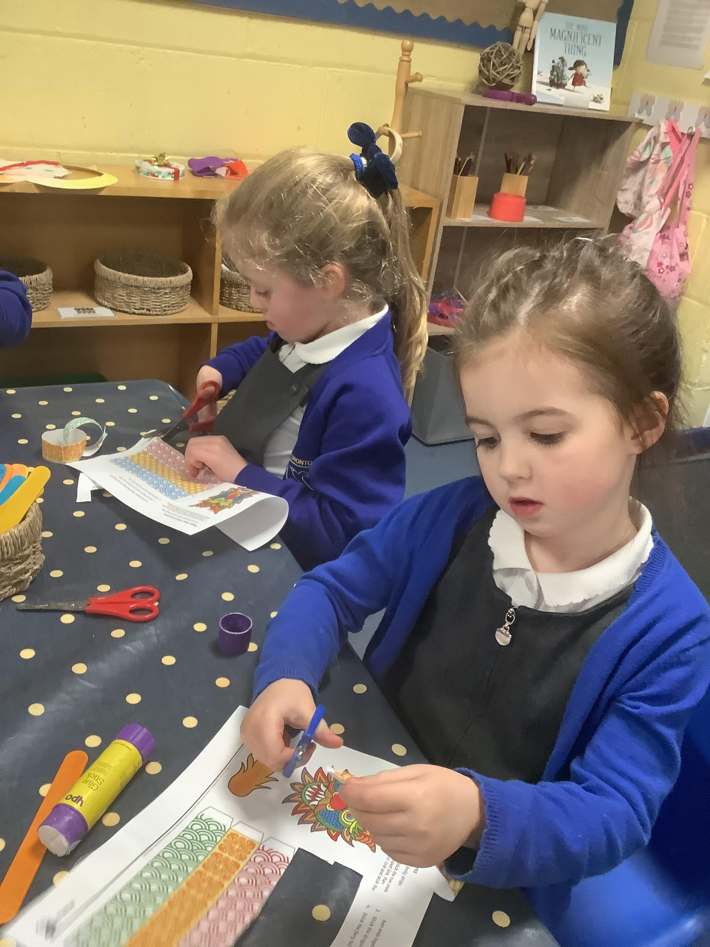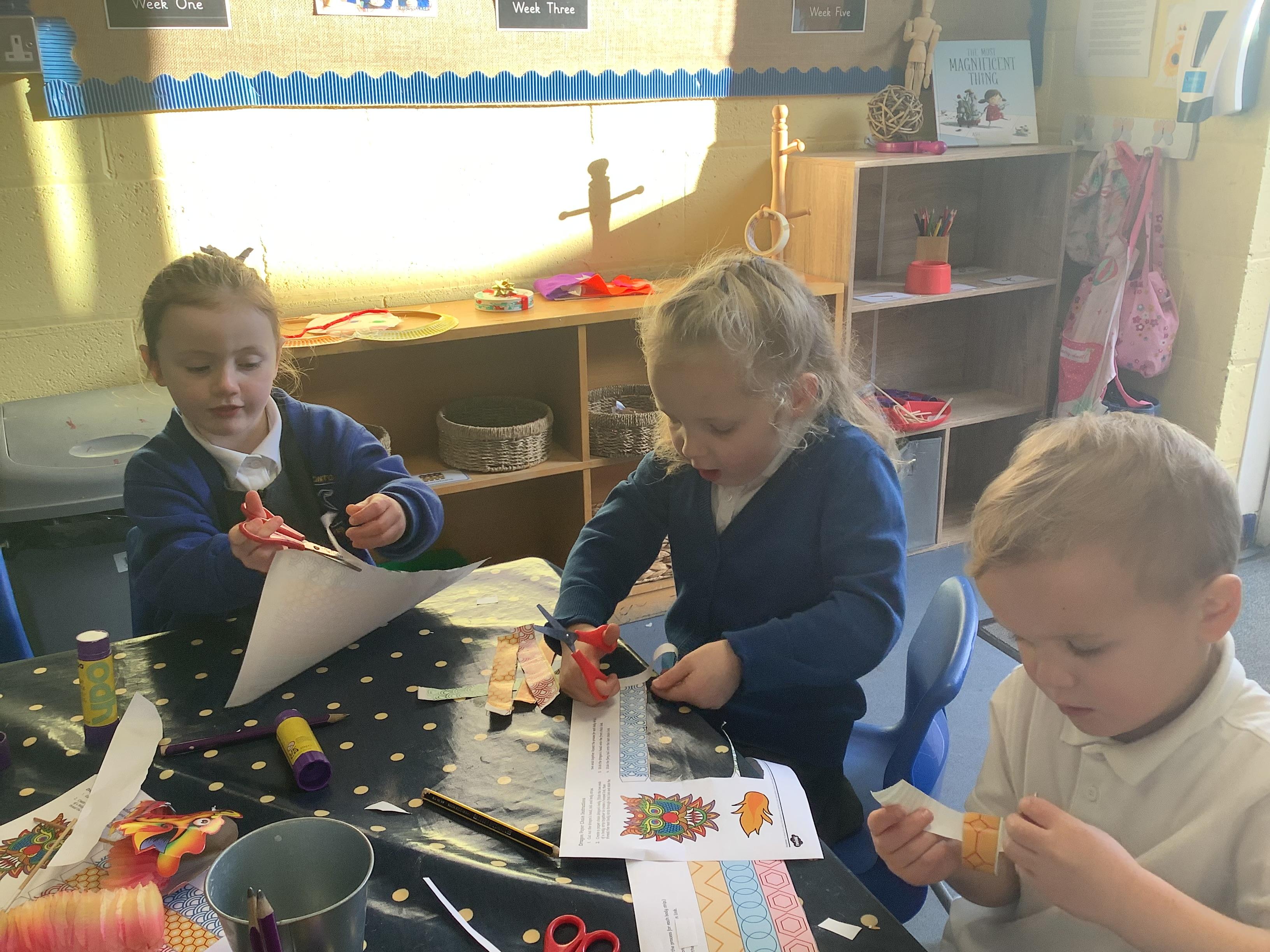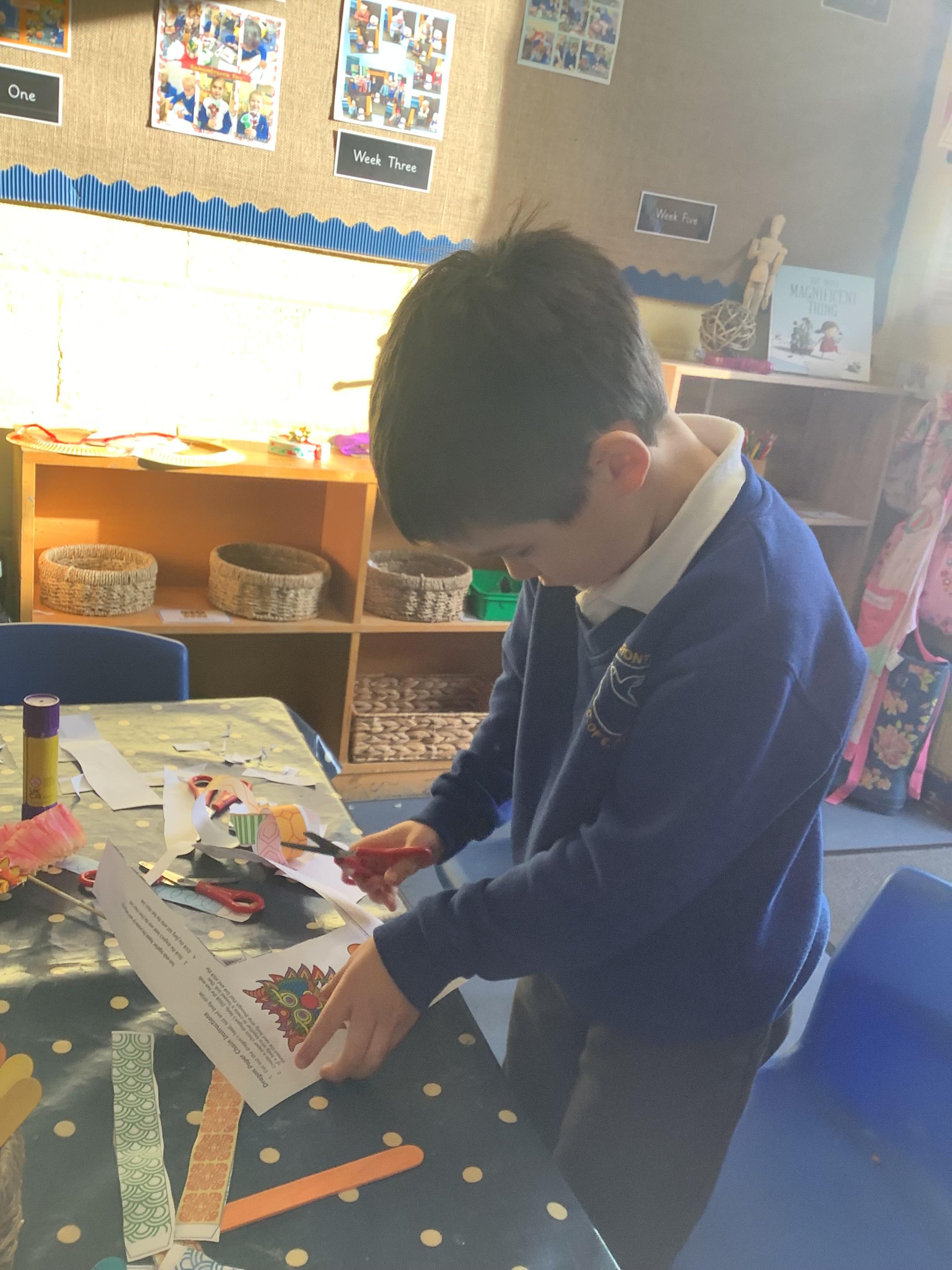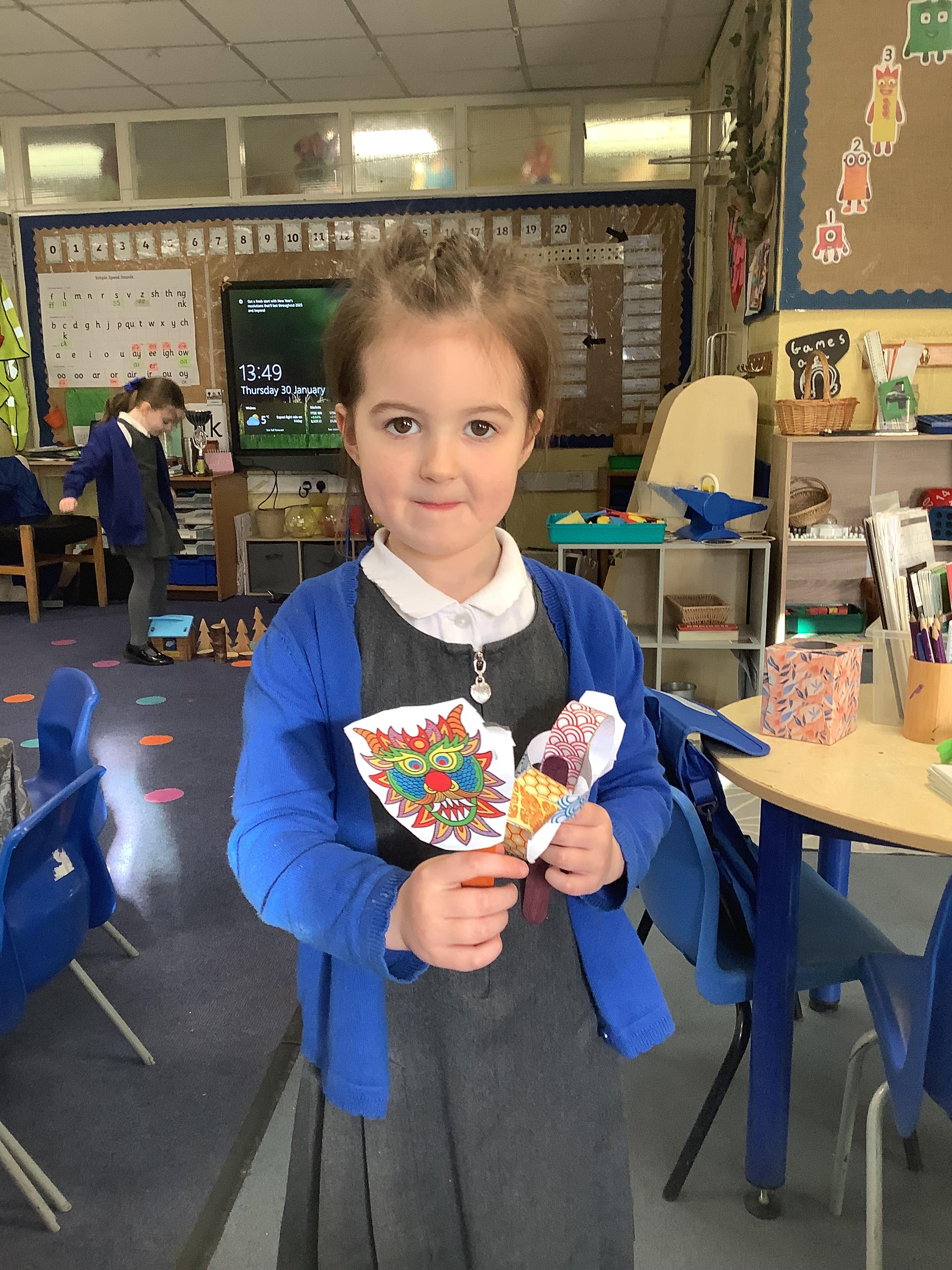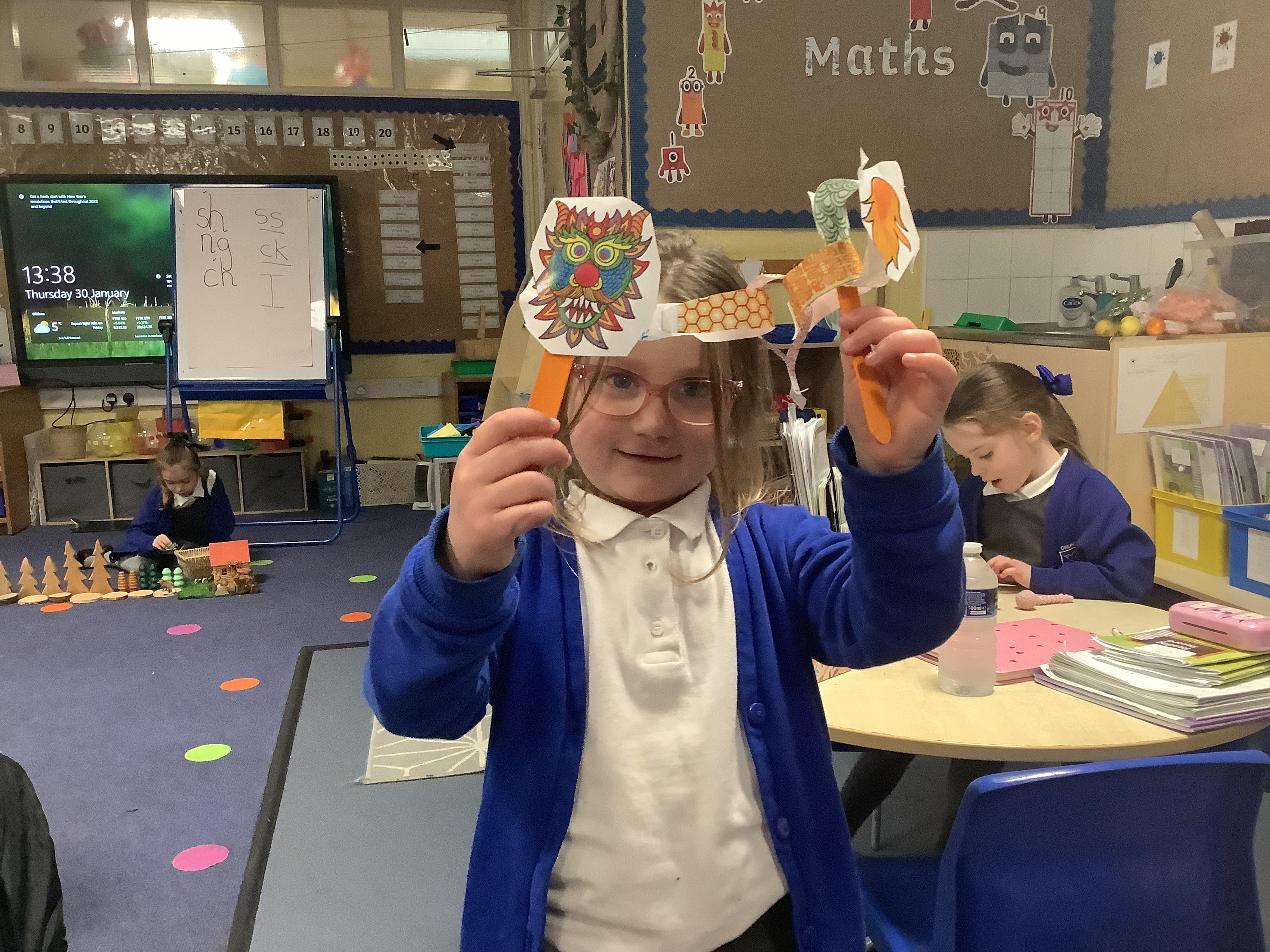 Today we have been learning about the way Chinese New Year is celebrated around the world. We watched the CBeebies Short Story about Abi, who celebrates Chinese New Year with her family. We learnt how the family prepares for the New Year and the different traditions and activities they take part in as part of the celebrations. In class, we enhanced our home corner, made Year of the Snake posters, wrote chinese numeral characters and even made our own Chinese Dragon puppets!