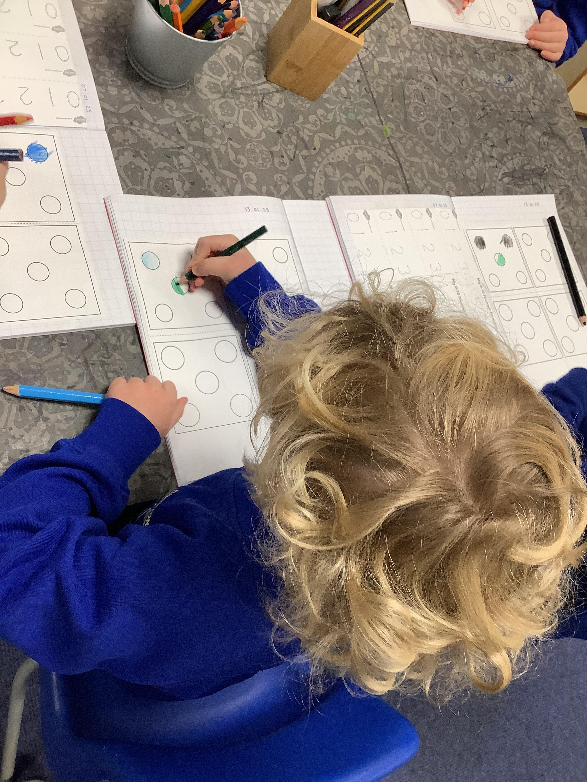 In Maths, we have been learning about numbers 1 to 5. In our group work, we explored the composition of each number and the children independently made representations.