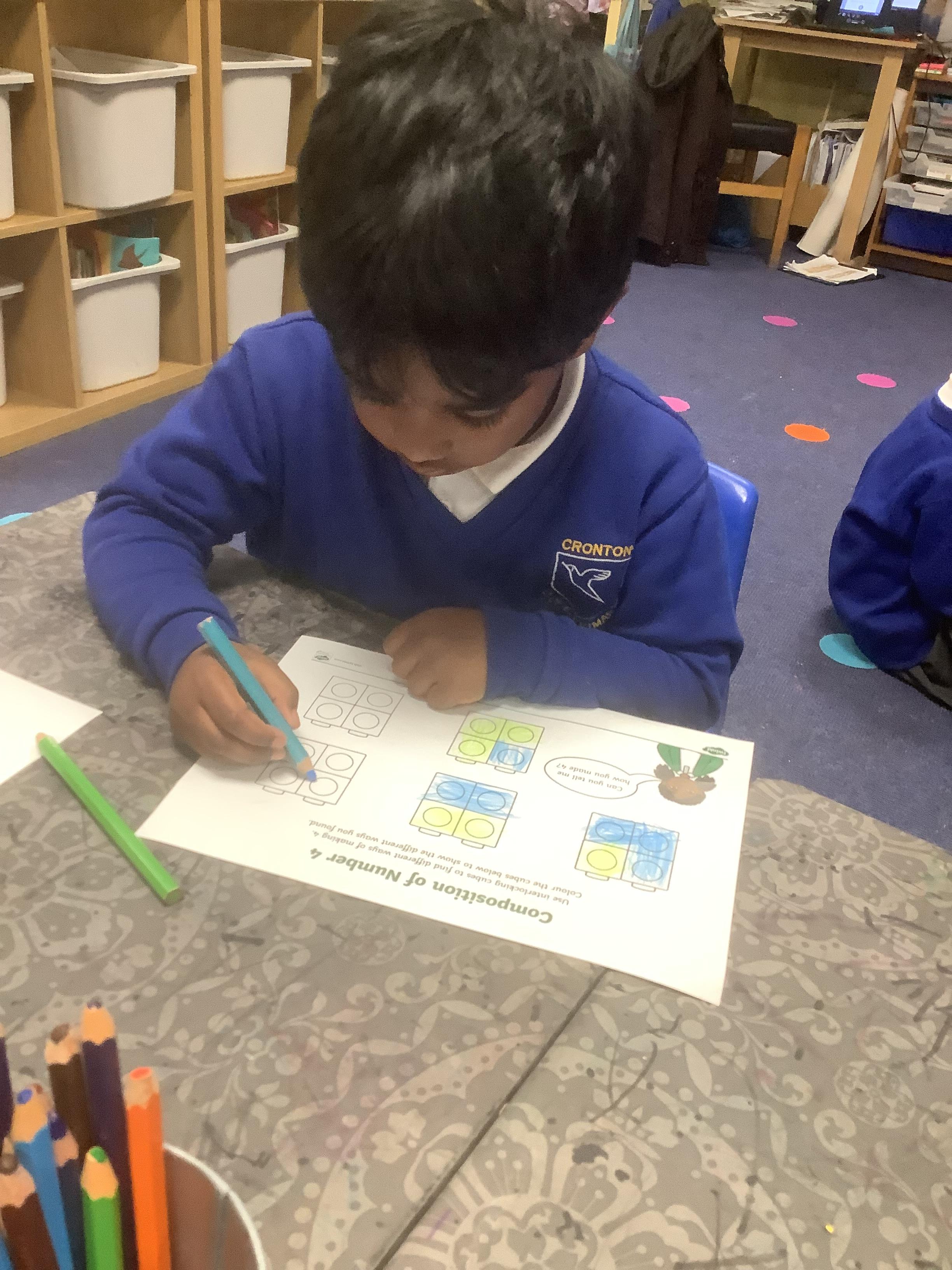 In maths, we continued to explore different ways of representing number bonds to 5. We are becoming increasingly secure in the composition of the number and we have been able to record our understanding.