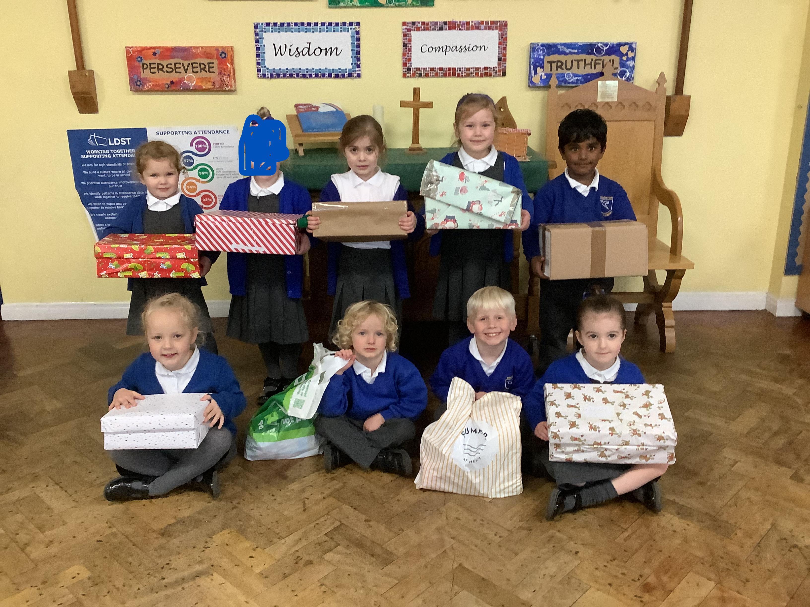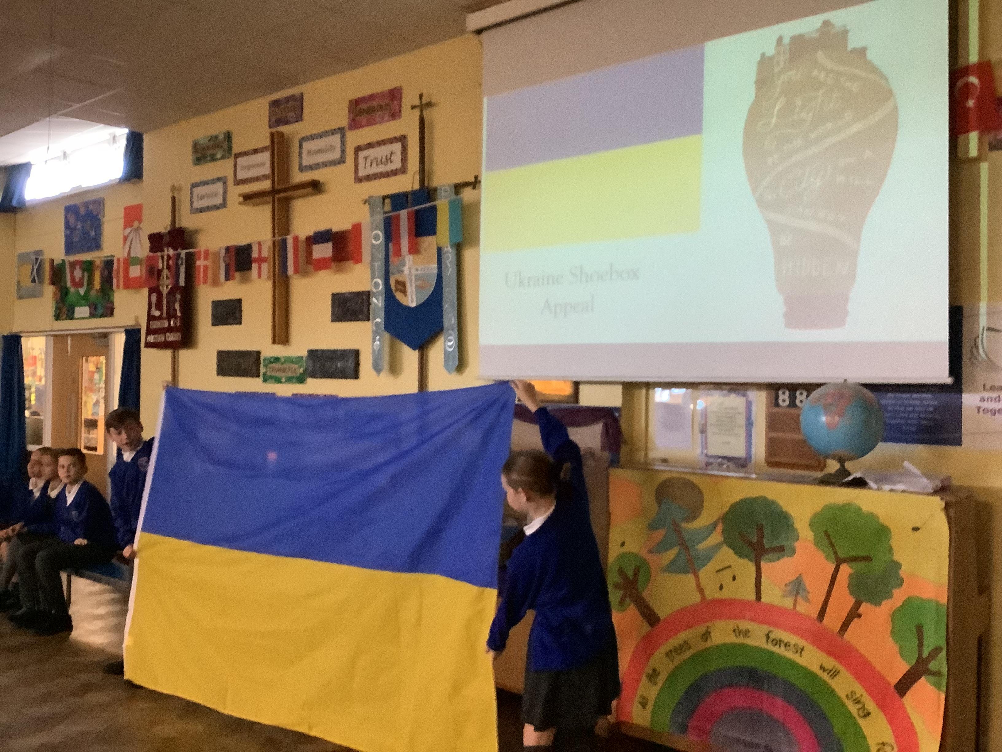 On Monday, we went into our first worship with the rest of the school. It was really special because we learnt about the Shoebox Appeal. Mr Tunstall (Y6 teacher) and his Dad, Mr Tunstall Snr, talked to us about the work that Mr Tunstall Snr does when he visits the Ukraine. He takes aid to the people who need it and brings joy at Christmas time when he delivers Christmas shoeboxes. Please see the letter in your child’s book bag with details on how you can support this worthy cause.