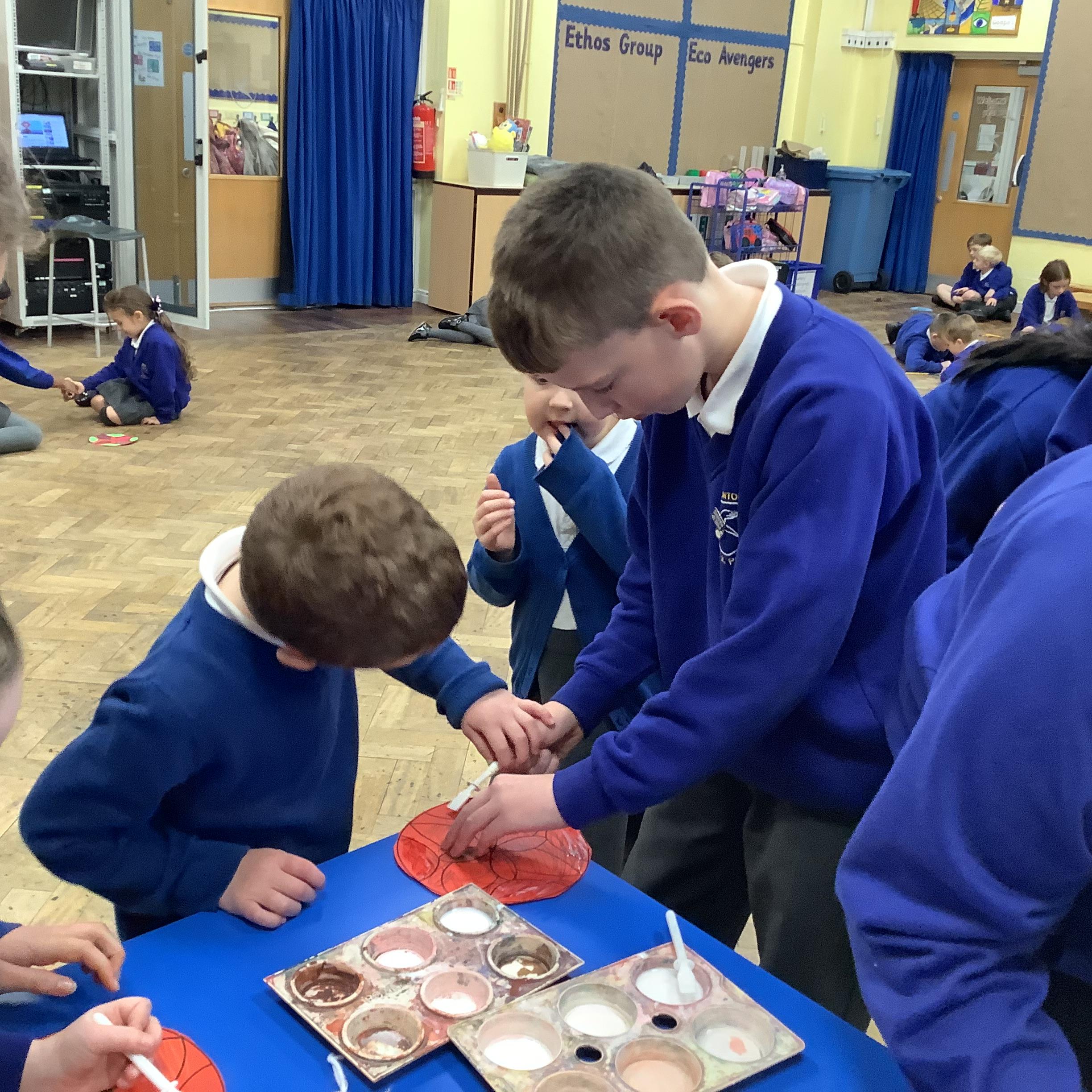 On Monday we learnt why we wear poppies for Remebrance Day. We had a special worship in the hall and made poppies in different ways. Mr Tunstall, our Year 6 teacher, played The Last Post on his cornet and we observed a two minutes silence with the rest of school.