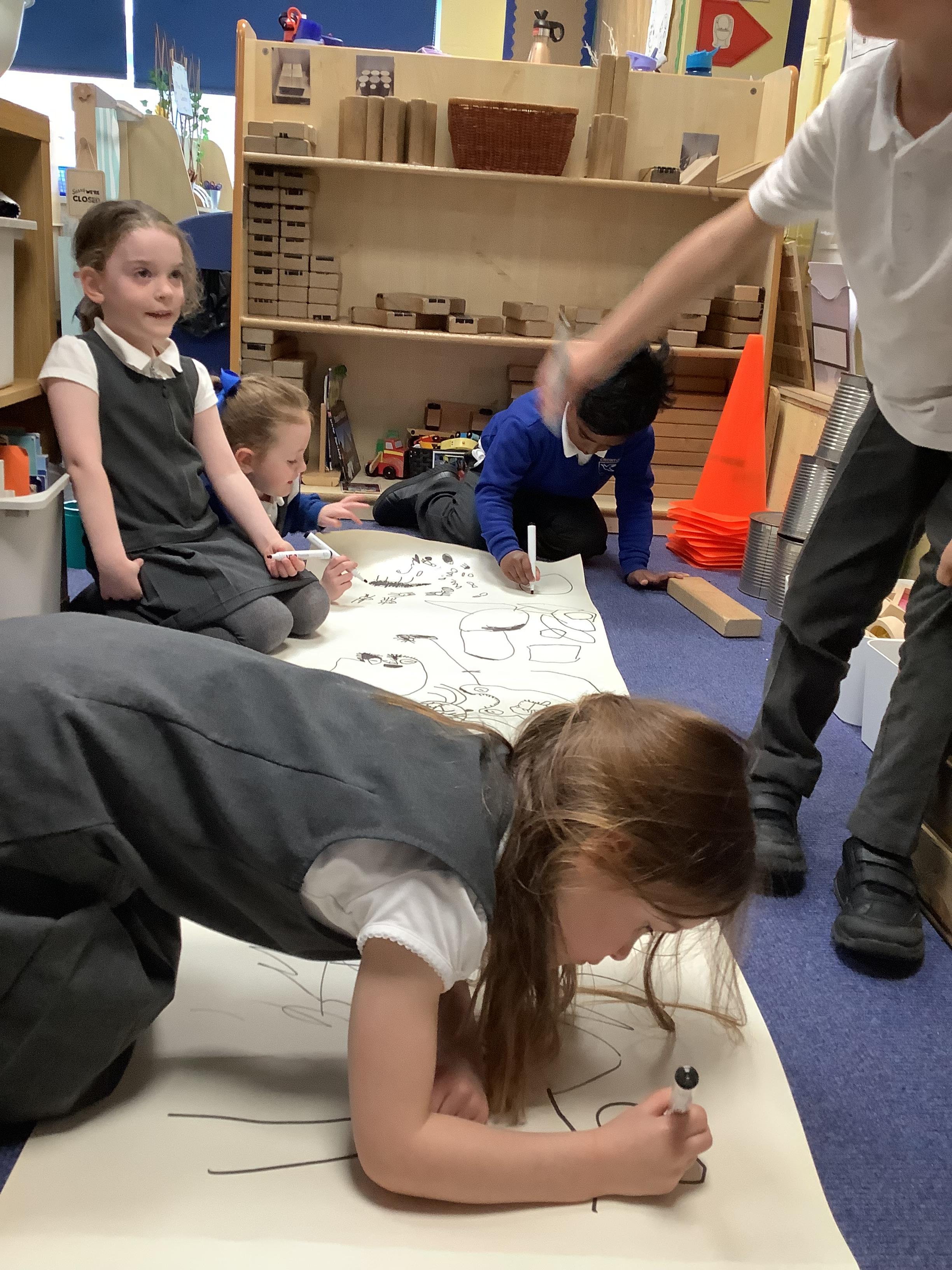 In Literacy, we have started using planning circles to create a plan for the story of The Something. We’ve drawn our own illustrations for the opening and build-up of the story and we will use these to draw our own zig-zag story books over the next few weeks.