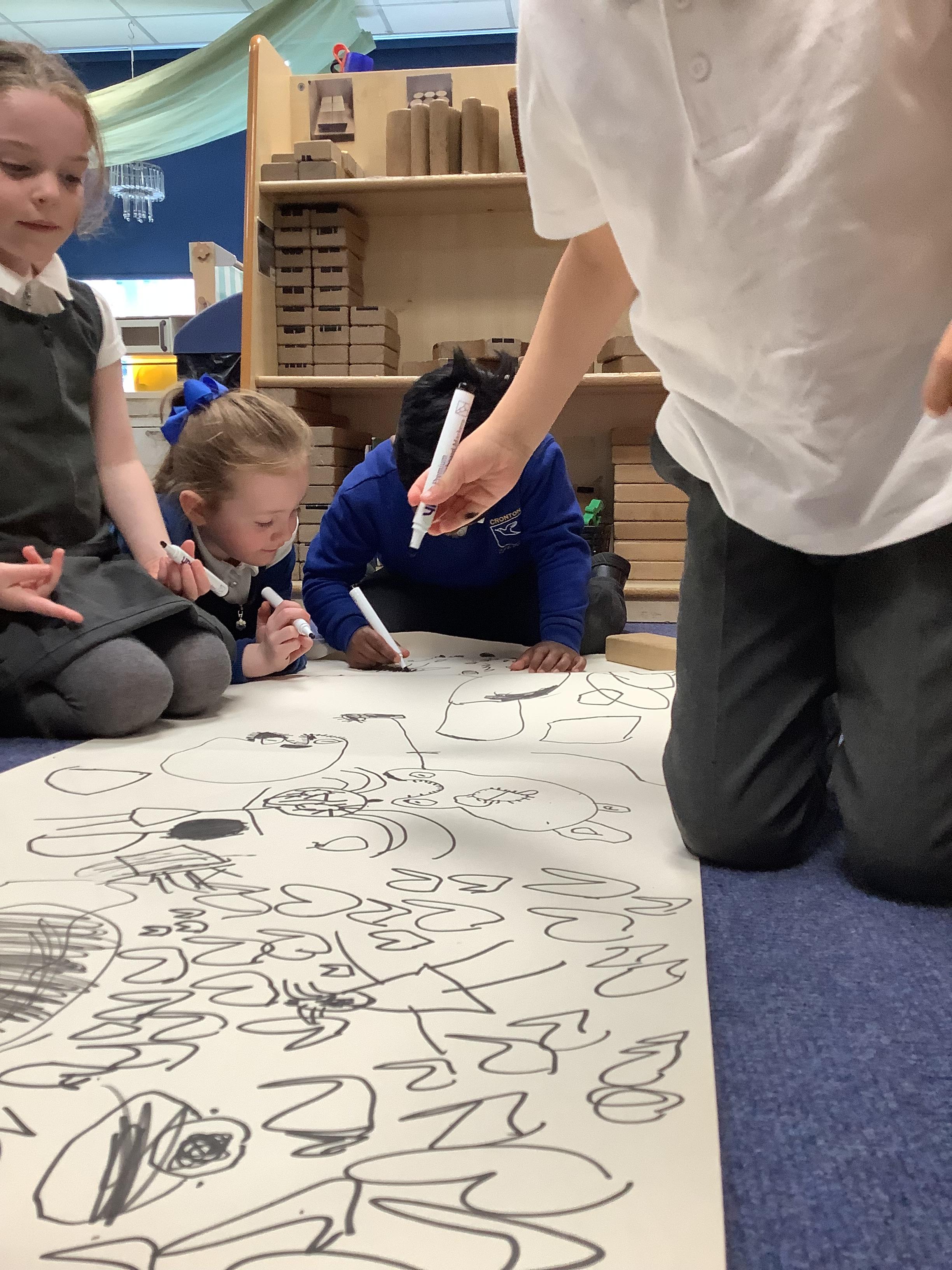 This week, we listened to Pumpkin Soup by Helen Cooper. The children enjoyed meeting the animal friends and talking about how they worked together to make their soup. We discussed the characters’ feelings and the cosy autumn setting. After exploring the story, the children took part in observational drawing of real pumpkins. They looked carefully at their shape, colour, patterns and textures and used pencils and crayons to draw what they could see, focusing on detail and control.
