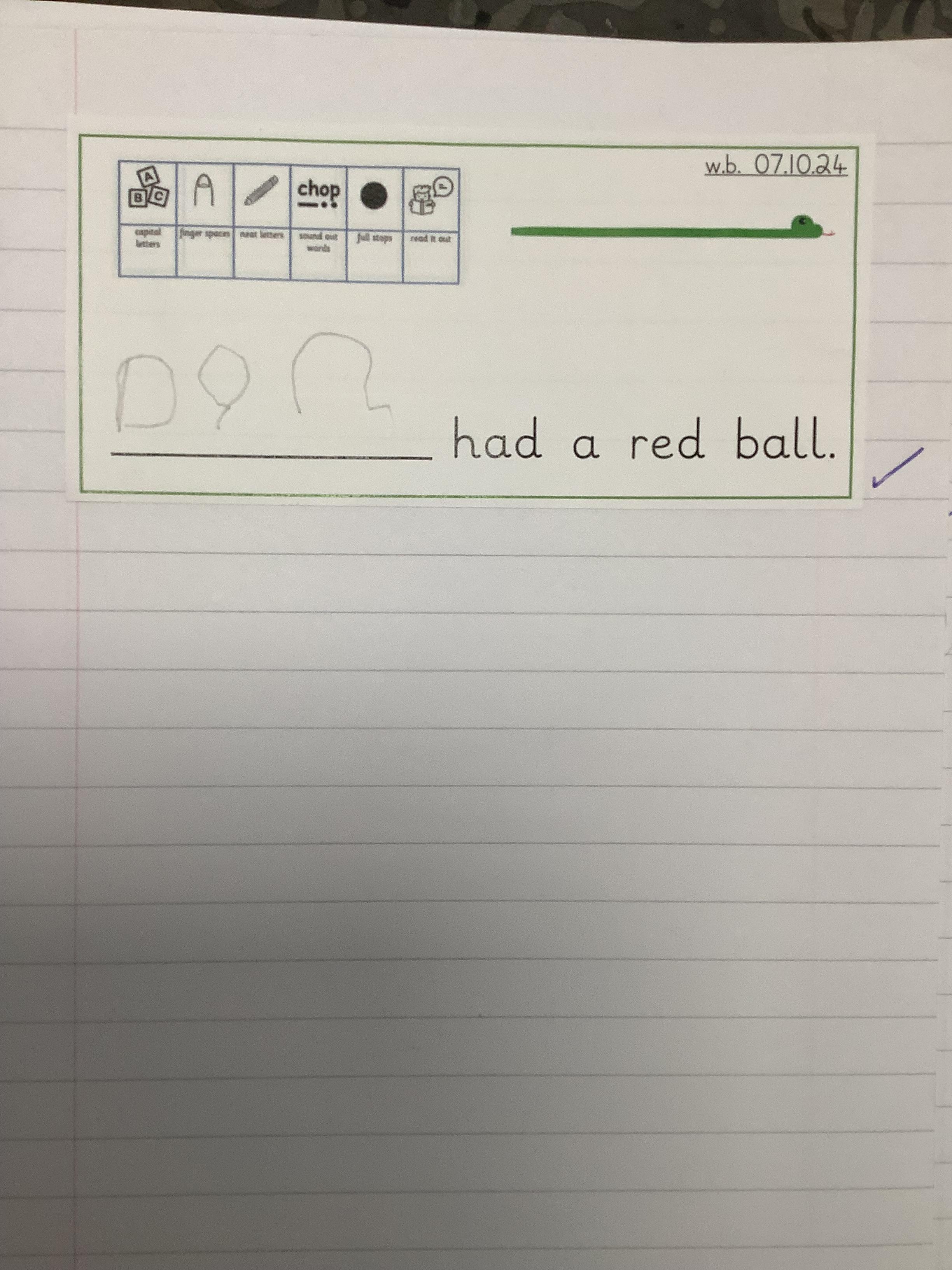 We've had lots of creativity in our independent learning time this week and lots of the children are starting to apply their phonic knowledge in their independent writing. We've had cards, sentences and even some stories!