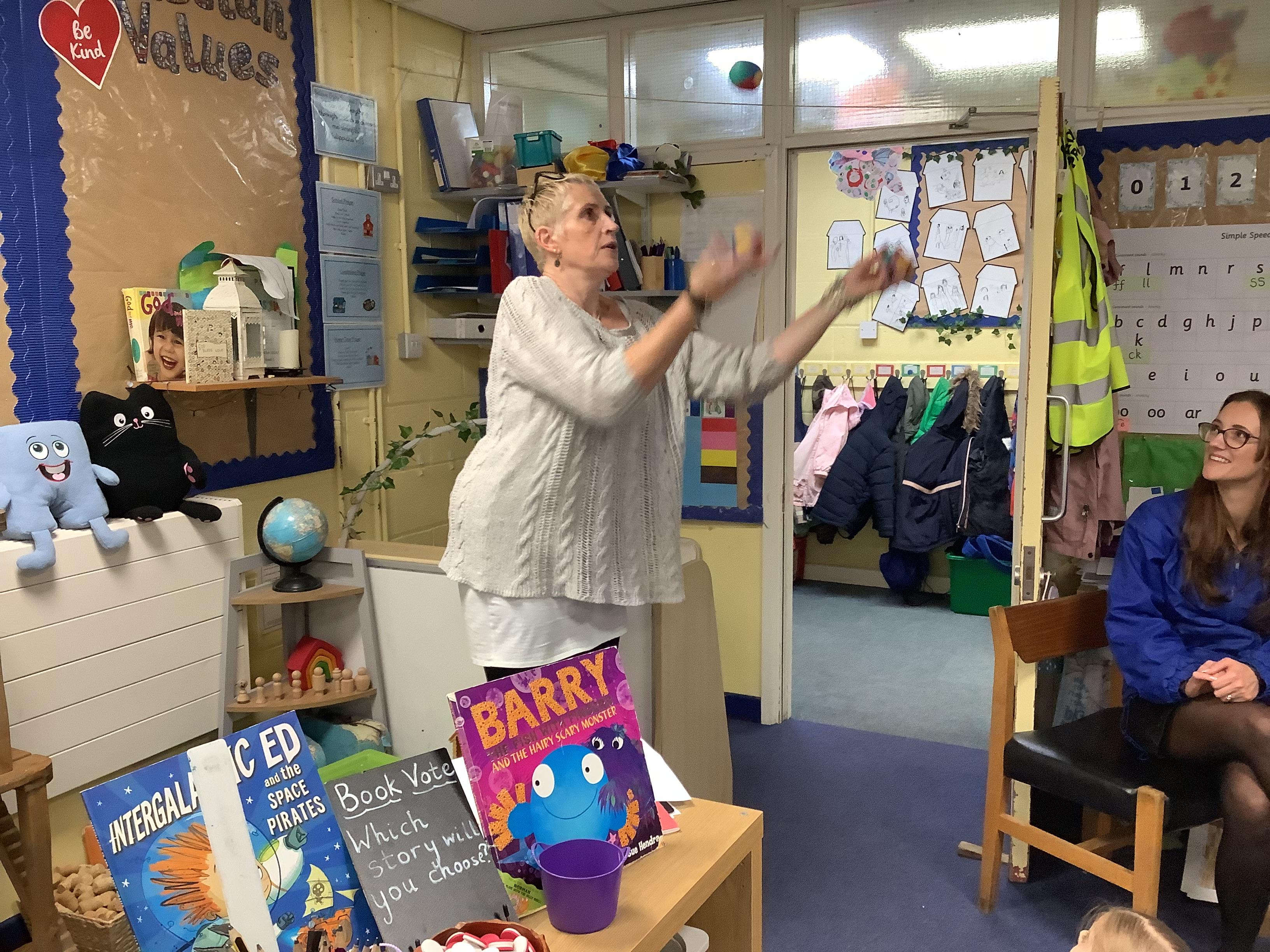 Mrs Jones came in to show the children her new skill of juggling and we spent time outside connecting with our friends.