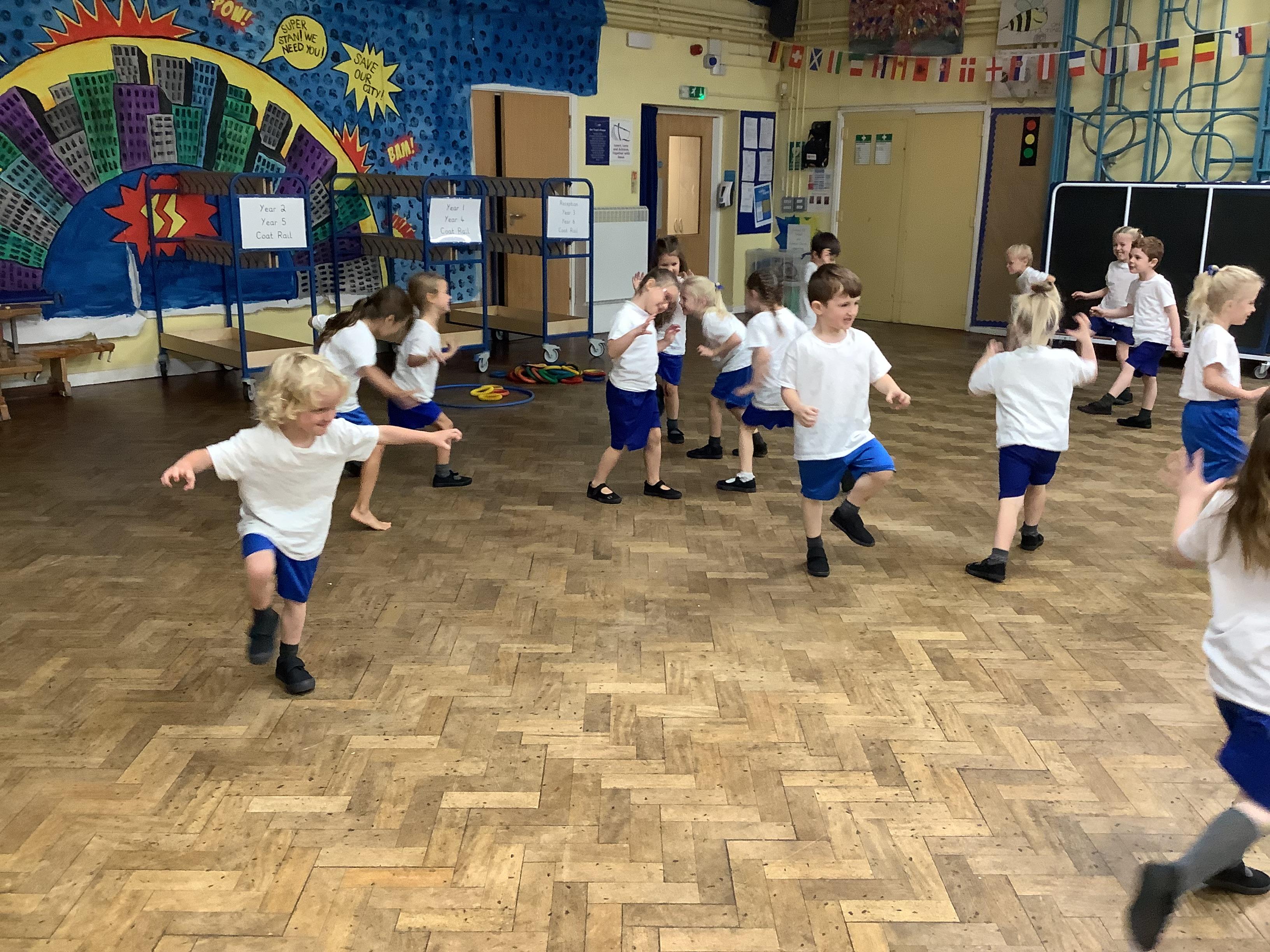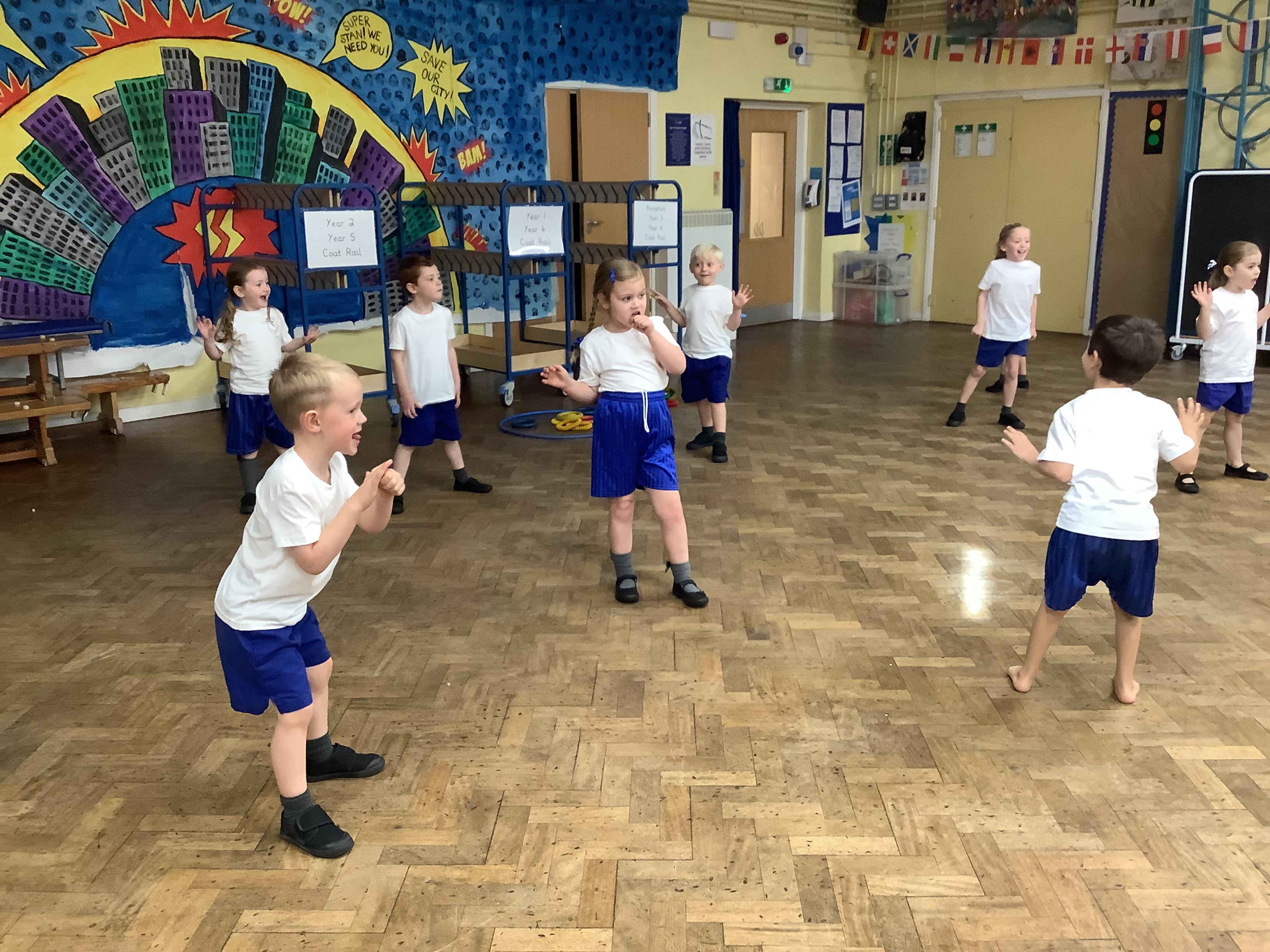 This week has been another super week for Reception. We had our first PE lesson and tried really hard to get ourselves changed into our PE kits! We played lots of stop/start games to encourage careful listening.