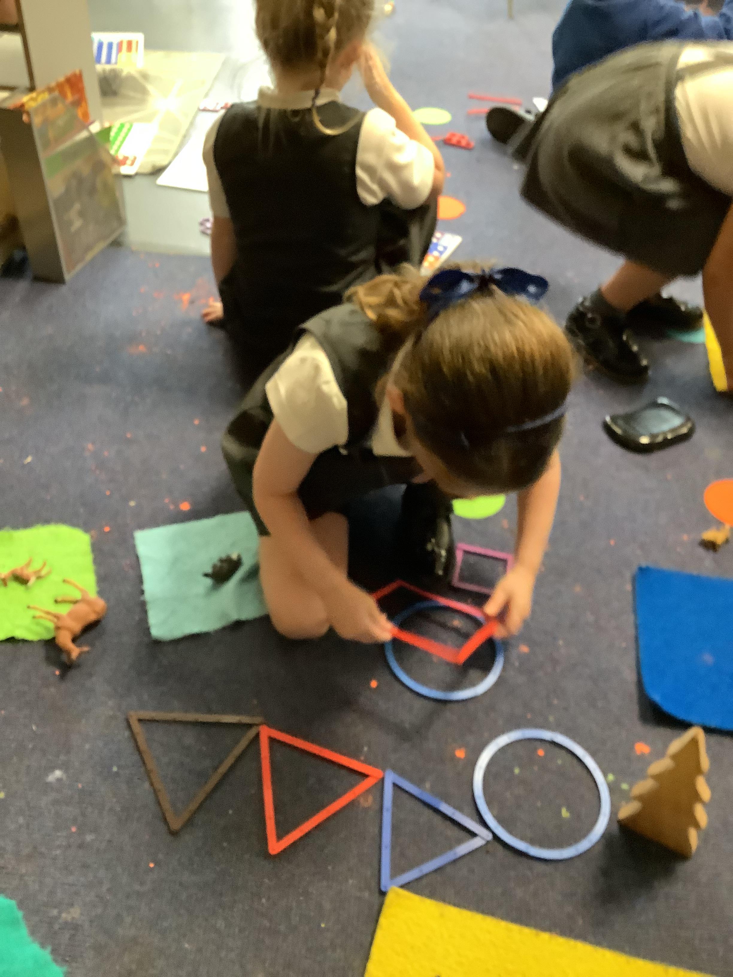 In Maths this week, we have been learning about circles and triangles. We’ve used mathematical vocabulary to describe the properties of the shapes, sorted them and found shapes in our environment.