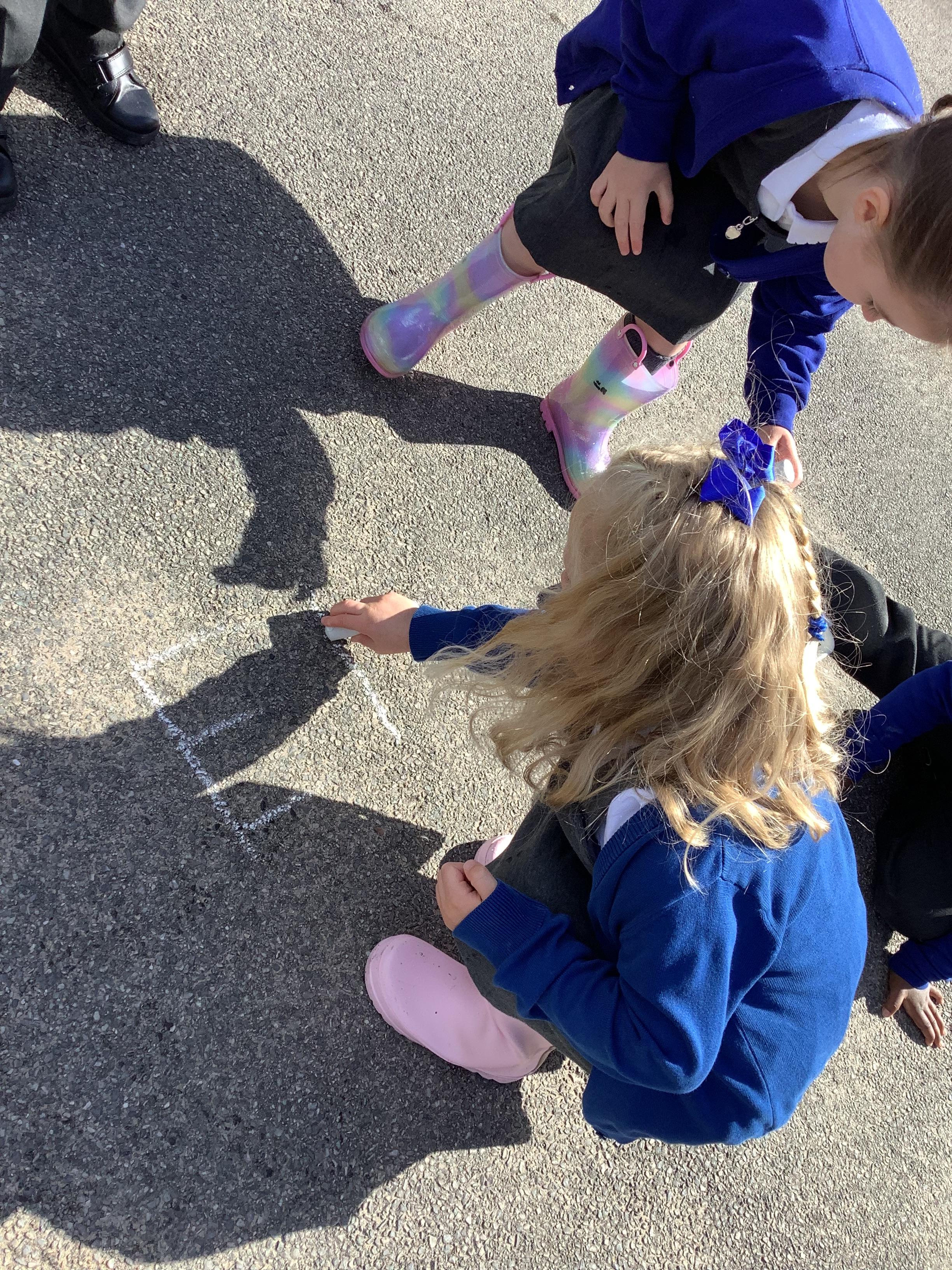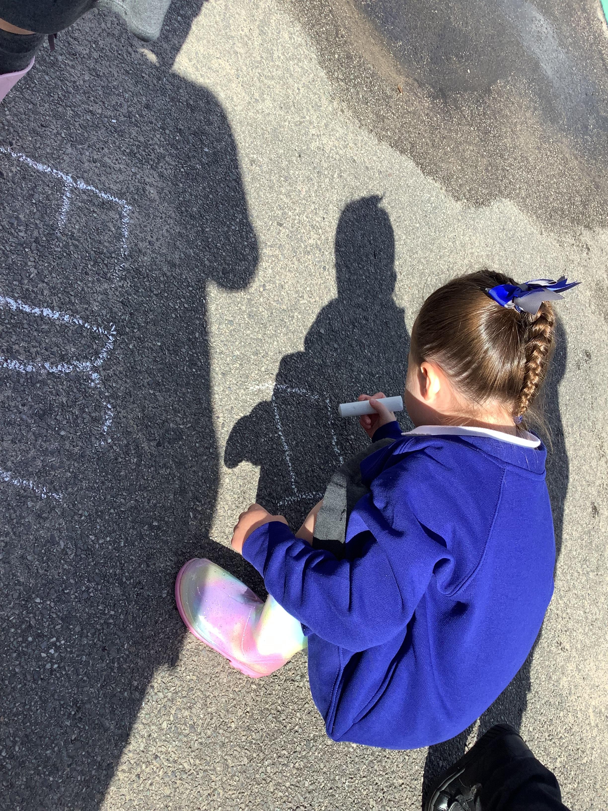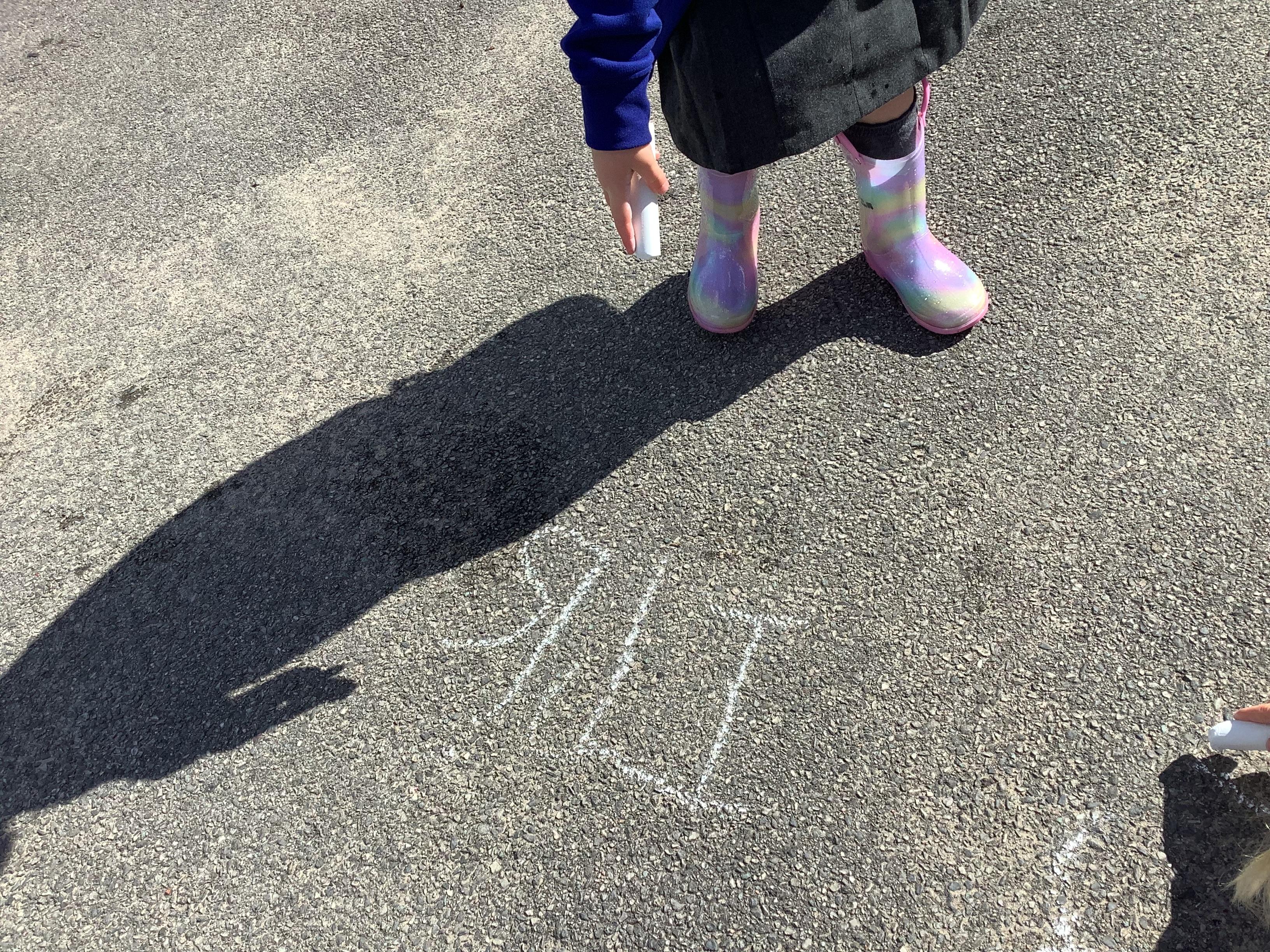 In Literacy, we have been practising writing our names with chalk outside.