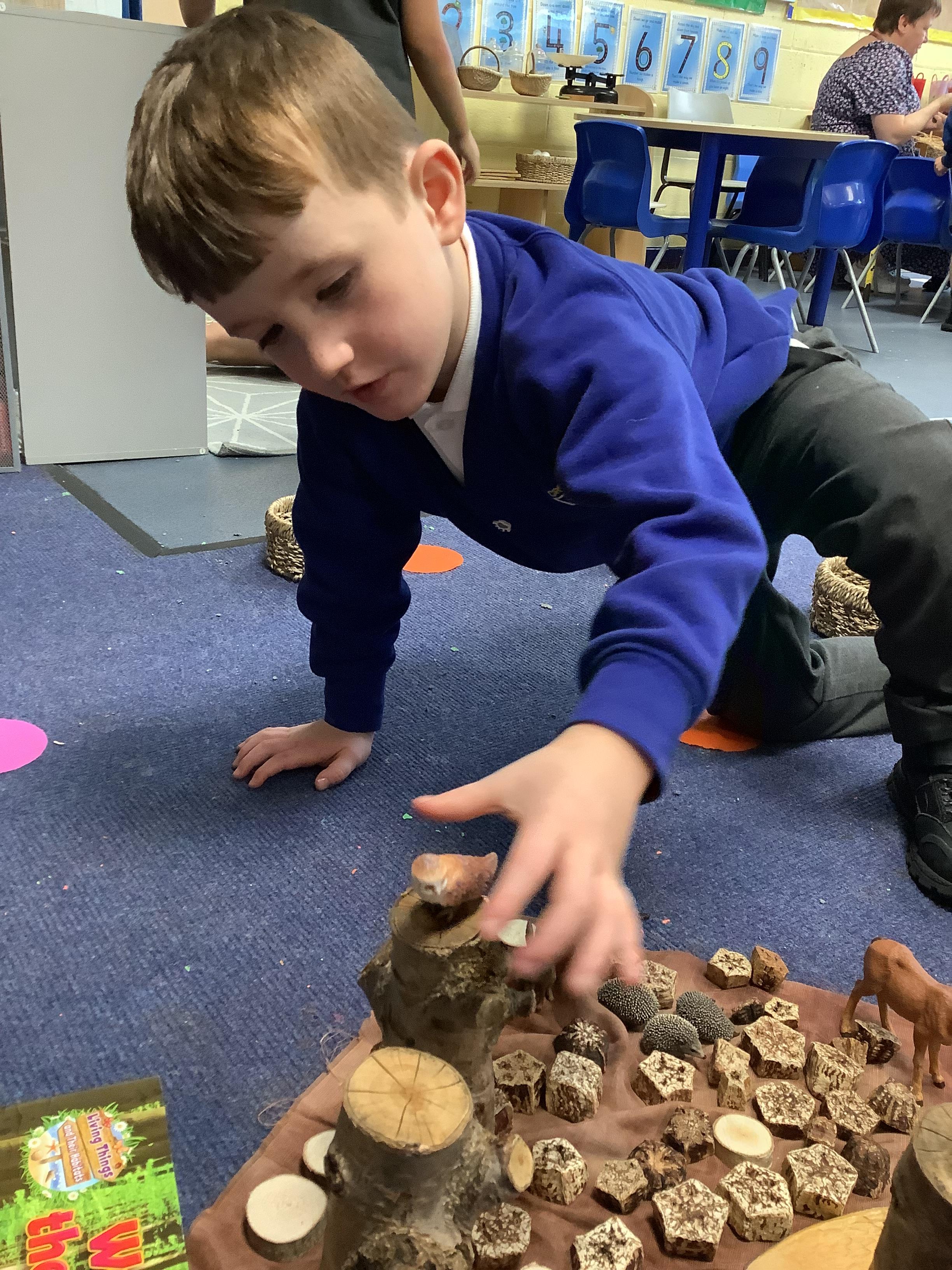 In Maths this week, we have been learning to compare size. The children met Holly the Hedgehog at the beginning of the week who went on a scavenger hunt to find objects of different sizes. They also compared the size of acorns, while perfecting their cutting skills.