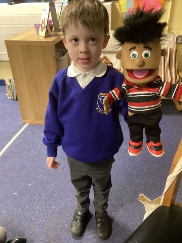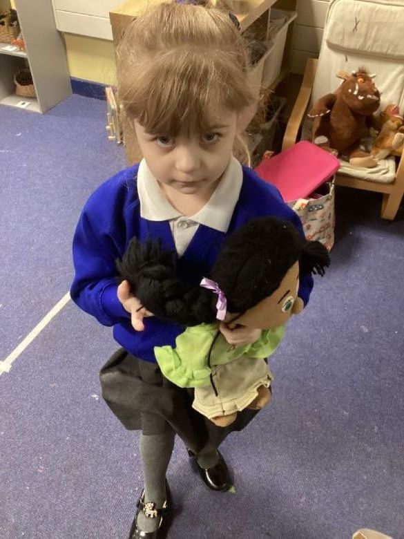 Today we introduced Jose and Elena to the new children in Reception. We practised saying Hello and Good morning using our finger rhyme.