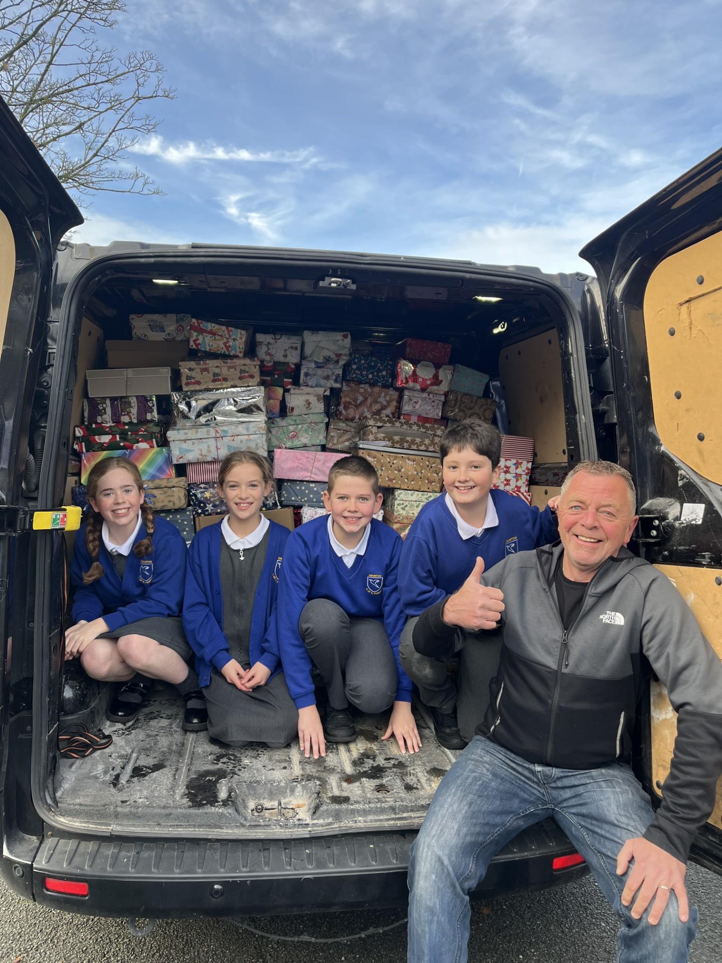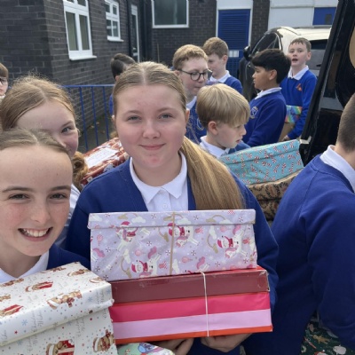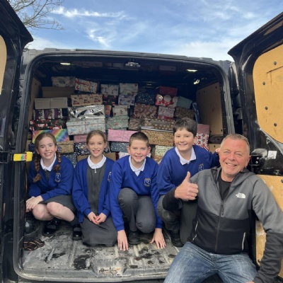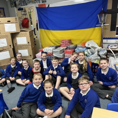 Our children chose to support children in Ukraine this Christmas. They were challenged by Mr Tunstall Sr. on the current situation in Ukraine for children just like themselves and wanted to step up and make a difference. The whole school community responded by filling 100s of shoeboxes that were sorted, packed and put into the van to go by our children. The Ethos group played a key role in ensuring that all items were appropriate and fairly distributed. They also, along with Year 6, helped to fill the van. It was so full it needed two trips! Well done everybody.