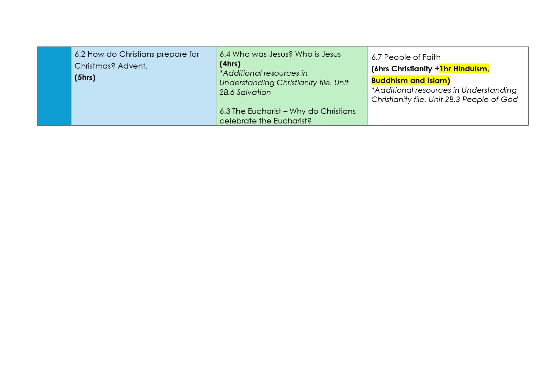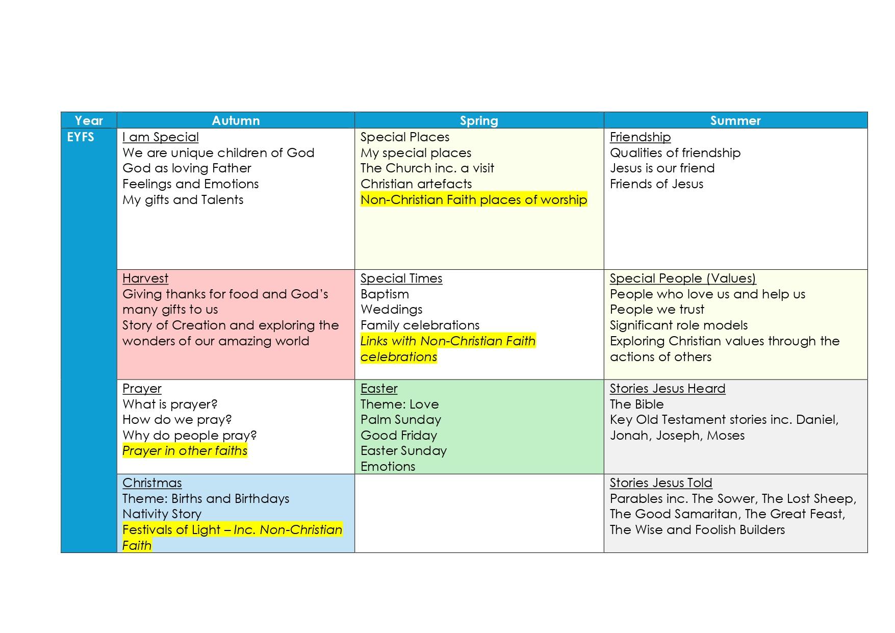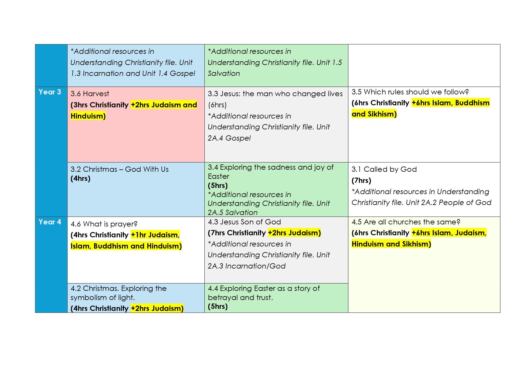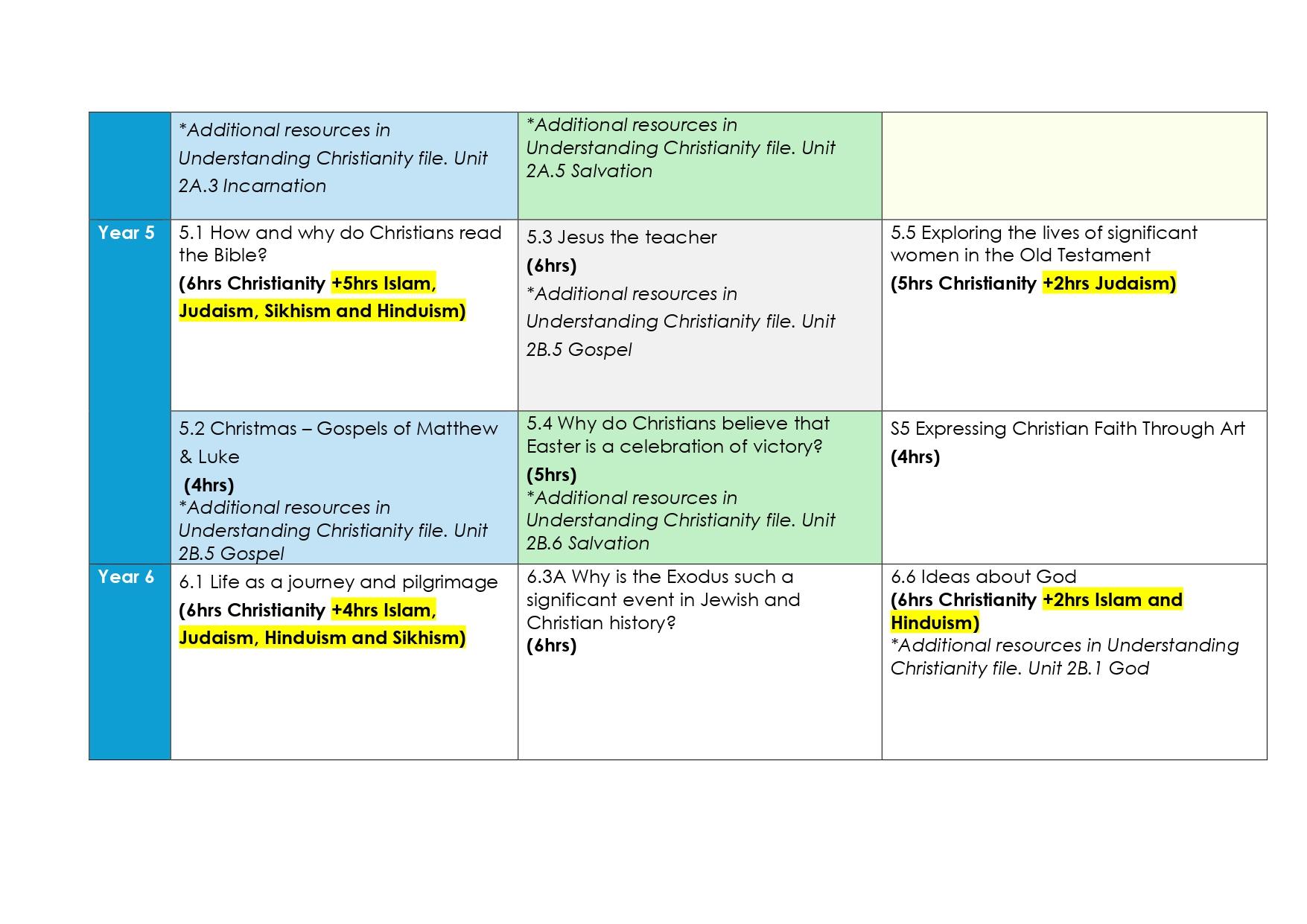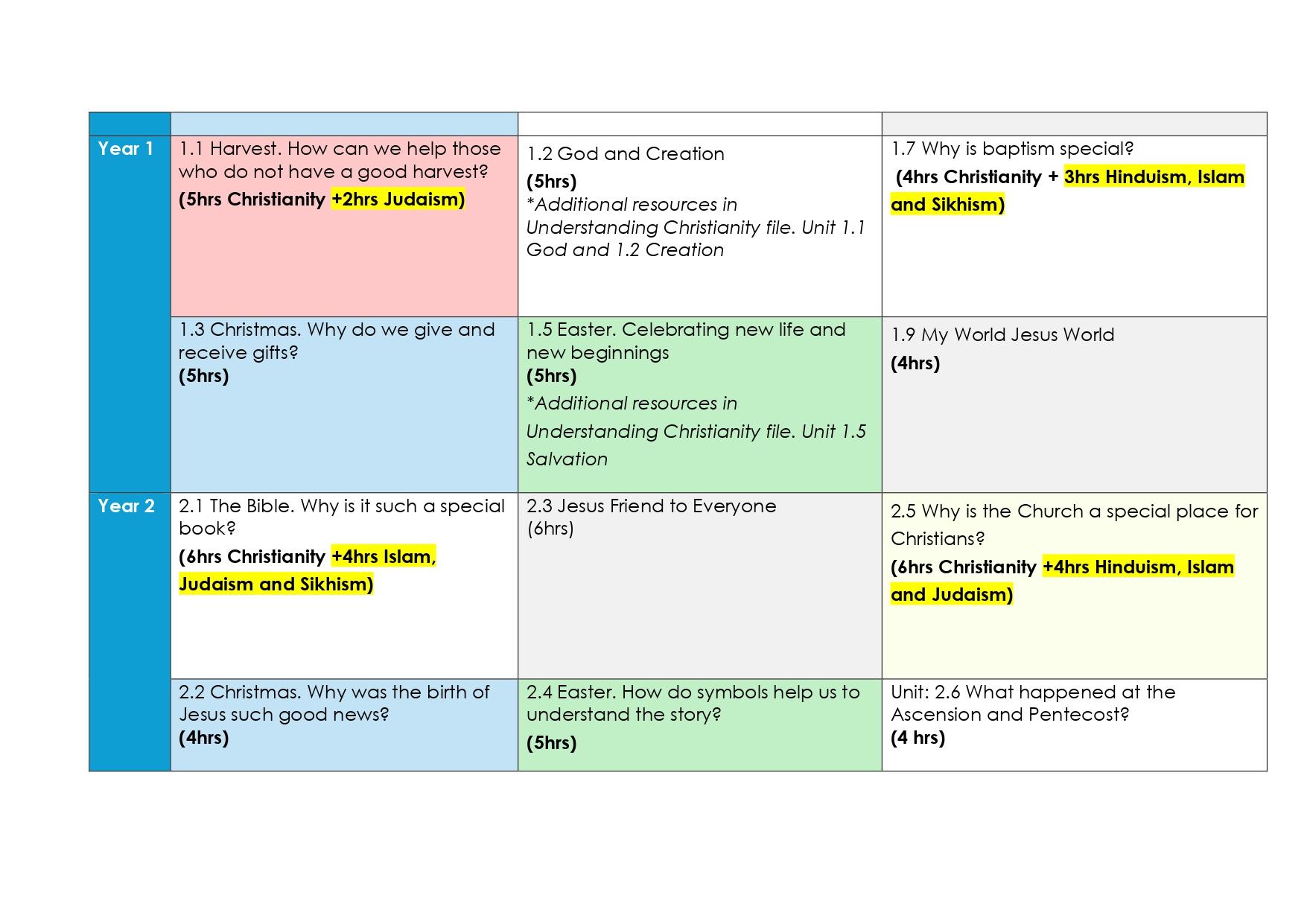 • Christian and non- Christian faiths – Judaism, Islam, Buddhism, Hinduism and Sikhism will be taught throughout Key Stage 1 and 2.