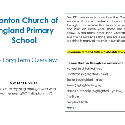 The Aims of Religious Education as a Church of England School, the foundation of our approach is the Christian faith. The school enjoys strong links with the church, and this allows everyone to learn about and practice Christian beliefs, and all are invited to take part in its community life. The school is committed to respecting the personal values and beliefs (religious or otherwise) of parents and children. As an Aided Church of England school, we believe that R.E. in general and Christian teaching in particular play an important part in our teaching explicitly through weekly R.E lessons and implicitly through our teaching of the Christian values in collective worship and in everyday school life. These lessons are linked also to the statements on collective worship and the social, cultural and moral development.
