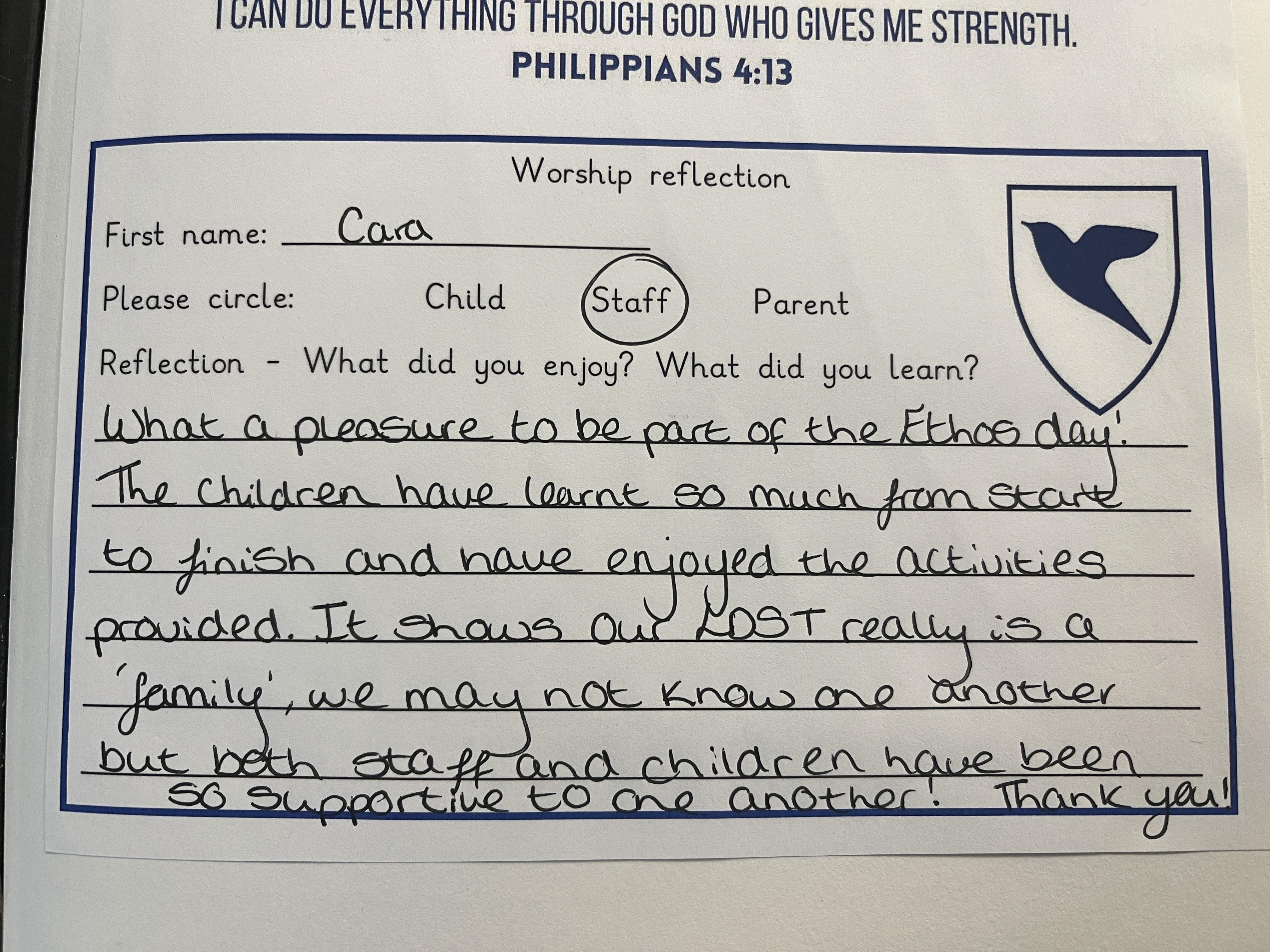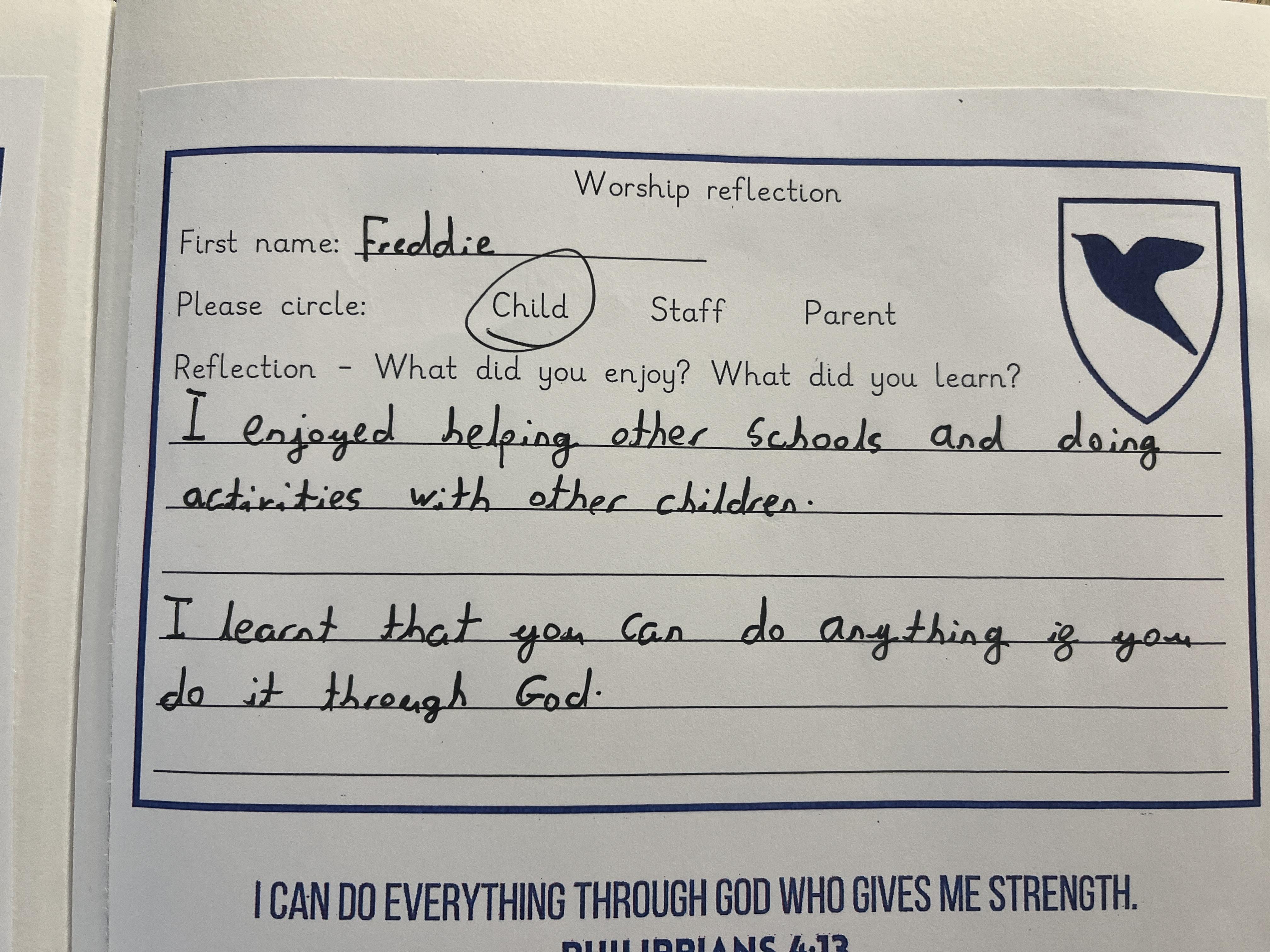 Below are some reflections on the day from both the Ethos group, and from the rest of the children who came to experience the day.