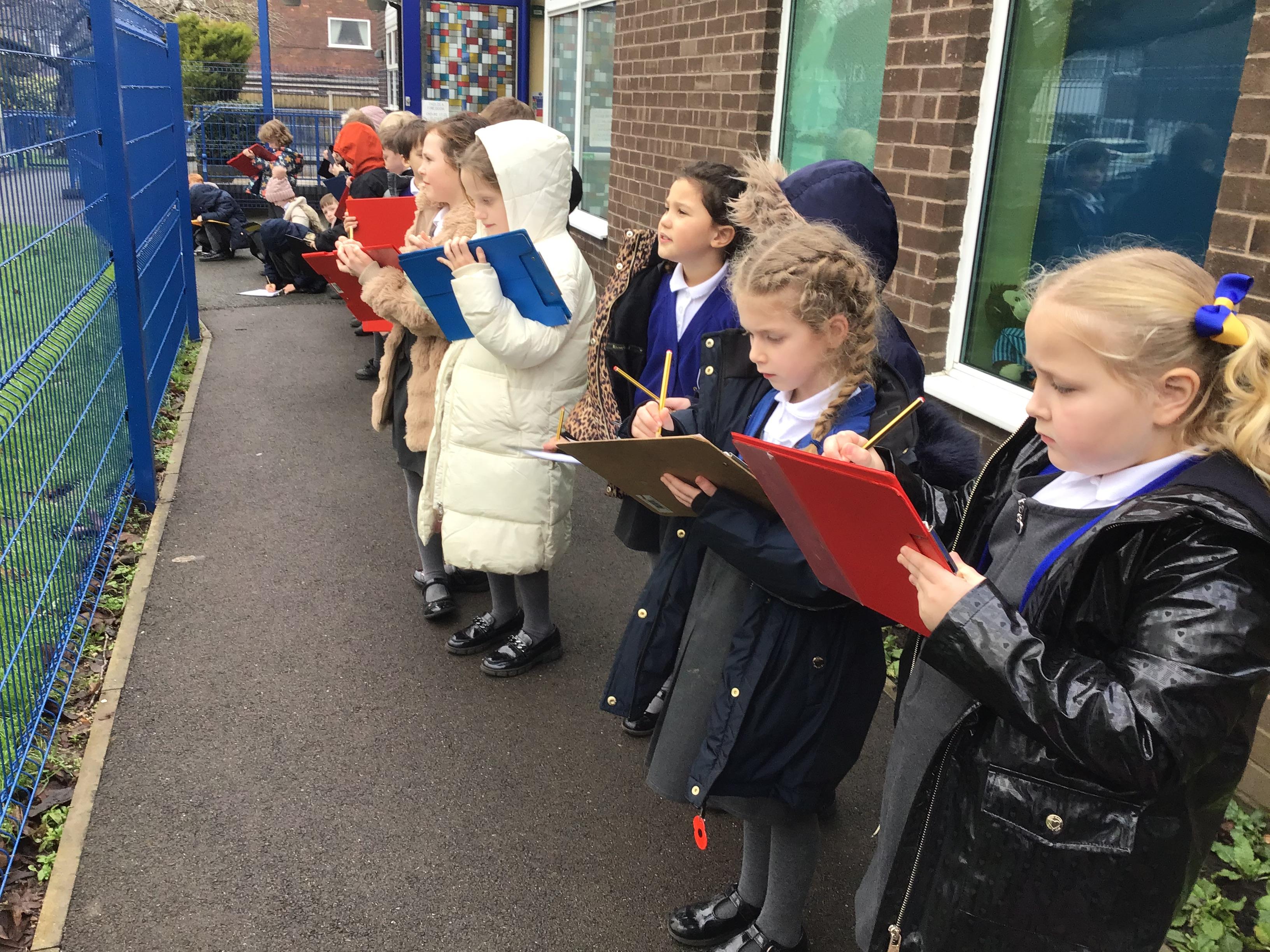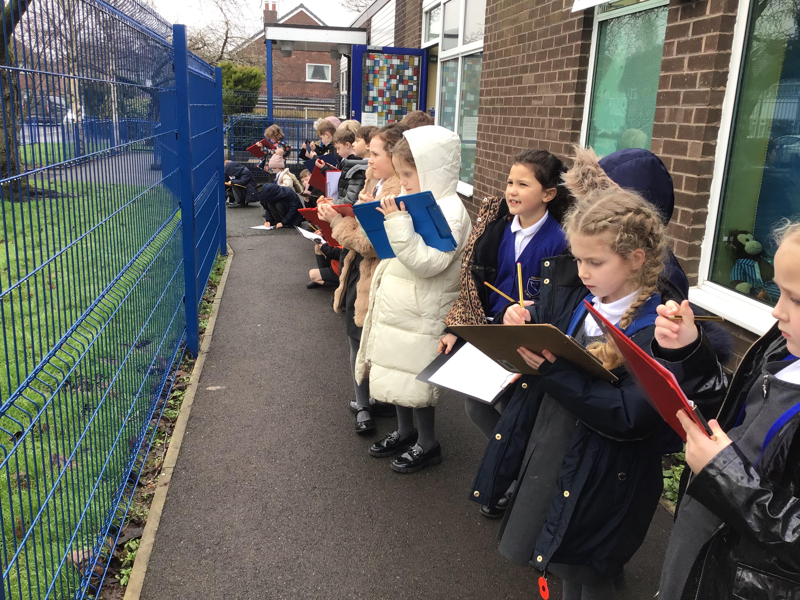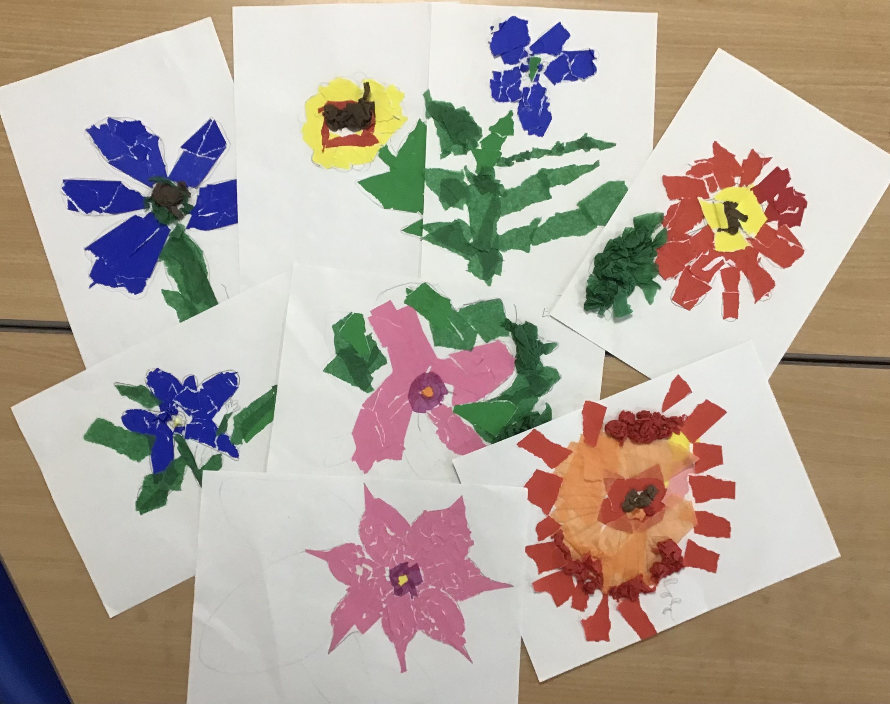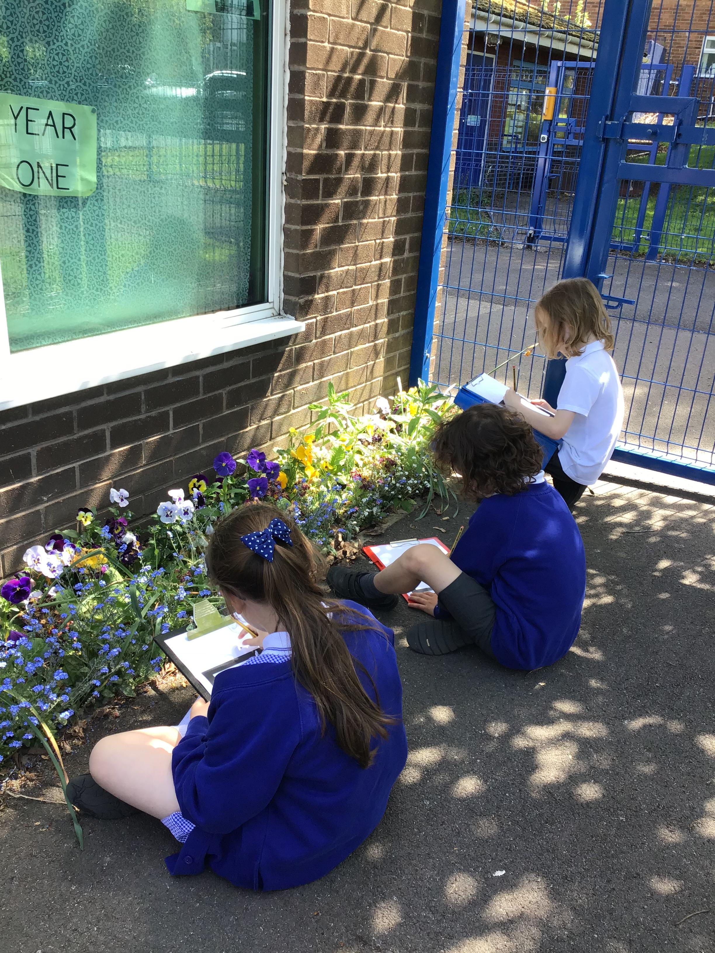 In Art and design this week we began to plan for our summer collages by going out and looking at flowers in the school environment. We then drew them as a starting point for our own design. We looked carefully at line, shape, colour and form.