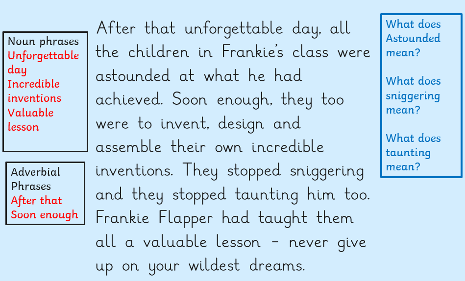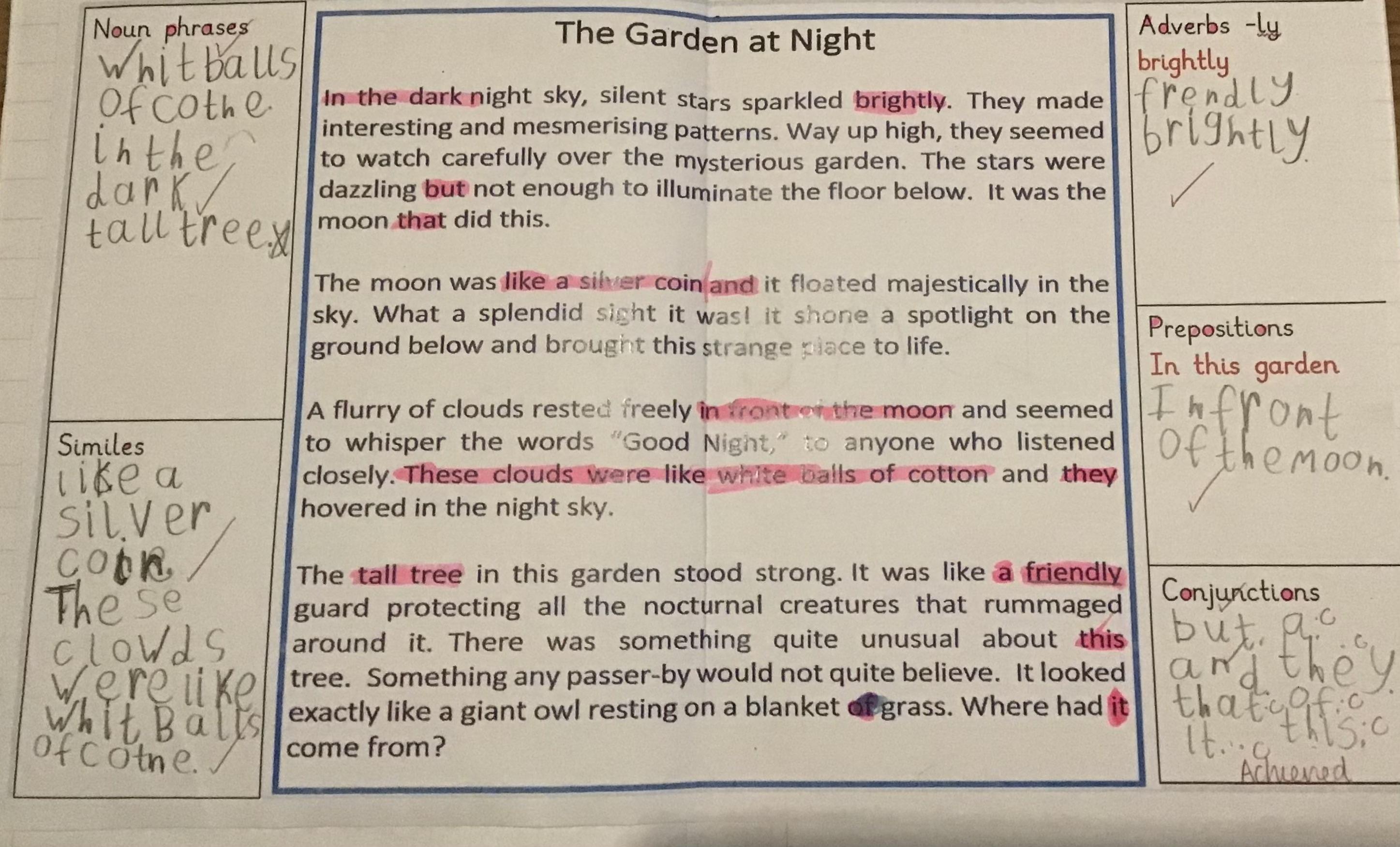 In English this week we have been writing setting descriptions and learning the difference between sentences and noun phrases. We have been analysing a setting description to see how we can write a good one next week.