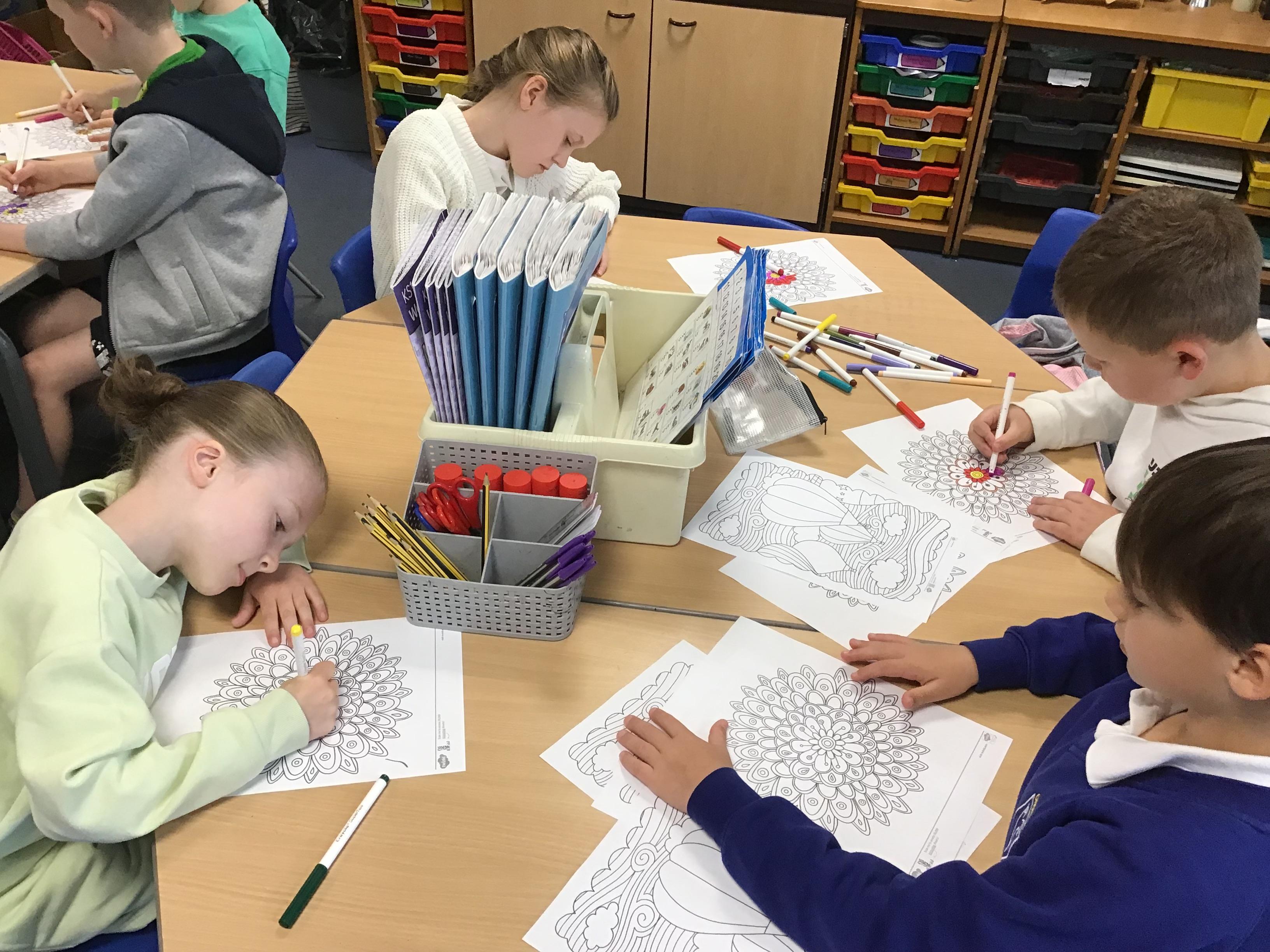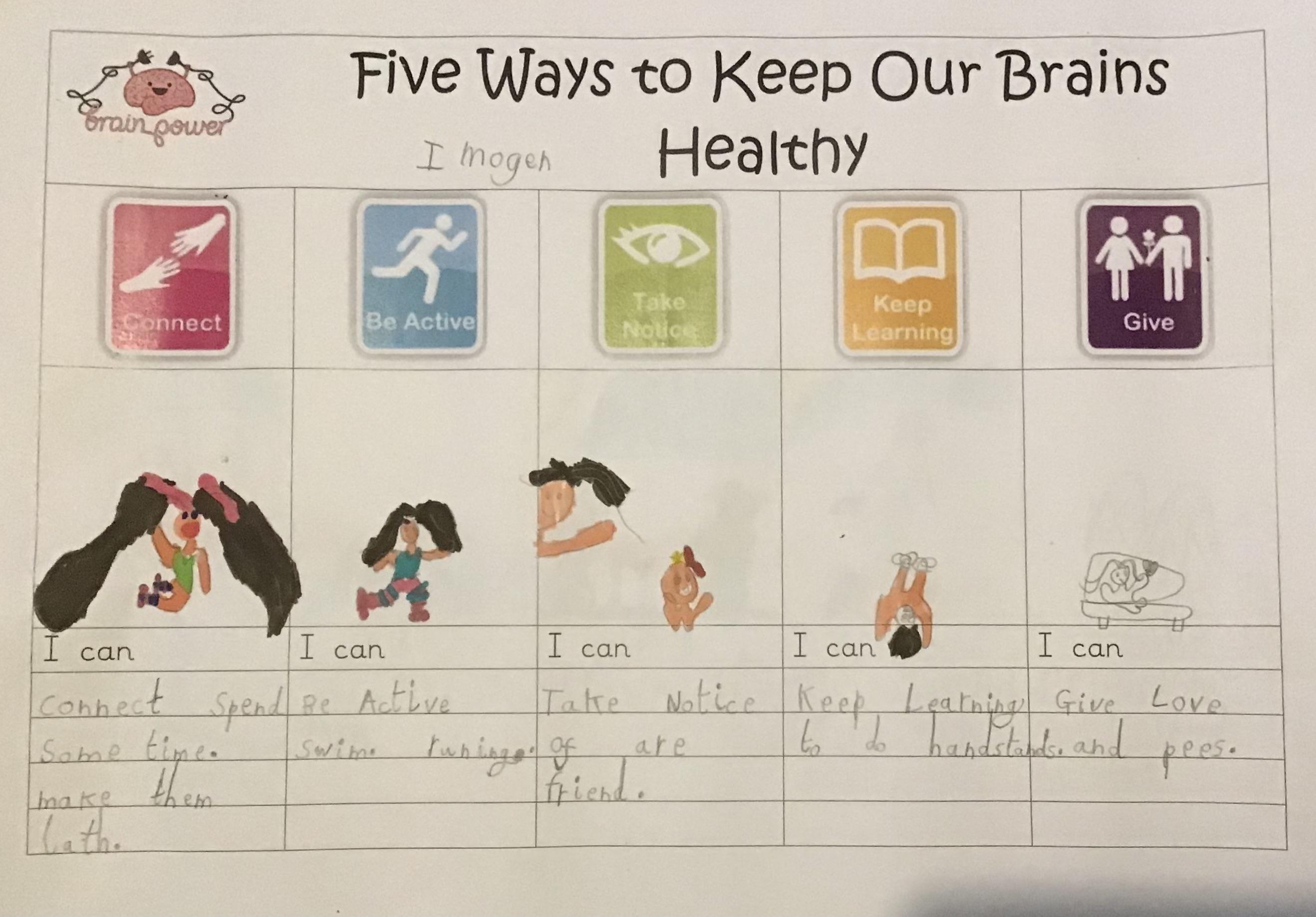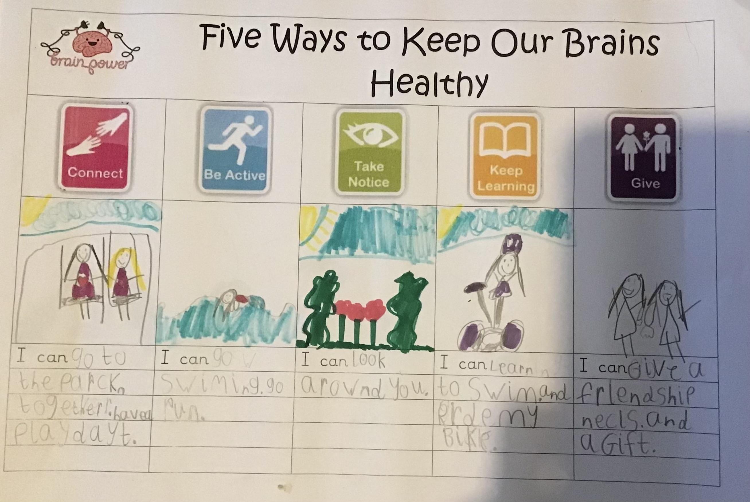 On Monday we celebrated World Mental Health by thinking a little more about how we can help our brain stay happy and healthy. We started the day with some mindfulness colouring and then made our own posters based on the Five Ways for Good Mental Health.