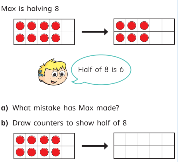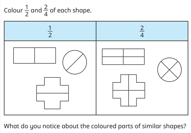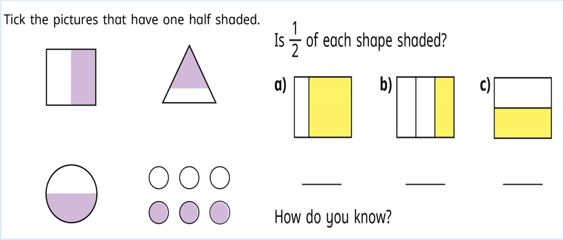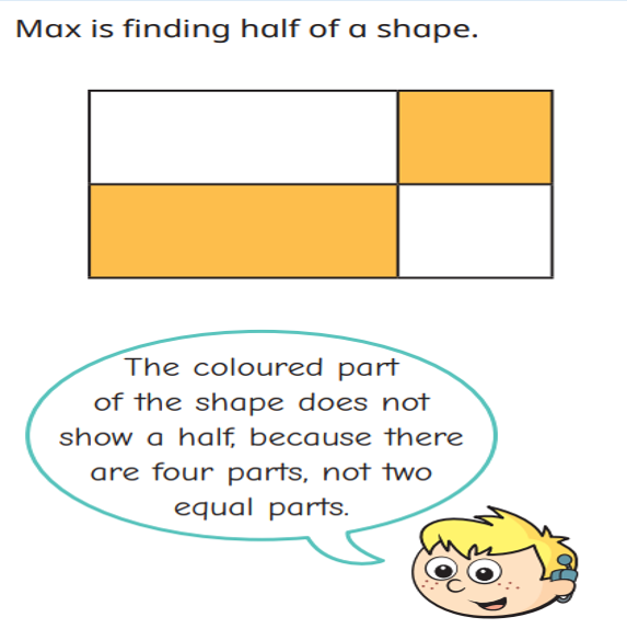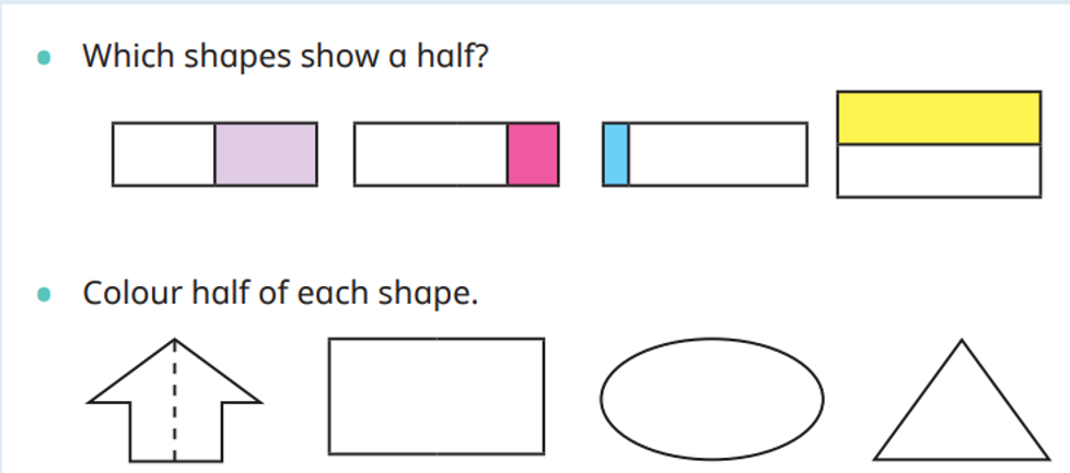 In our maths this week we have started our unit on fractions by identifying half. Remember that a half is one of two equal parts.