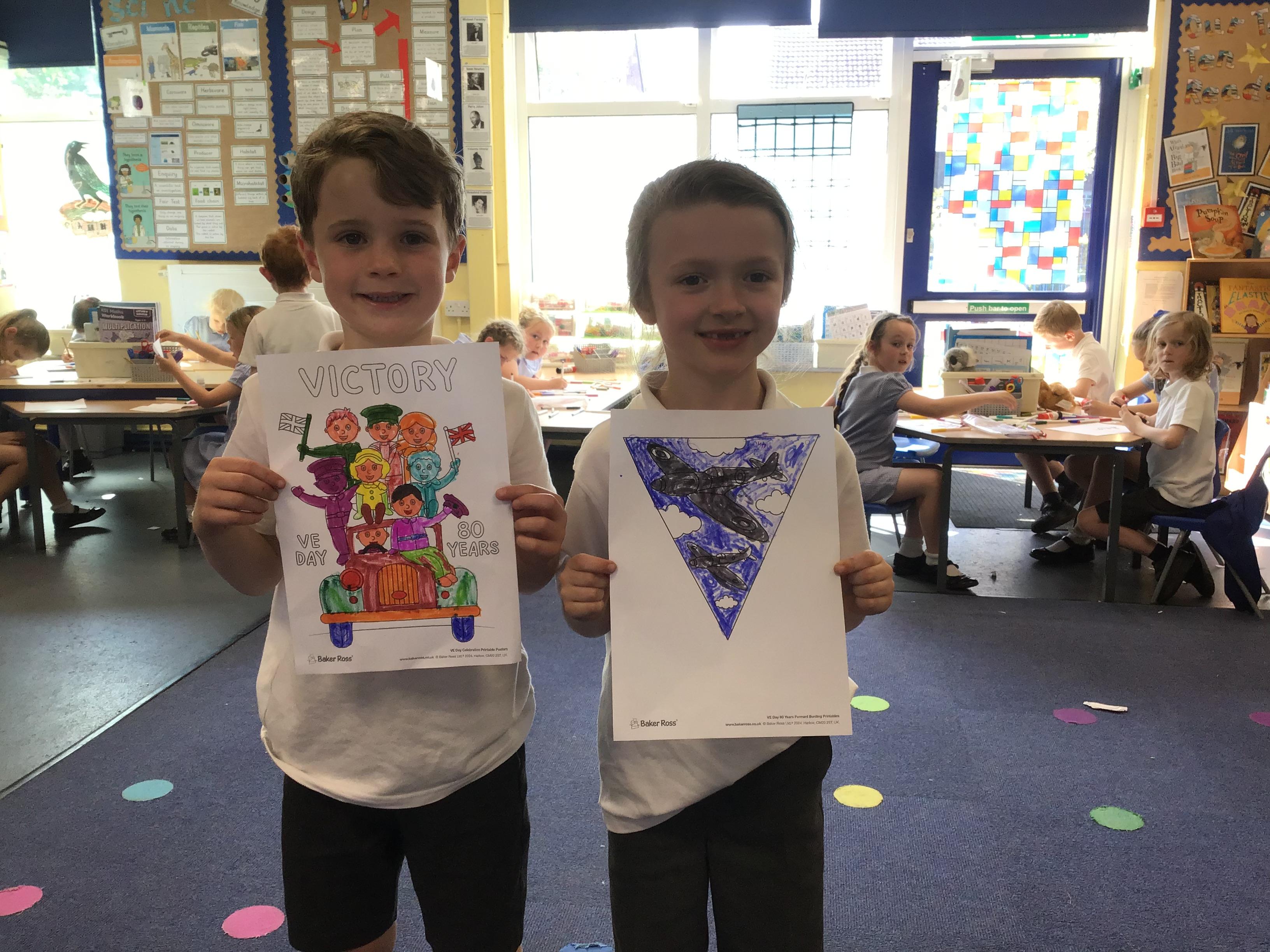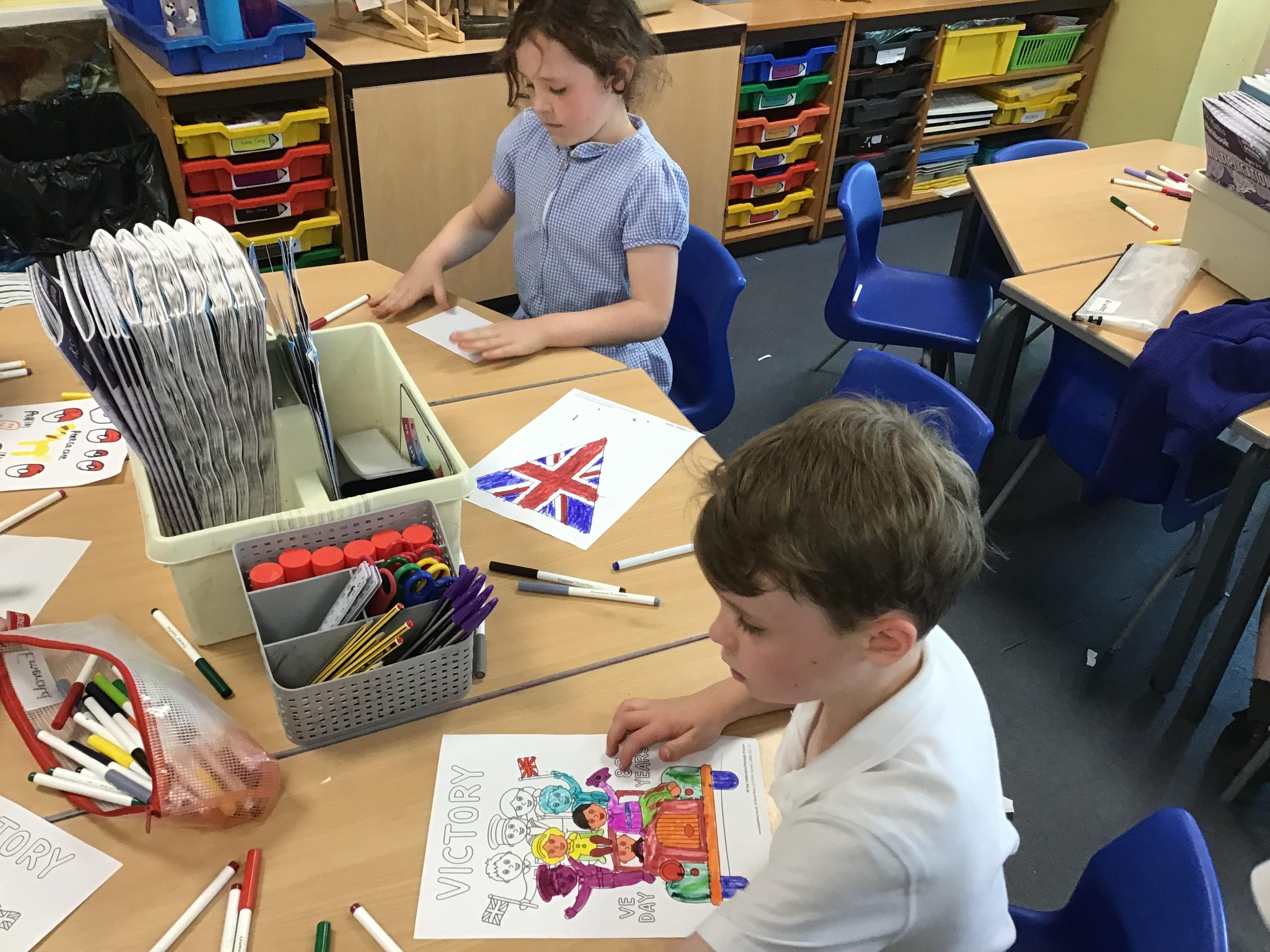 This week we have been busy preparing for the VE Day celebrations in the village by making posters for the event. We enjoyed finding out about VE Day before we made our posters and look forward to learning some more next week!