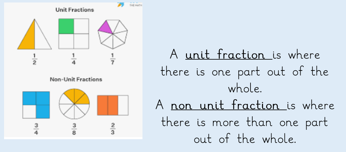 In our maths we have continued our unit on fractions by learning about unit and non-unit fractions.