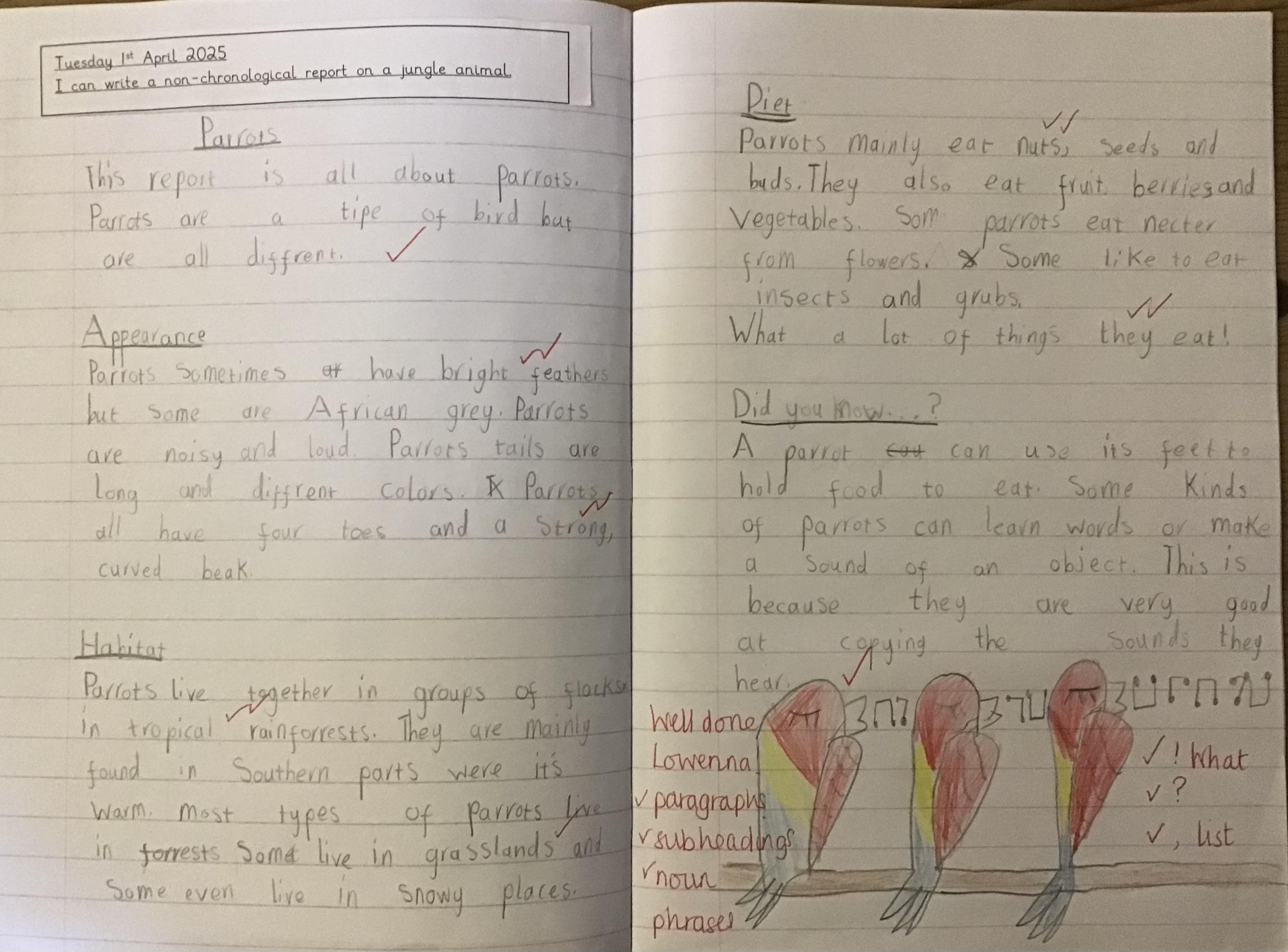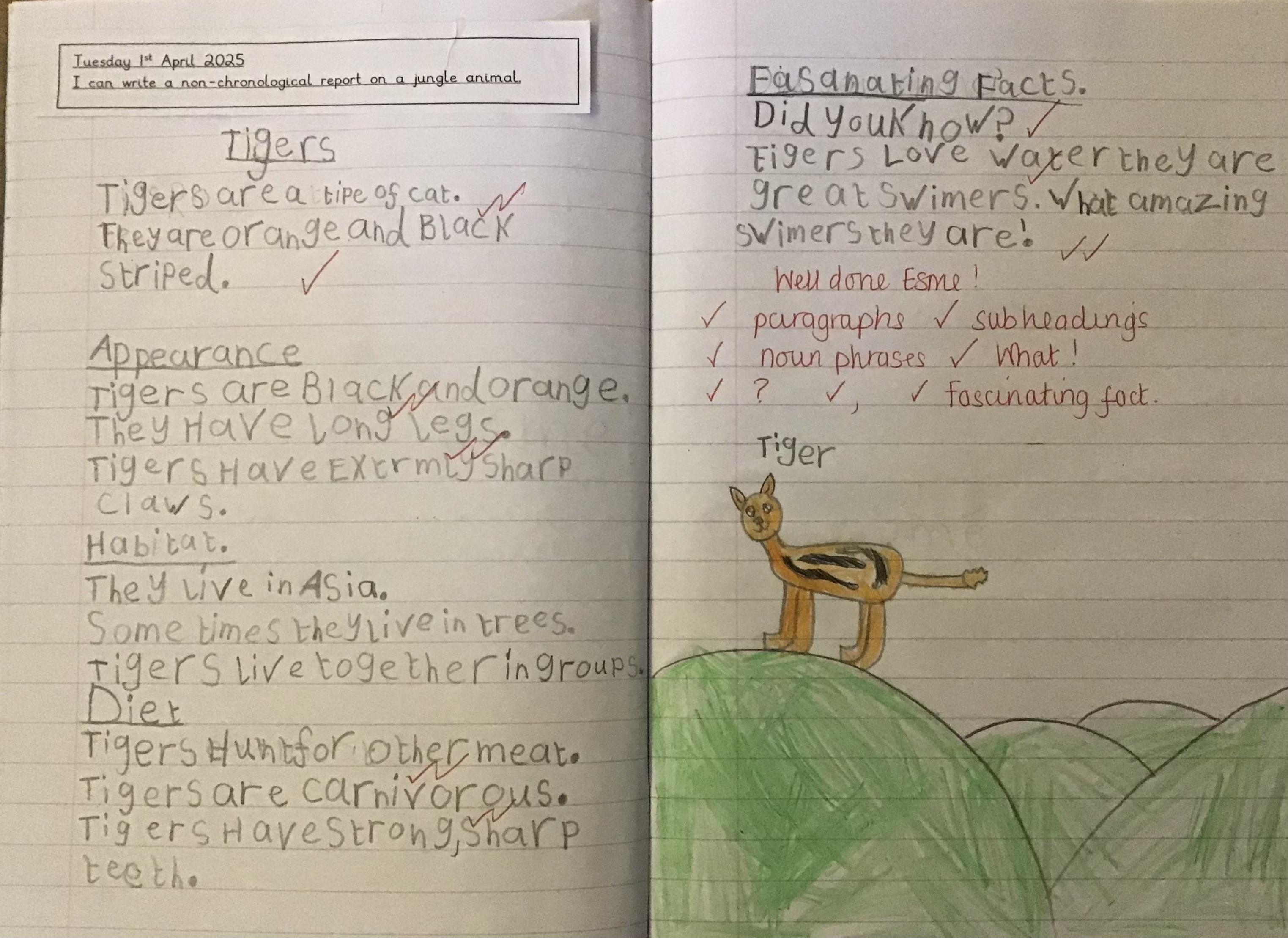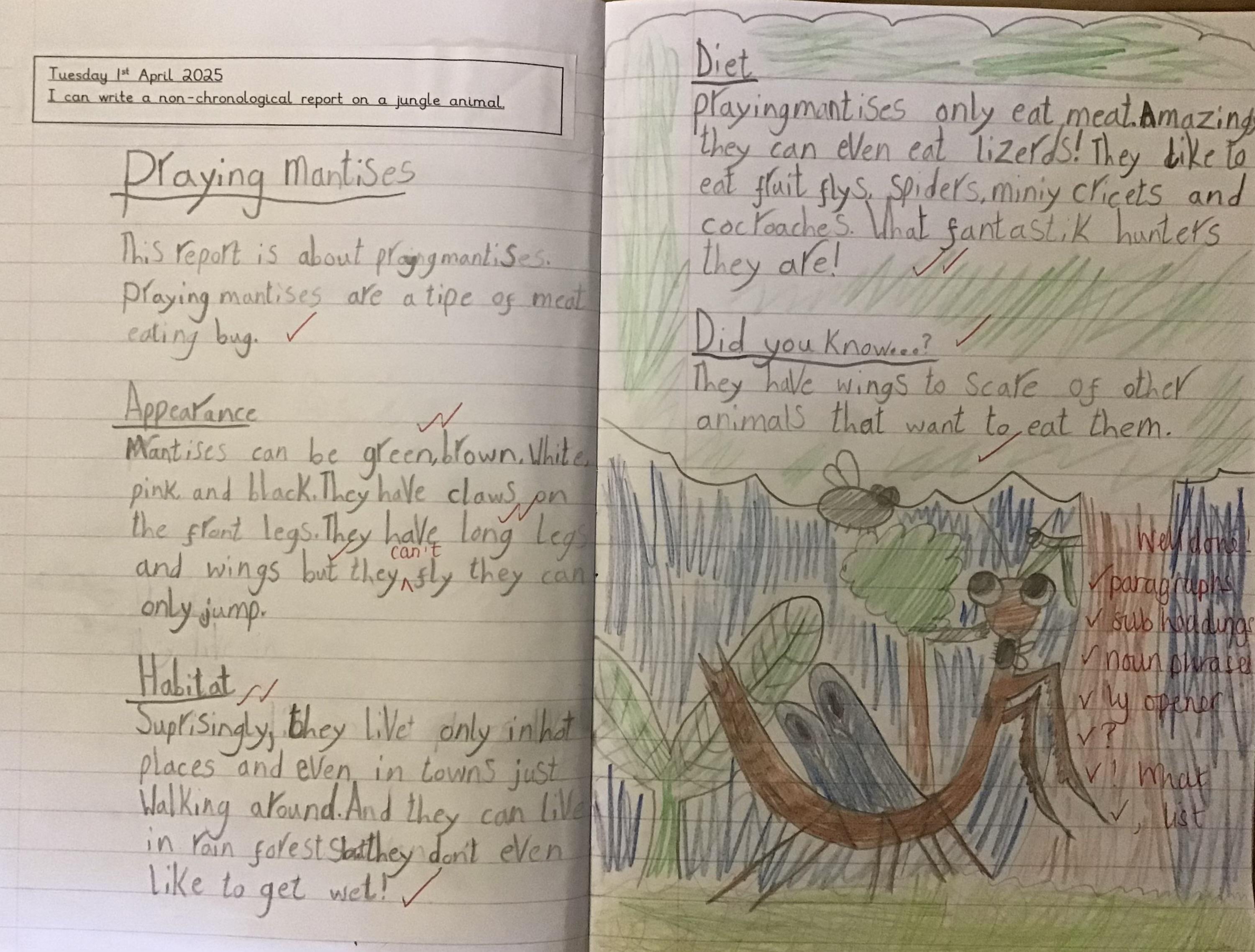 In our English we finished off our non-chronological reports on our chosen jungle animals. We had lots of different creatures to choose from!