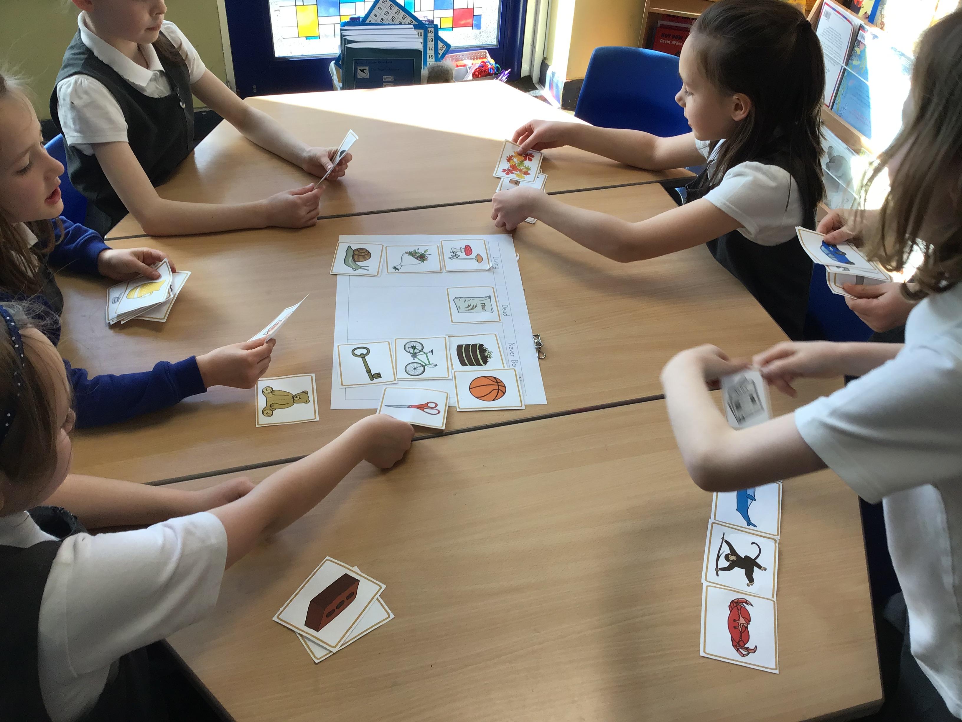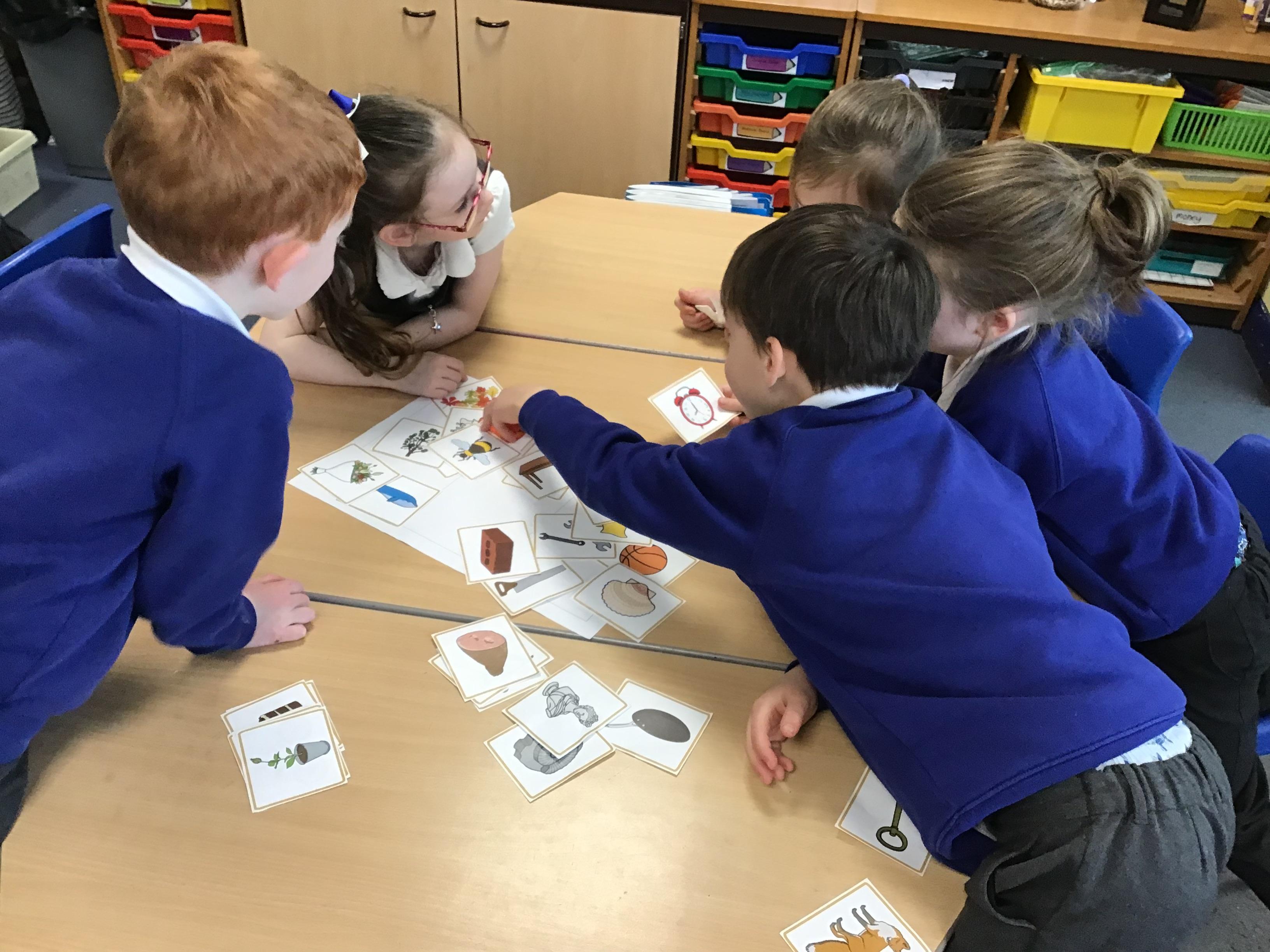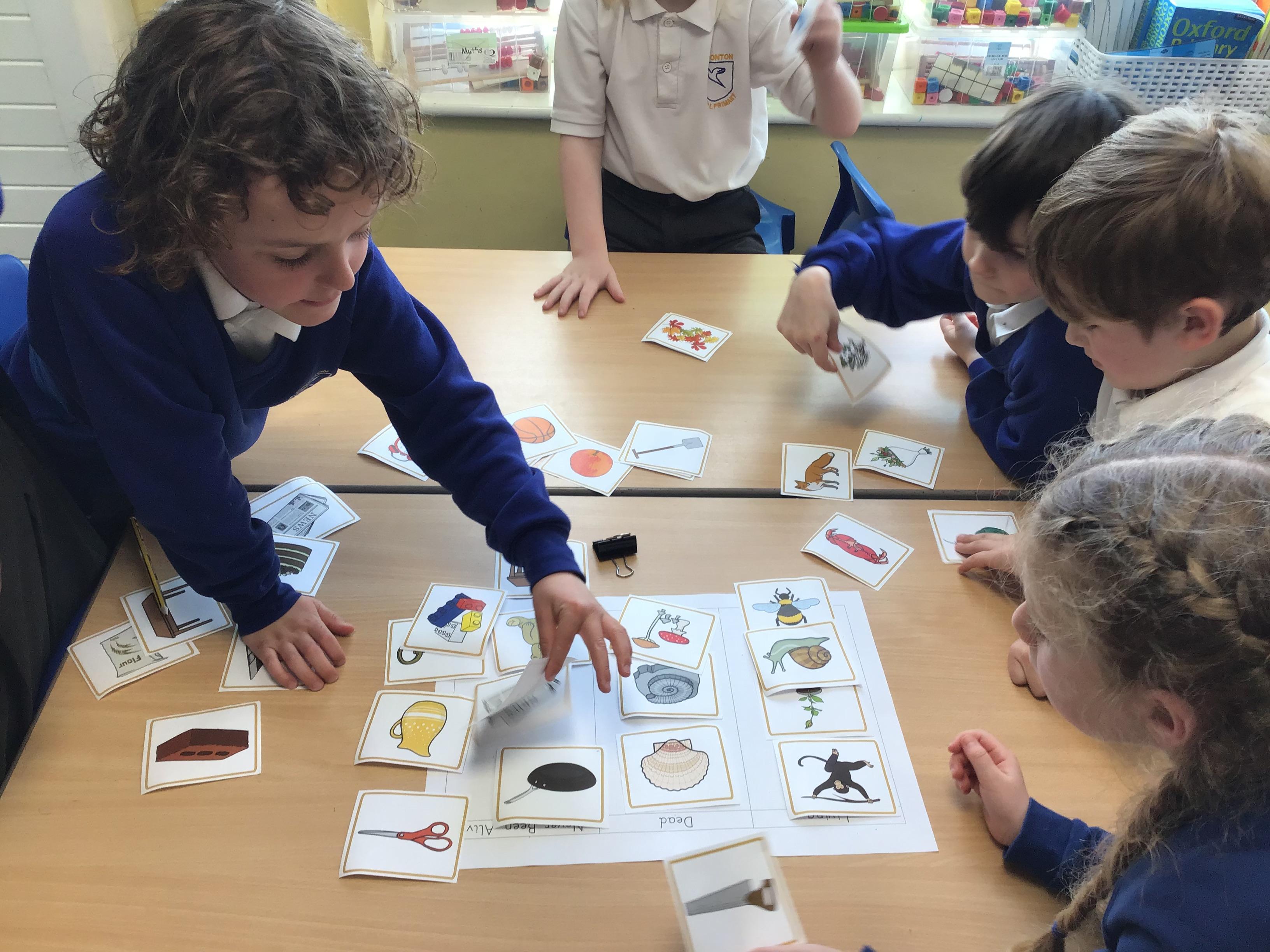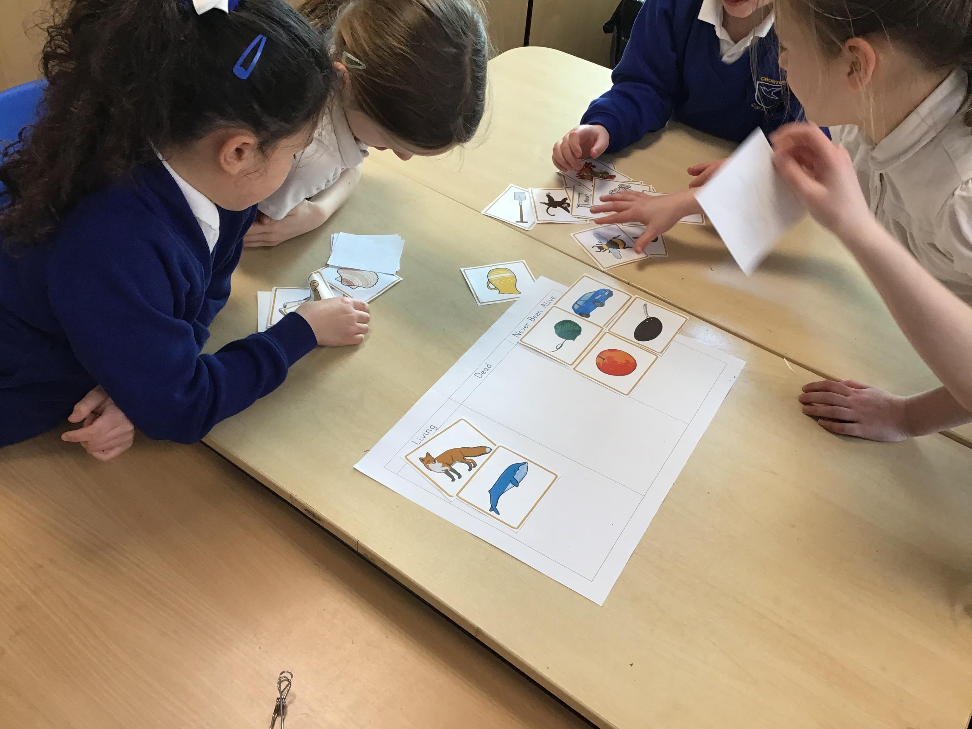 We started our new Science block on Living Things and Habitats by investigating whether things were alive, dead or never been alive. This brought about some interesting discussions: would you say a chocolate cake was dead or never been alive? It was argued that it should be in the dead category because it is made with ingredients such as chocolate and flour that were once alive as plants.