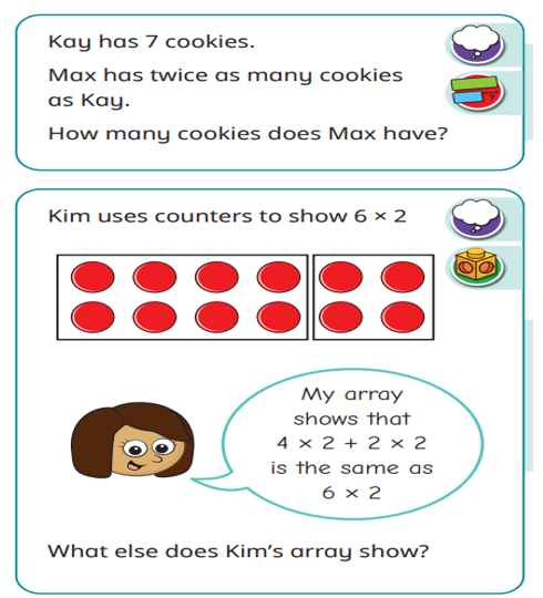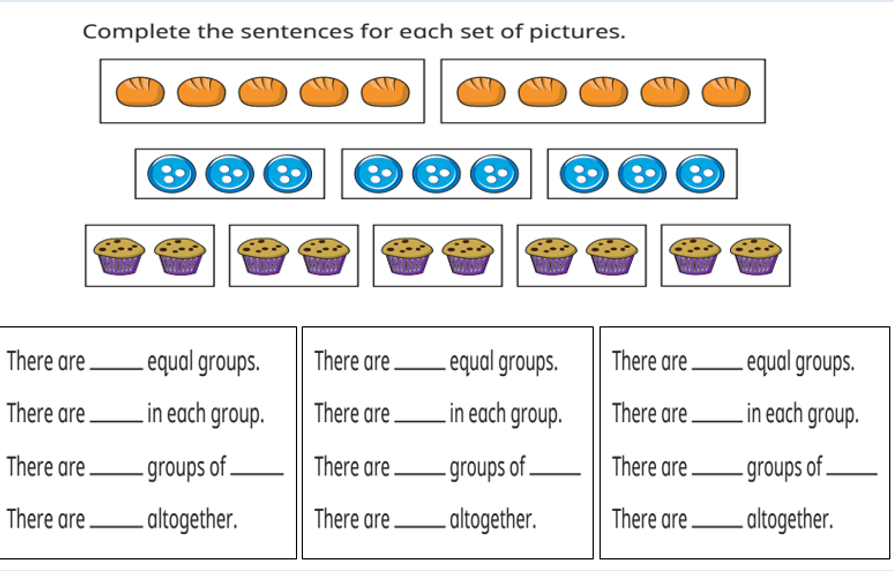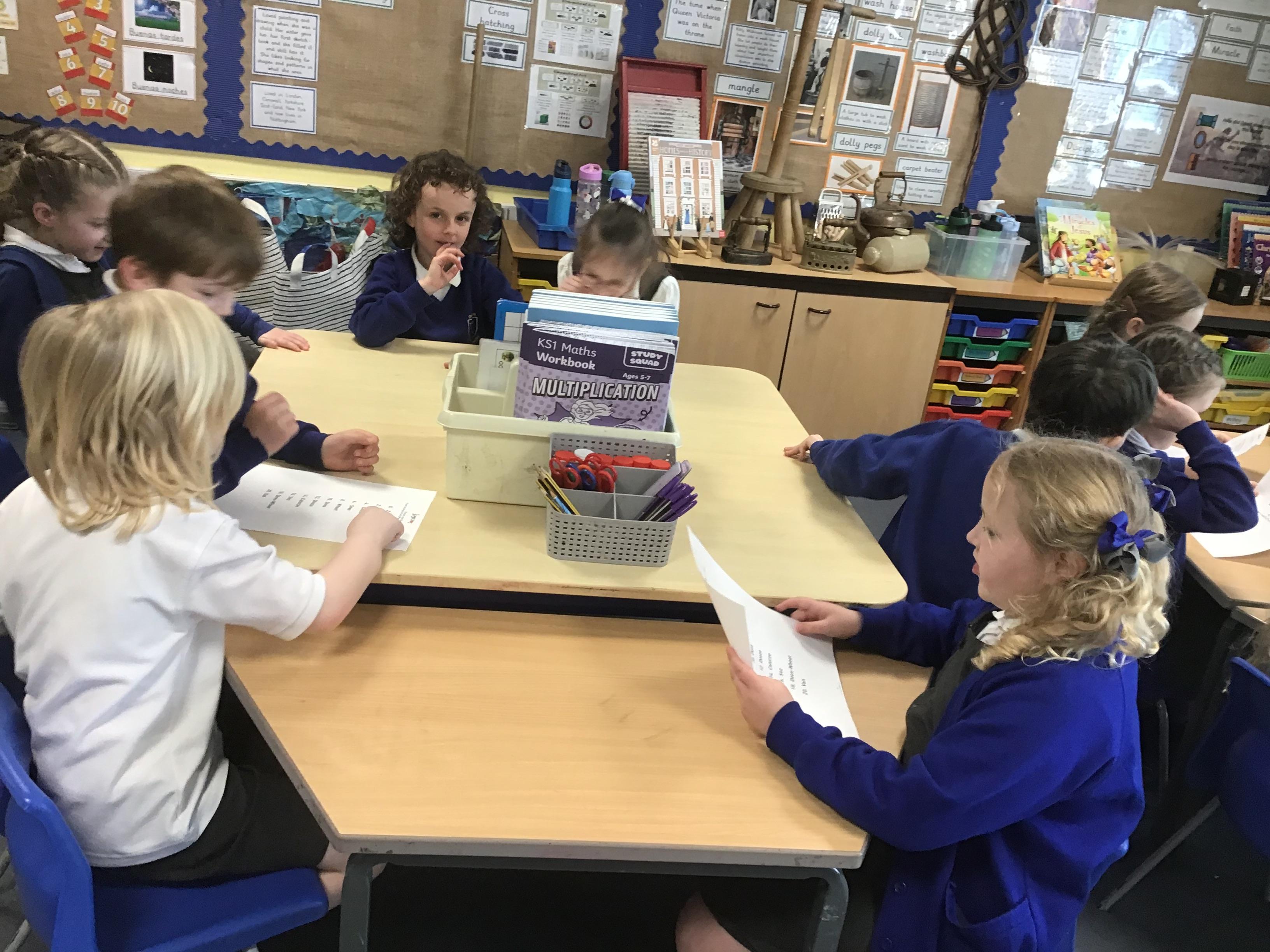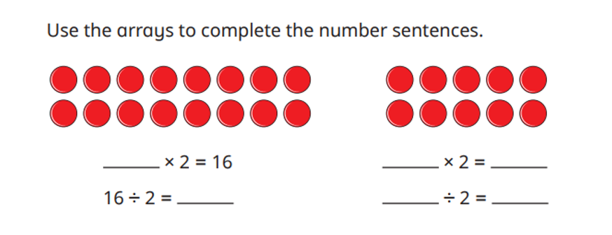 This week in our maths we have continued working on multiplication and division. We have looked at division through making equal groups and using our multiplication facts to help us solve the division problems. We have also continued to look at the division facts we can work out from arrays. We have been investigating the two times table a little further as well.