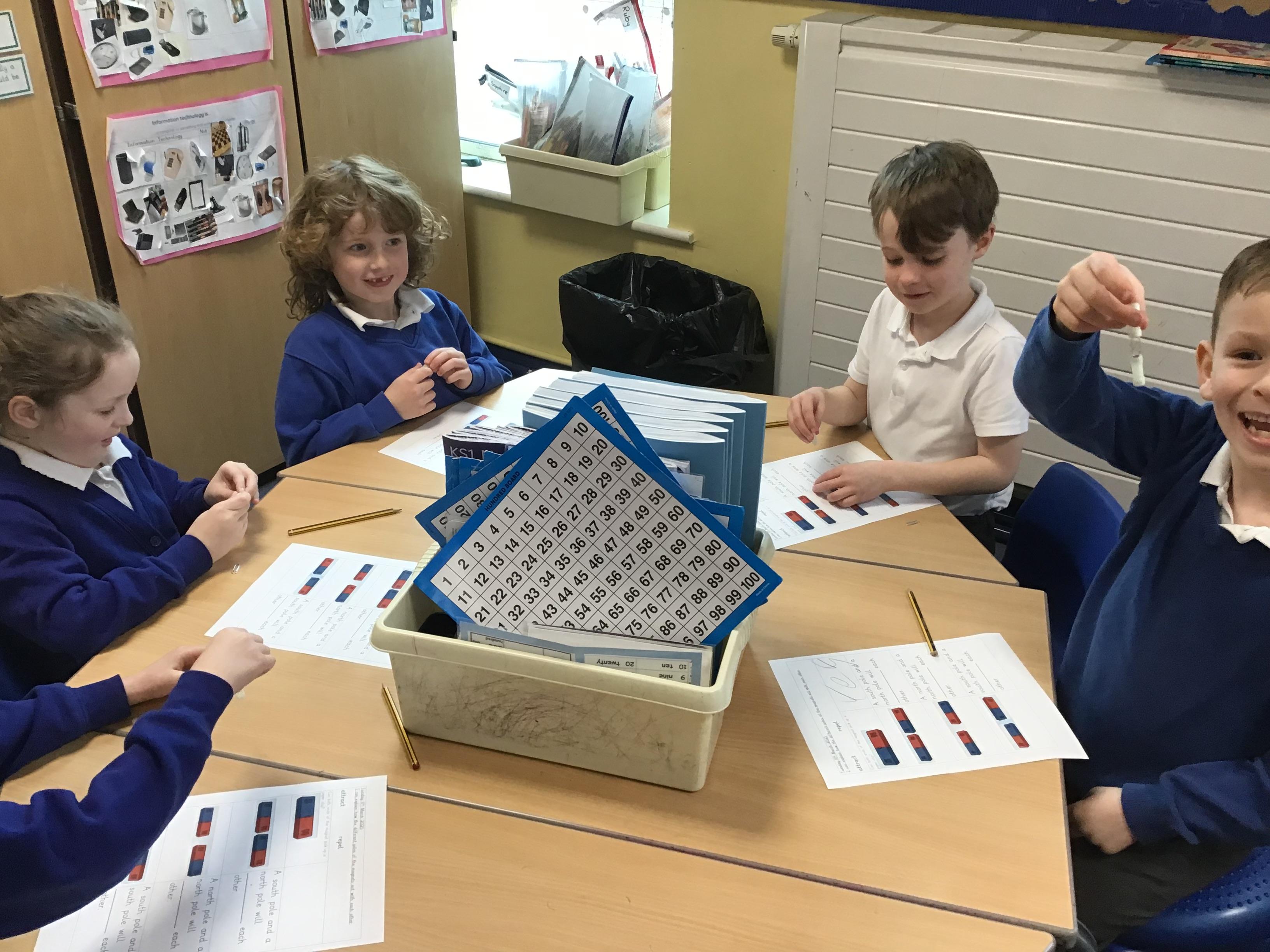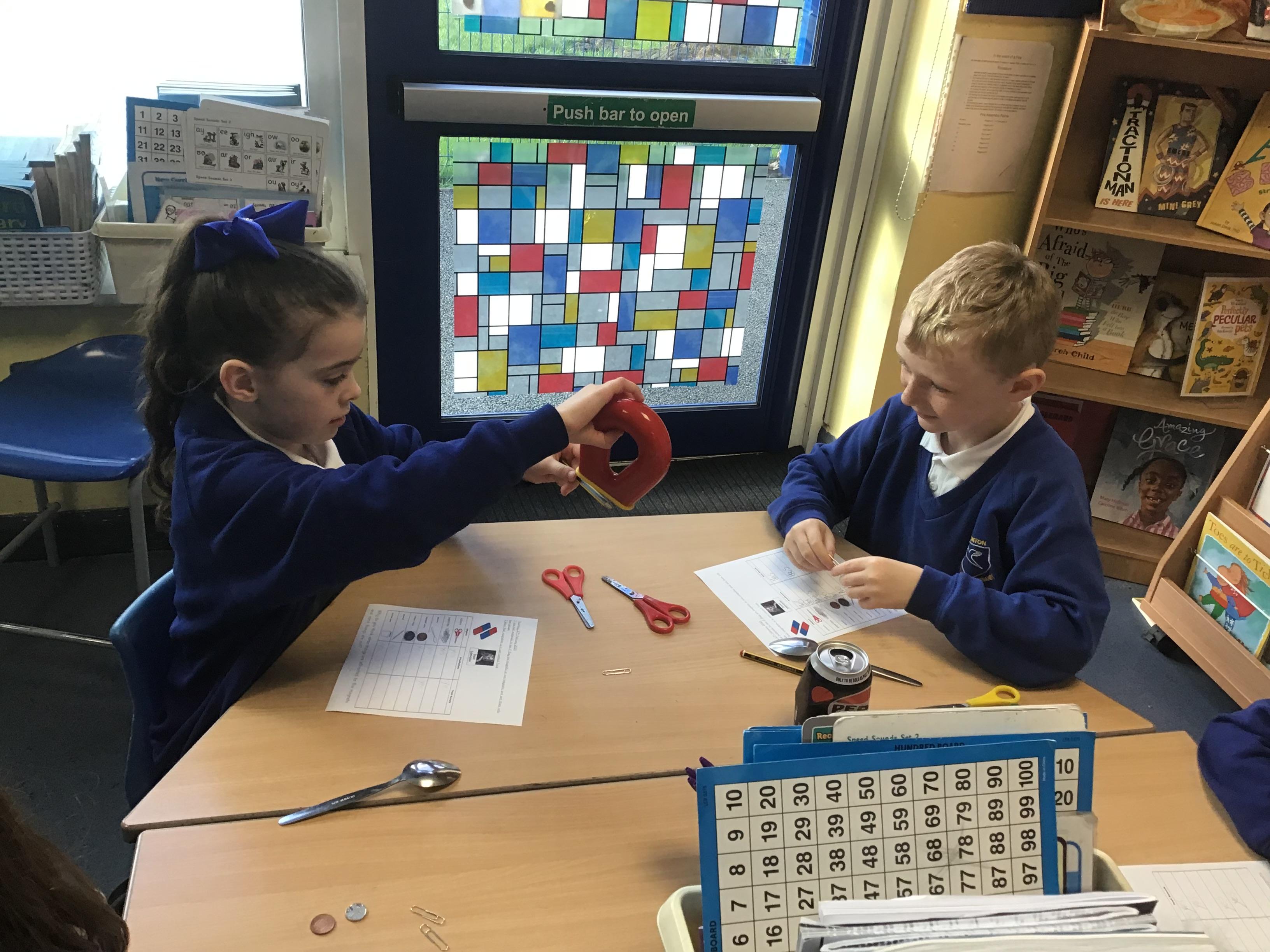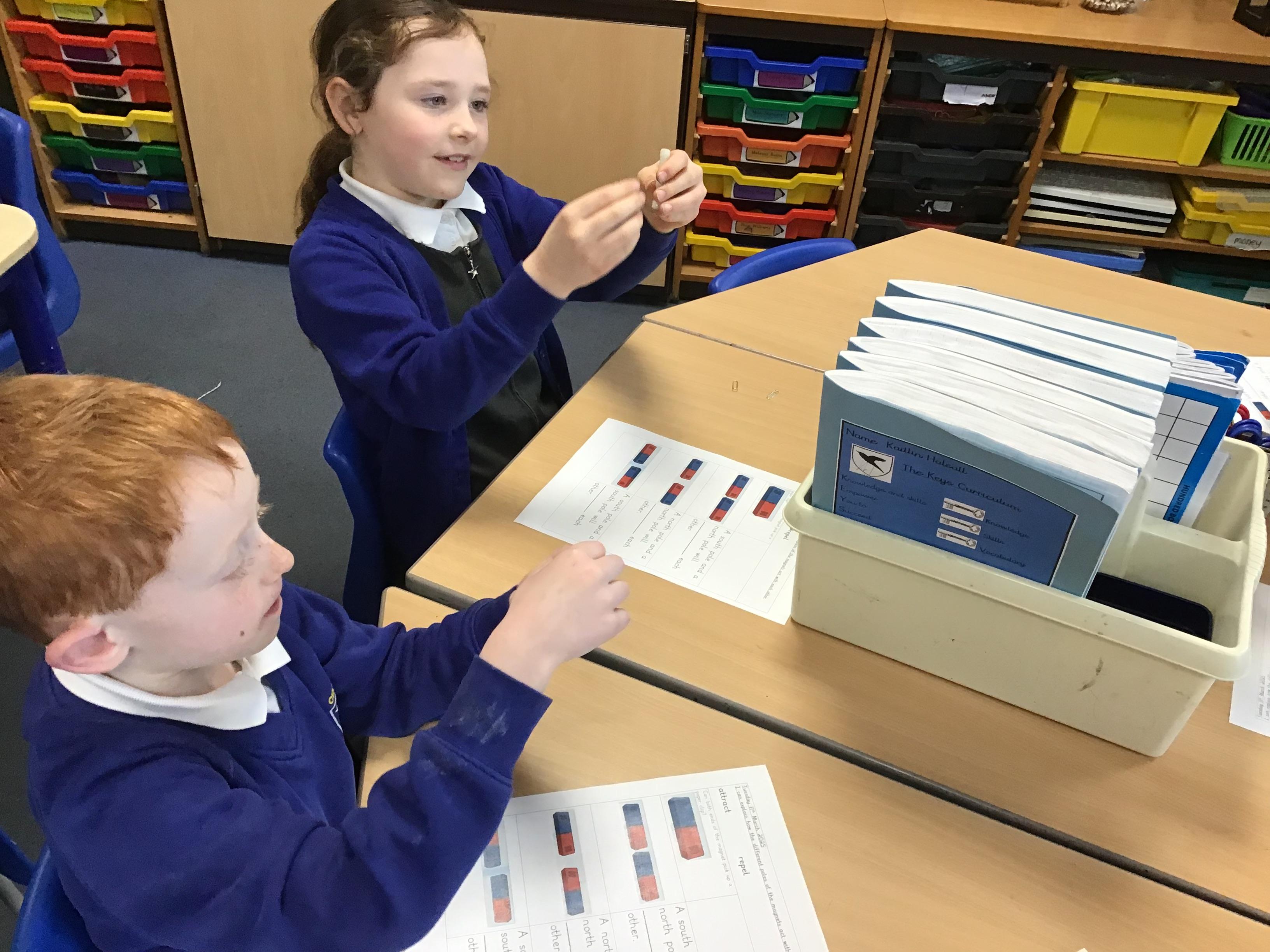 In our science we finished off our unit on forces by investigating the different poles on magnets and how they react to each other. We learned two new terms: repel and attract. What can your child tell you about what we found out?