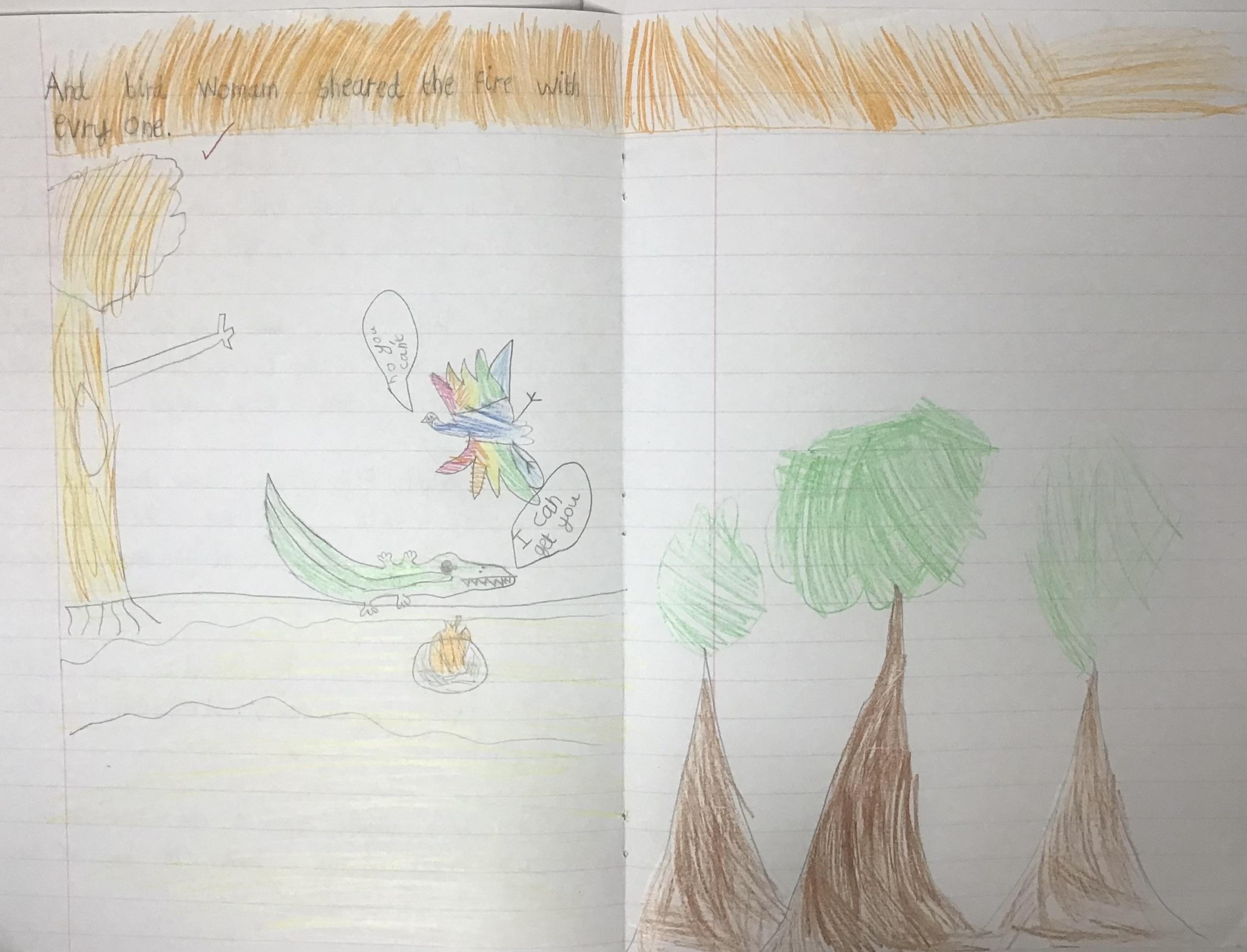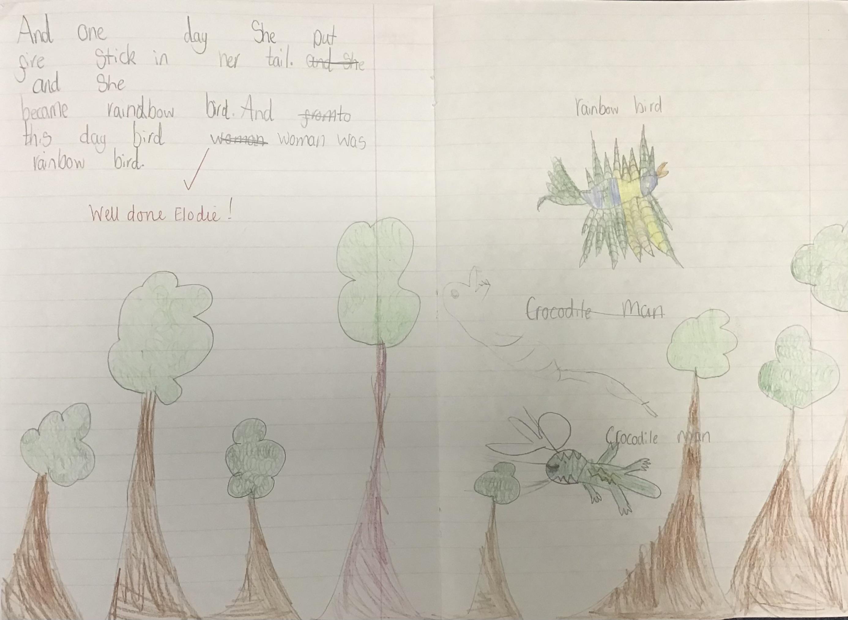 In English this week, as part of World Book Day we read and retold the story of The Rainbow Bird and drew our own illustrations to go with it.
