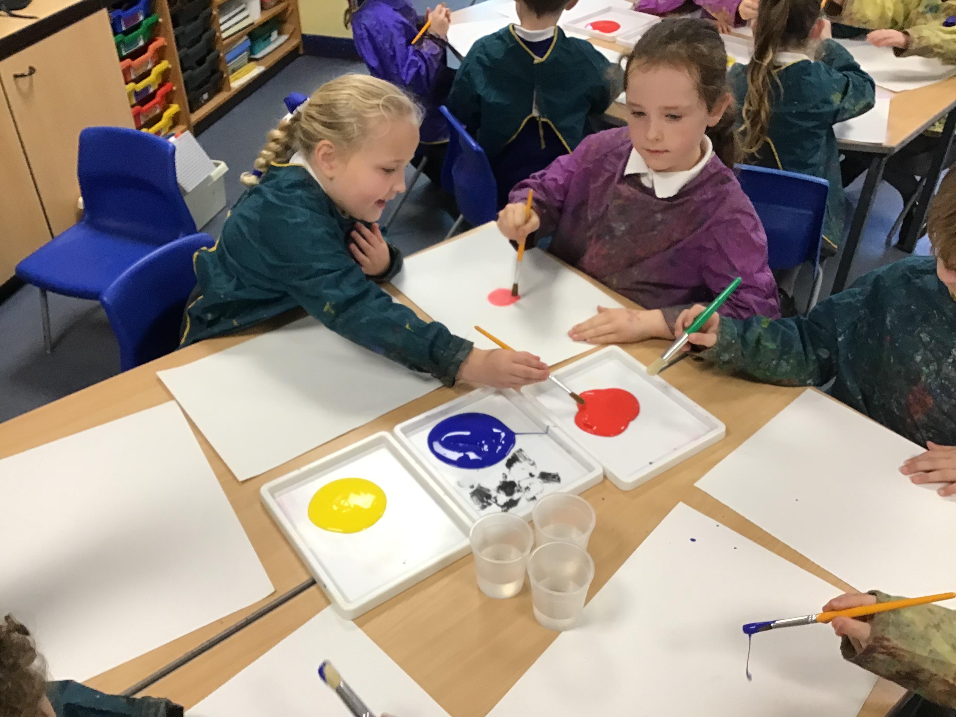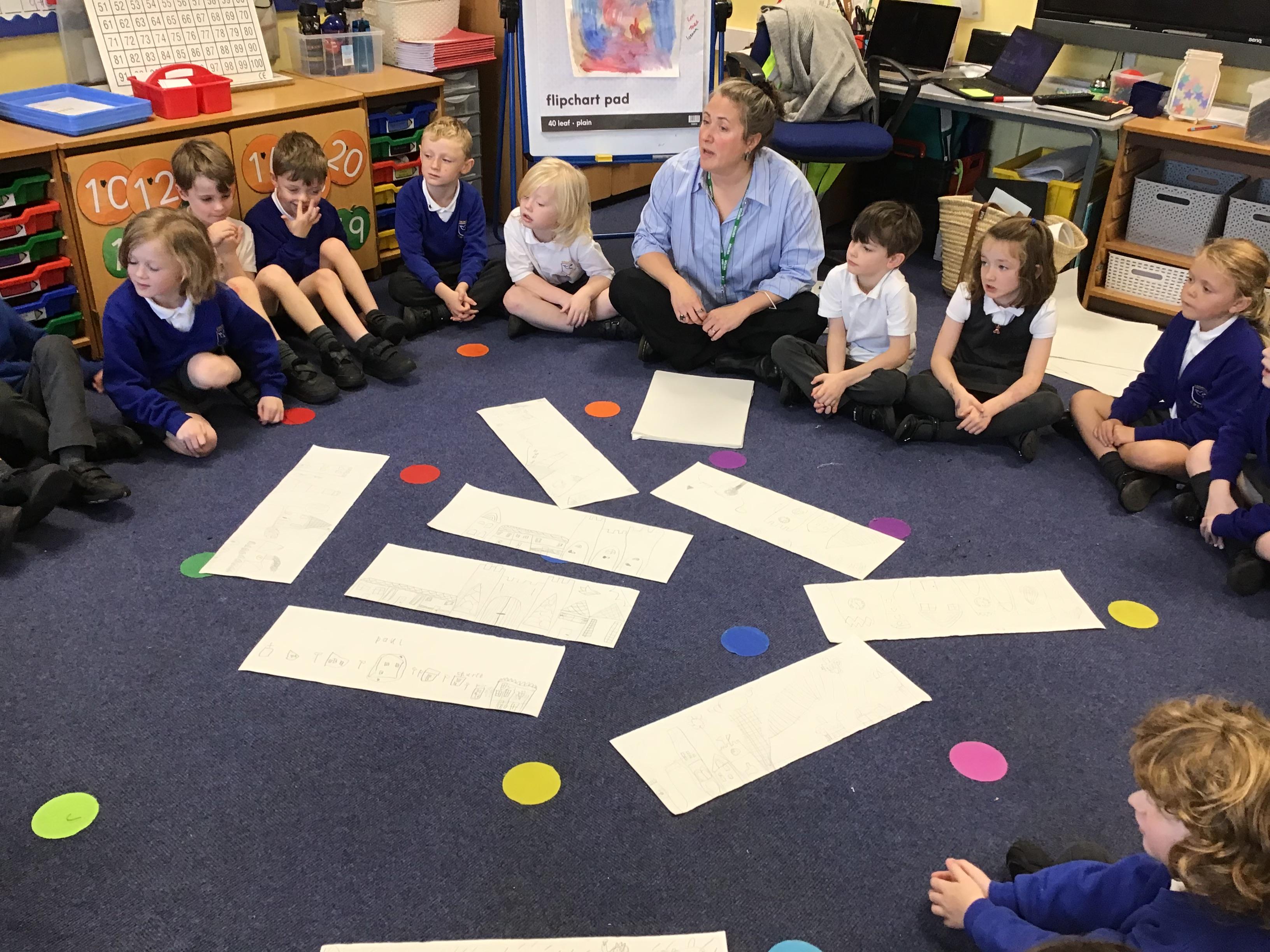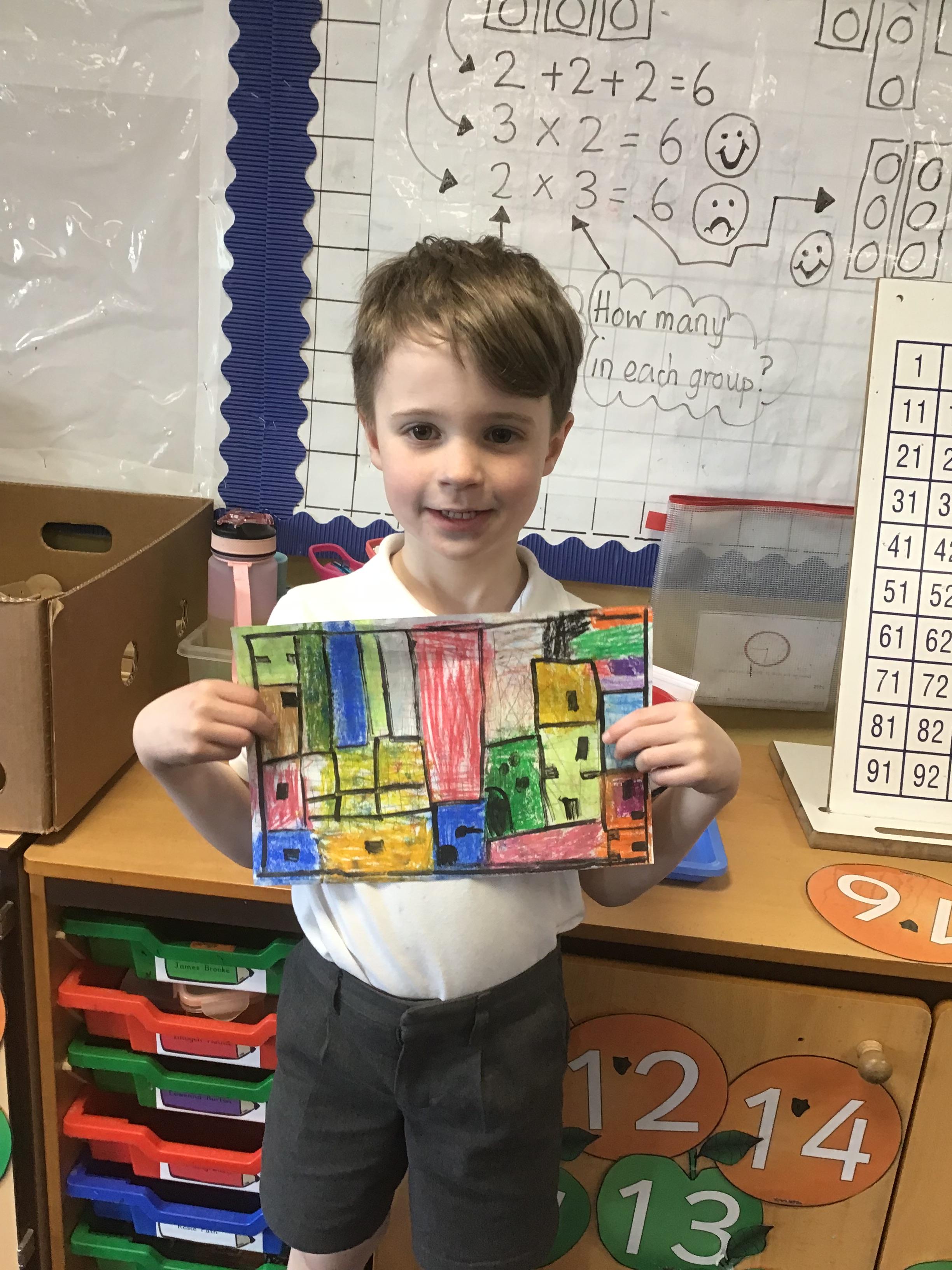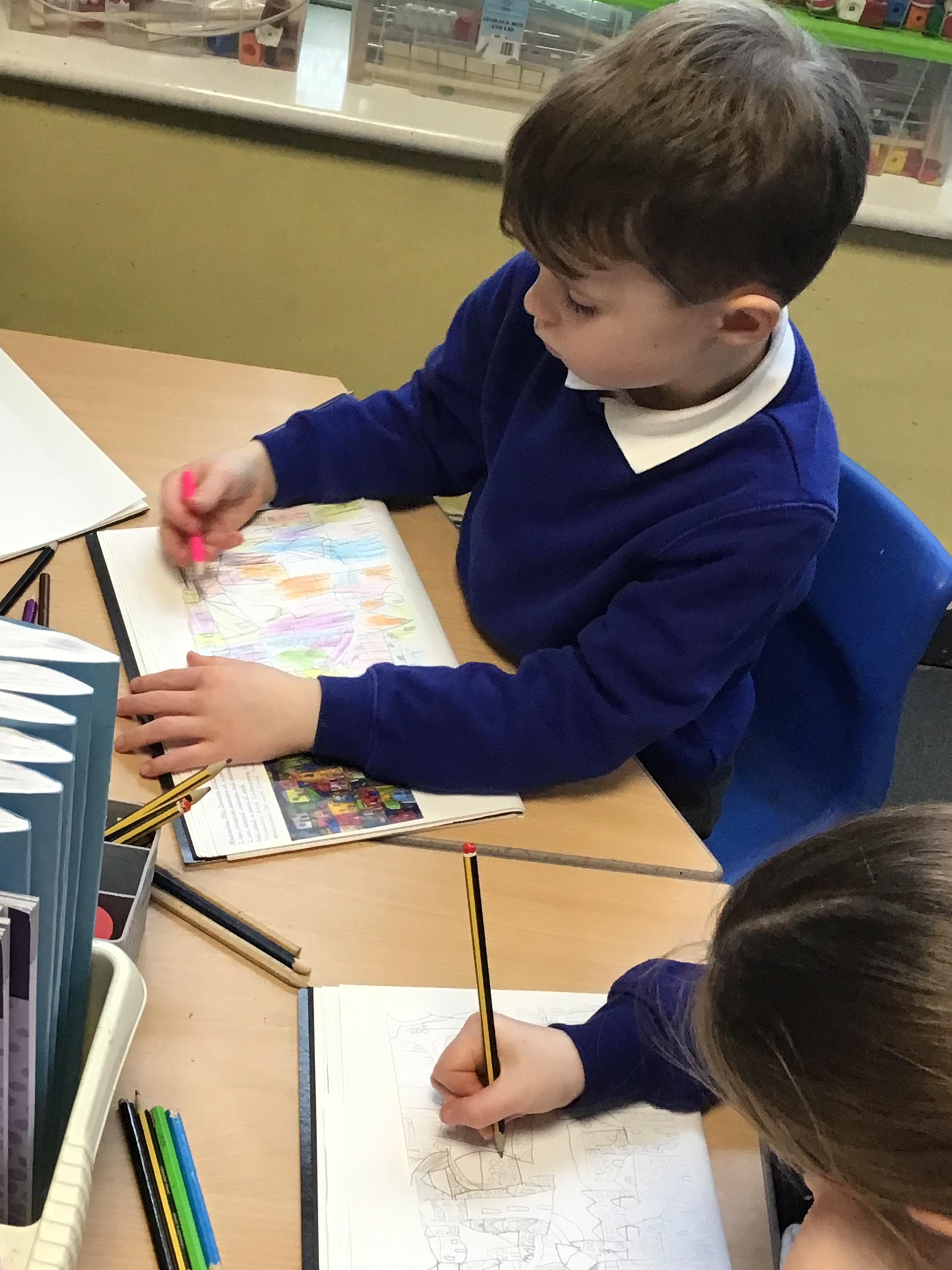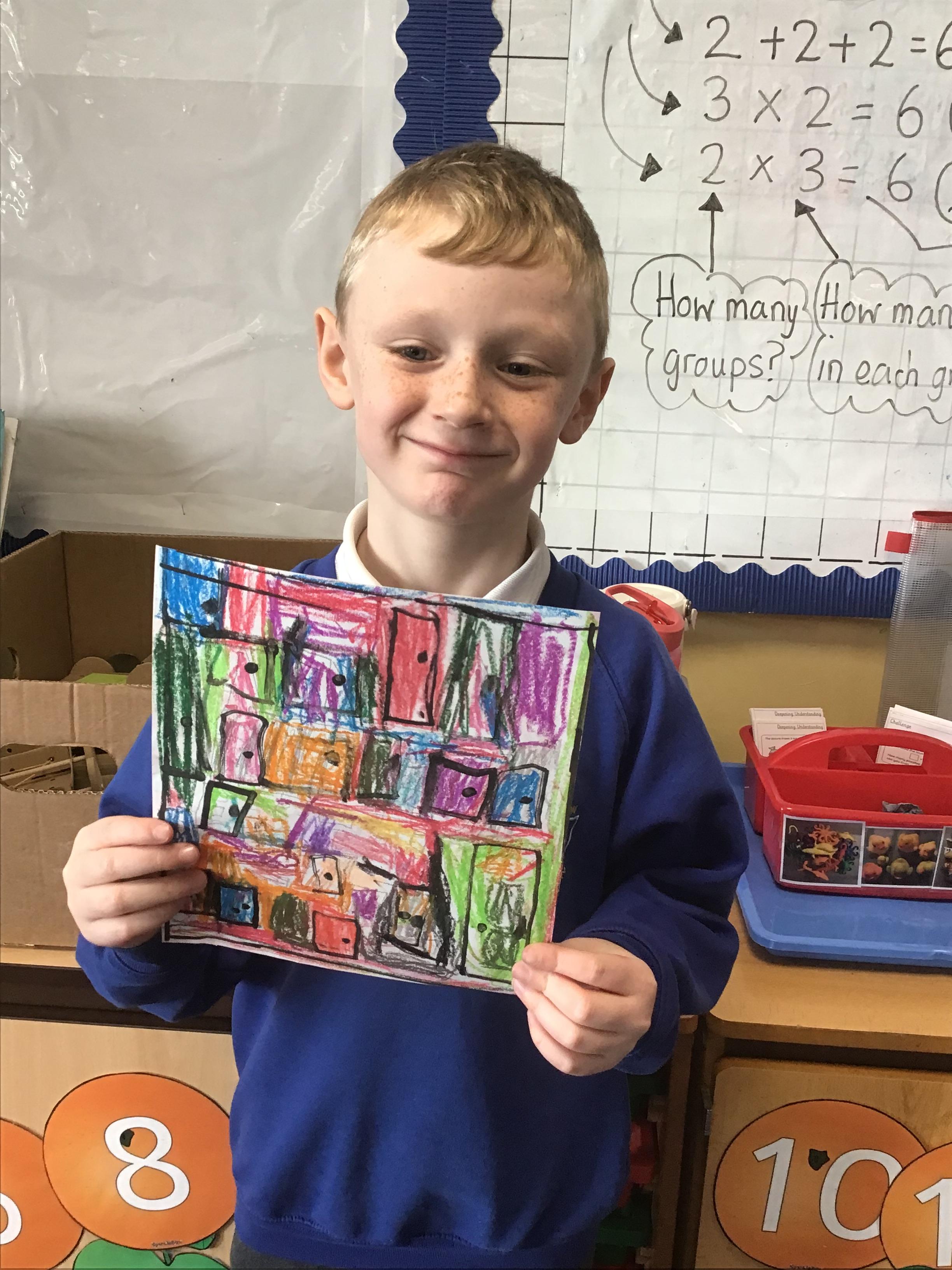 in preparation for our Spring art block on Maeve Wright. We explored colour mixing and thickness and thinness of paints and then looked at townscapes and buildings. We drew our own townscapes and thought carefully about different types of lines and how we can position items in our work to create depth and perspective.