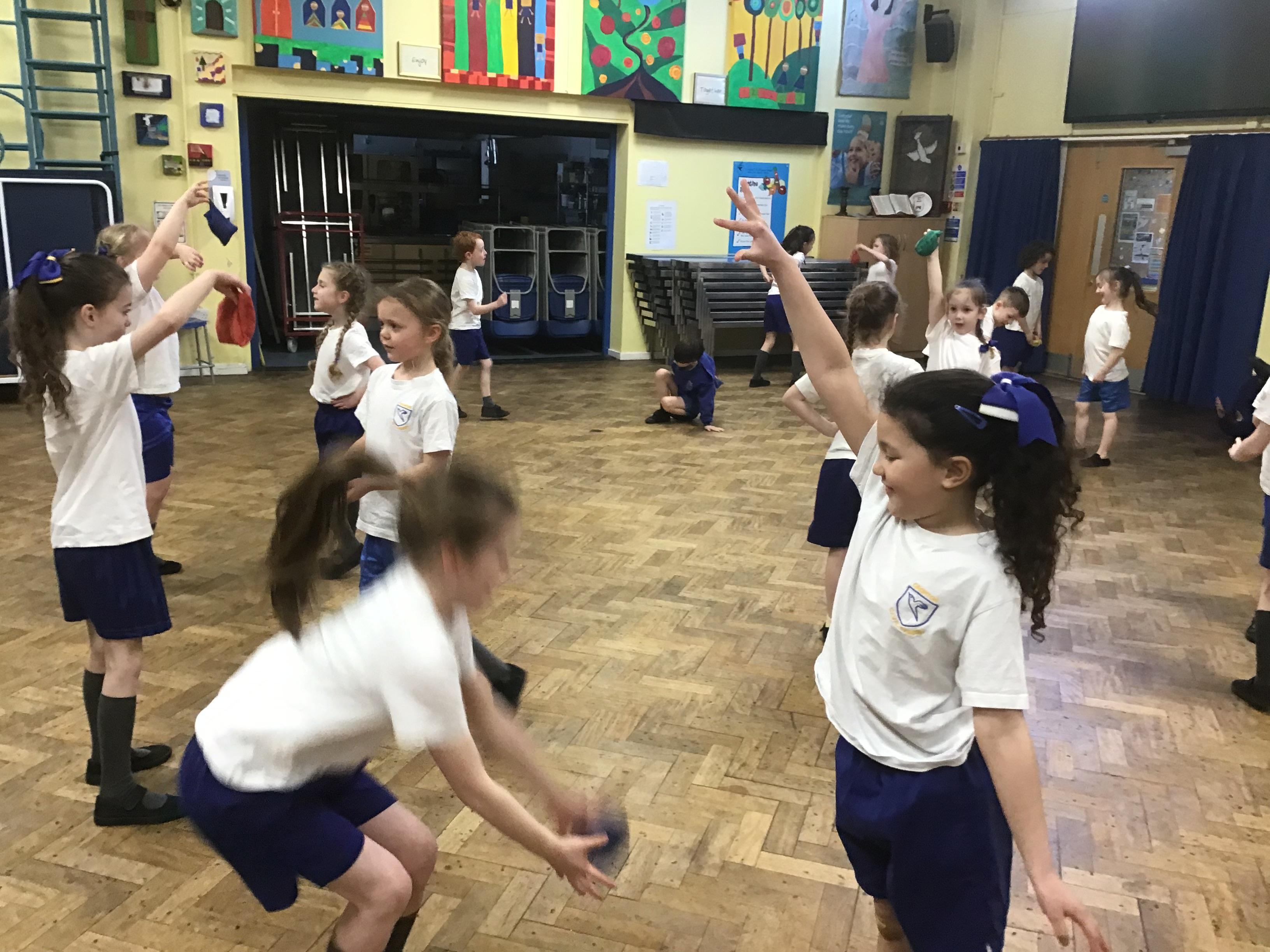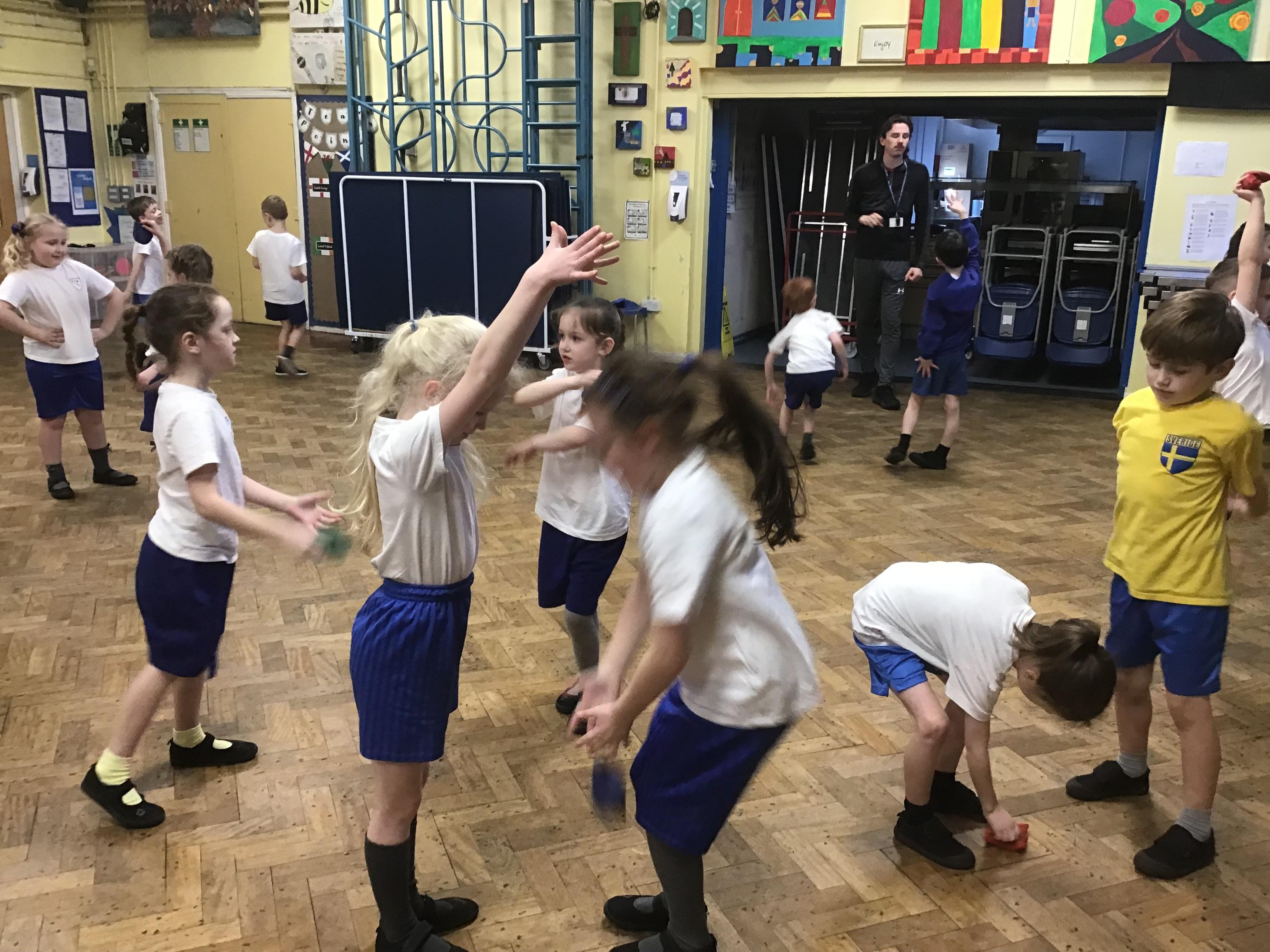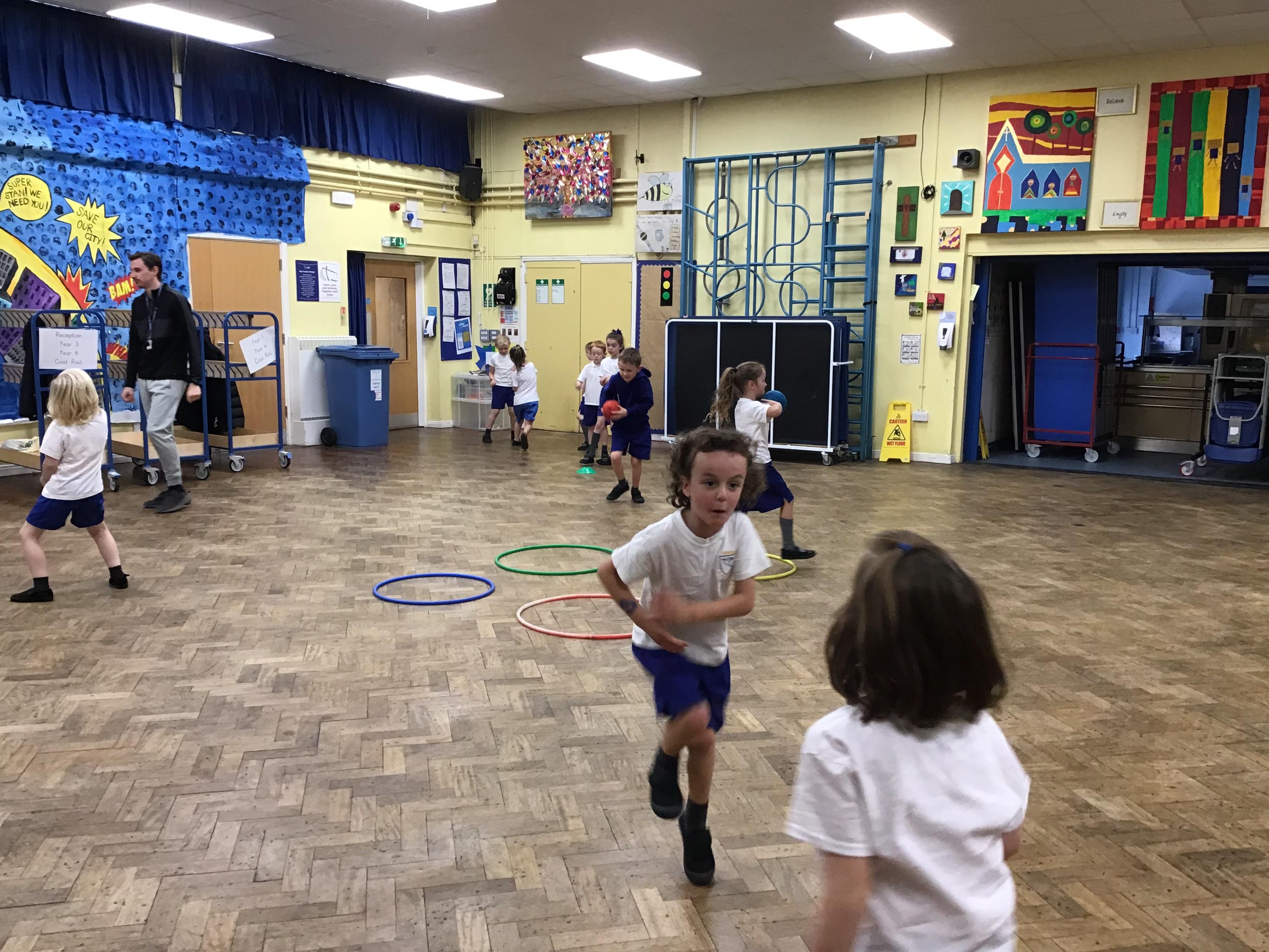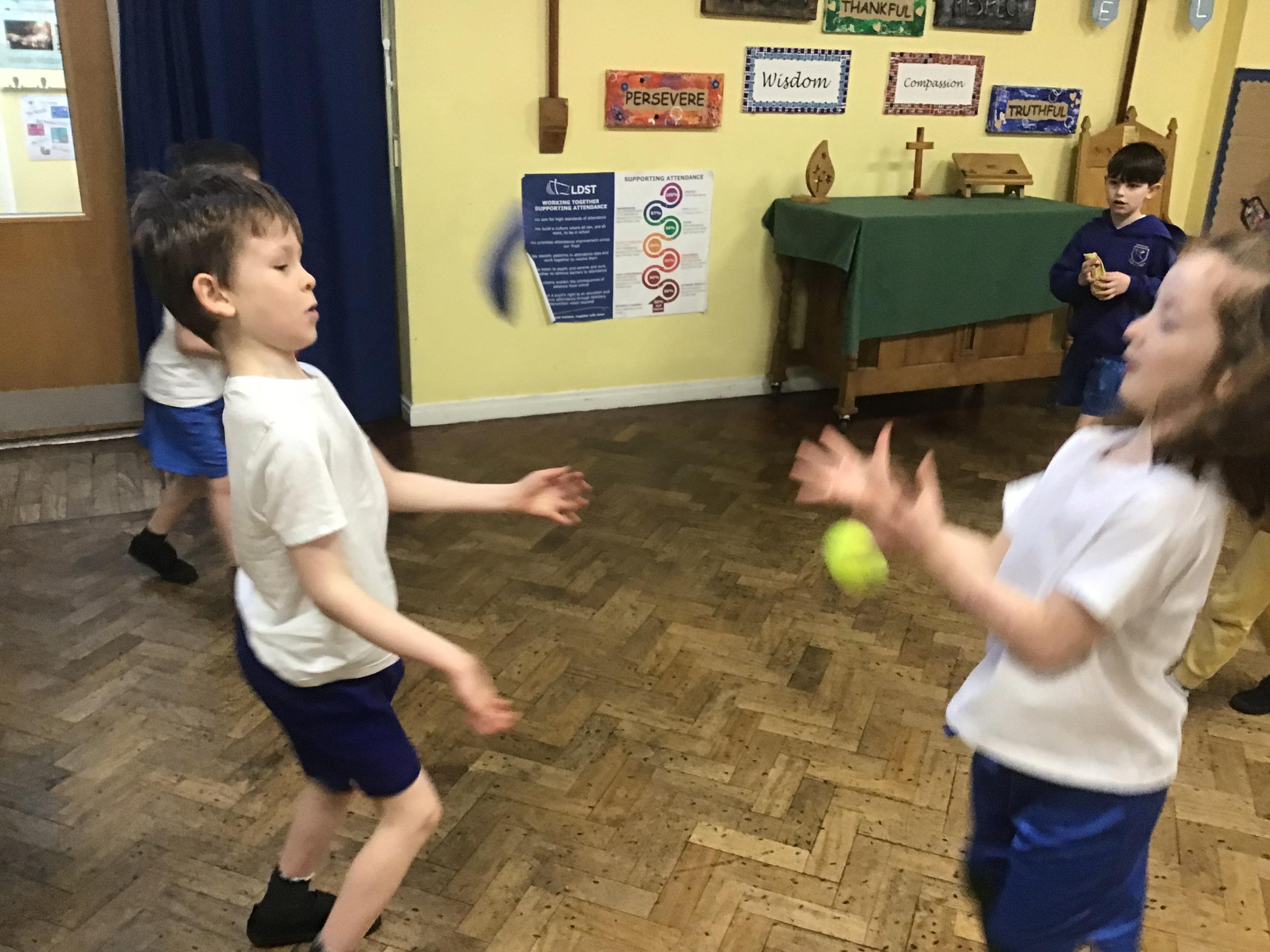In PE this week we played some games to help us increase our reaction times and practised rolling, under arm and over arm throws to a partner.