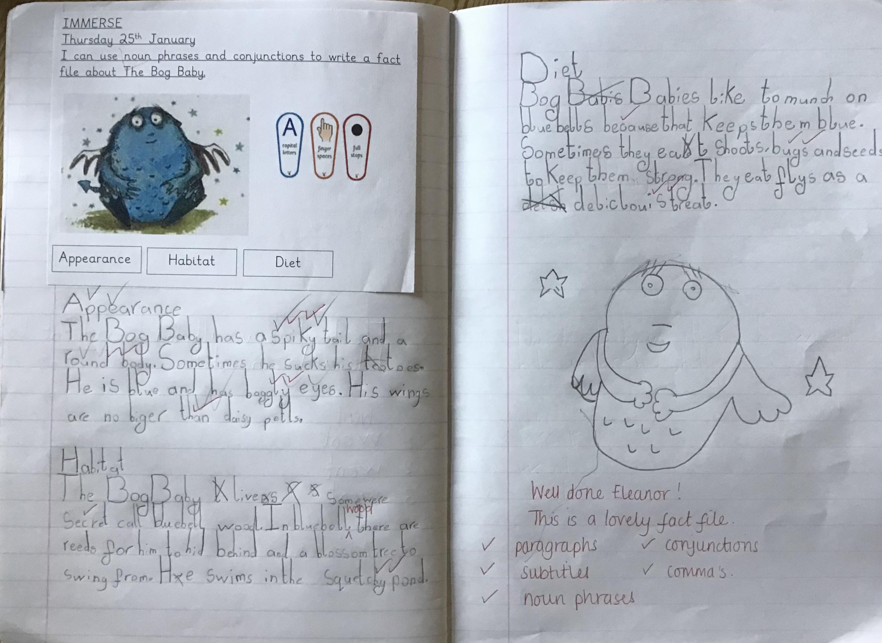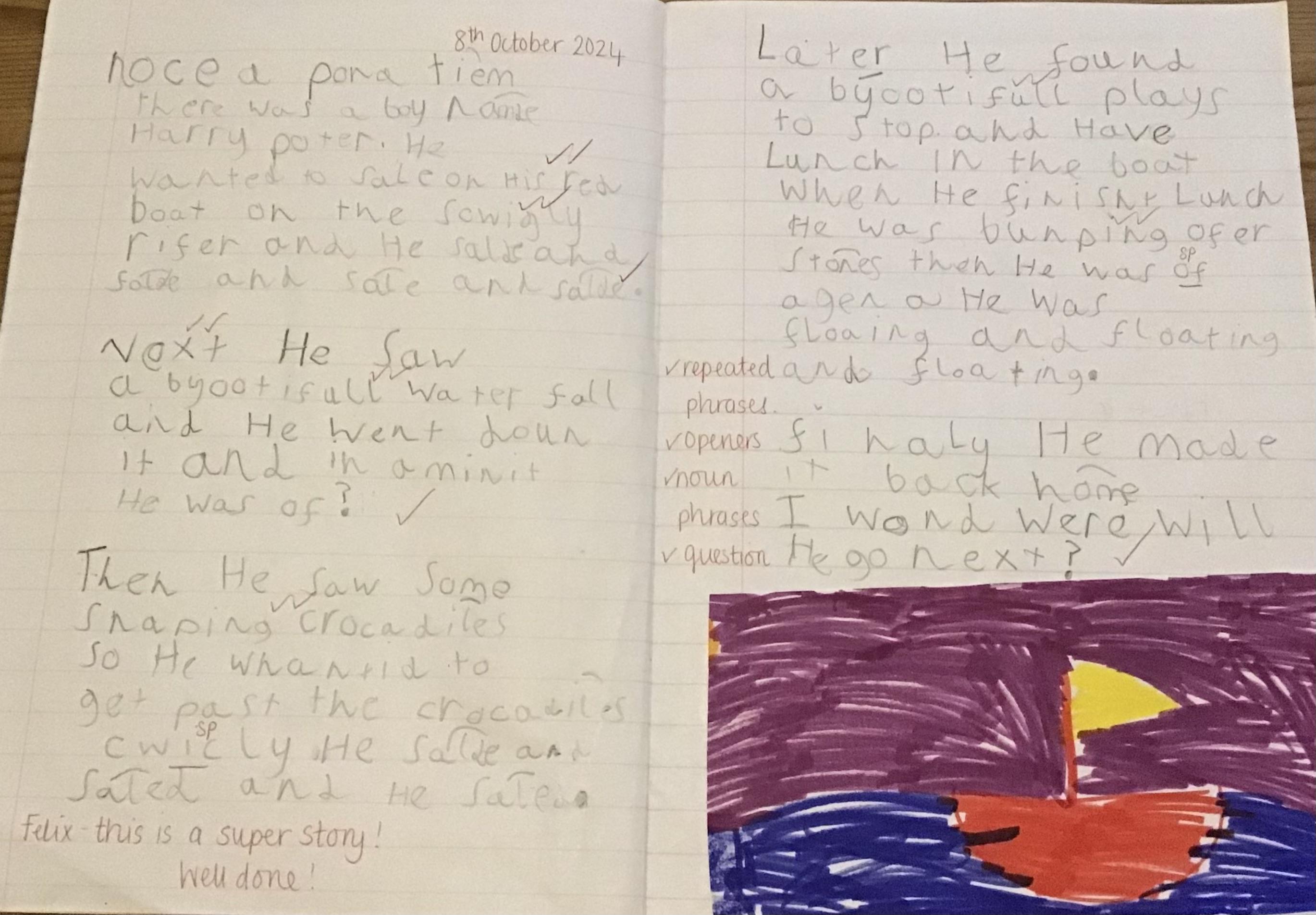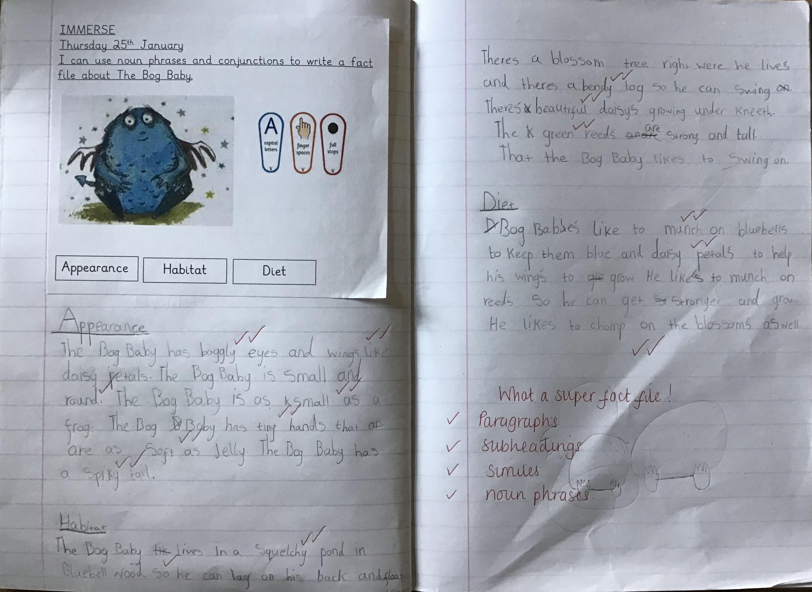 In Ready Steady Write, we have been taking inspiration from the book The River as our Vehicle Text. From this, the children have written wonderful narratives including noun phrases, fronted adverbials and a range of vocabulary. Year 2 are also currently working on letters to write to the main character in our story, analysing the structure and language features needed to write a great letter!