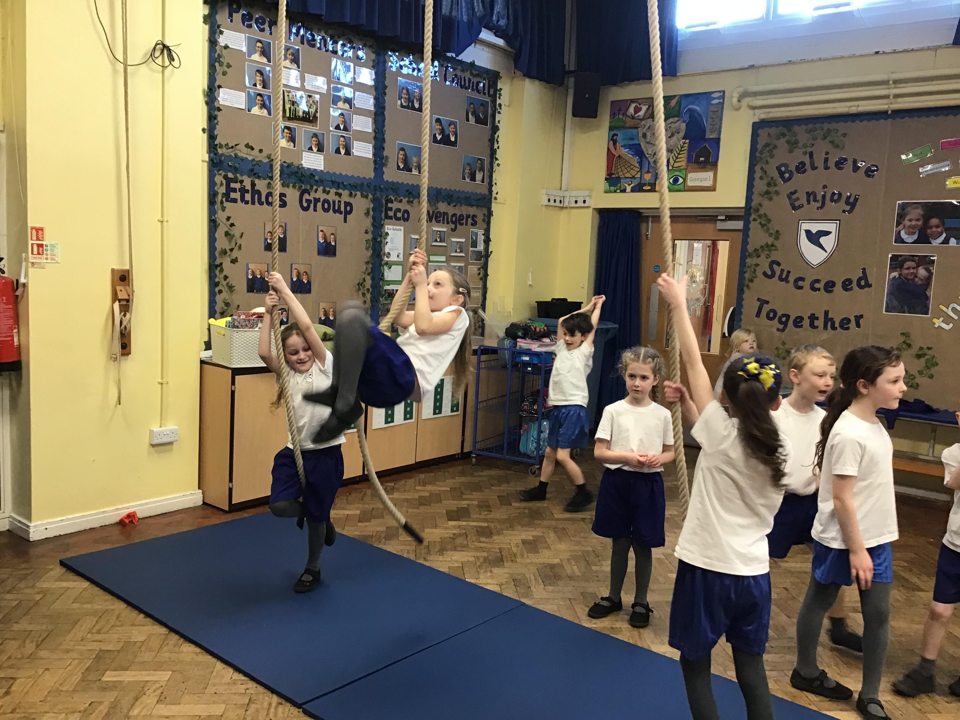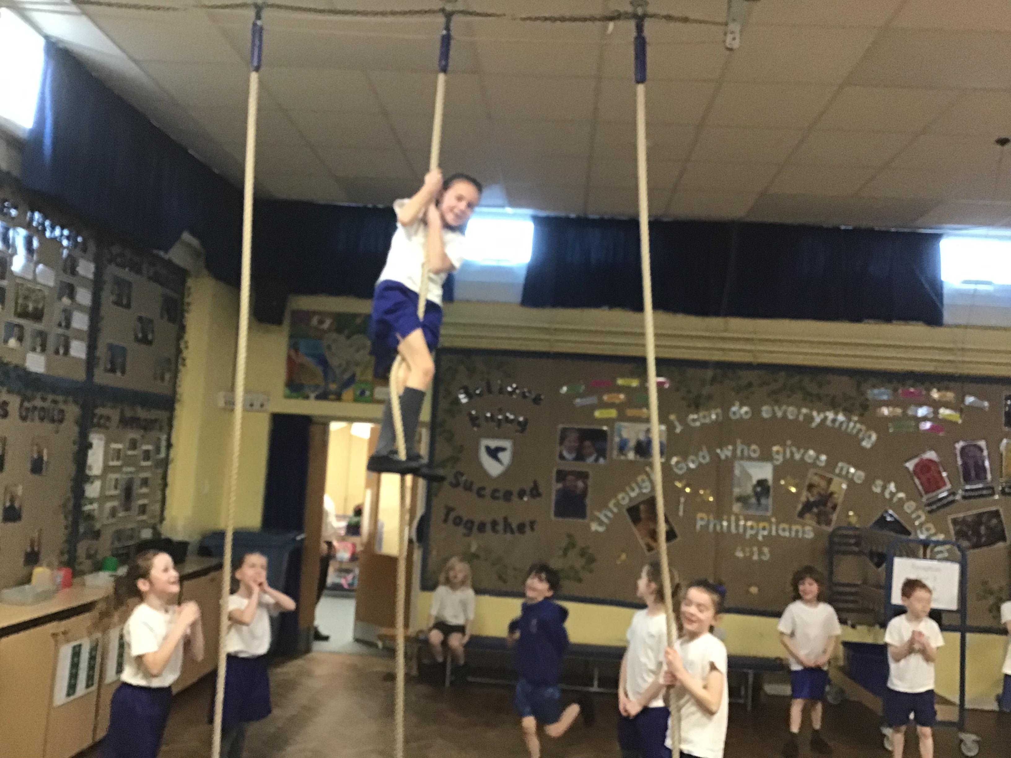 In PE we worked on team building exercises - including passing a hoop along our teams without using our hands or letting go of our team mates hands!