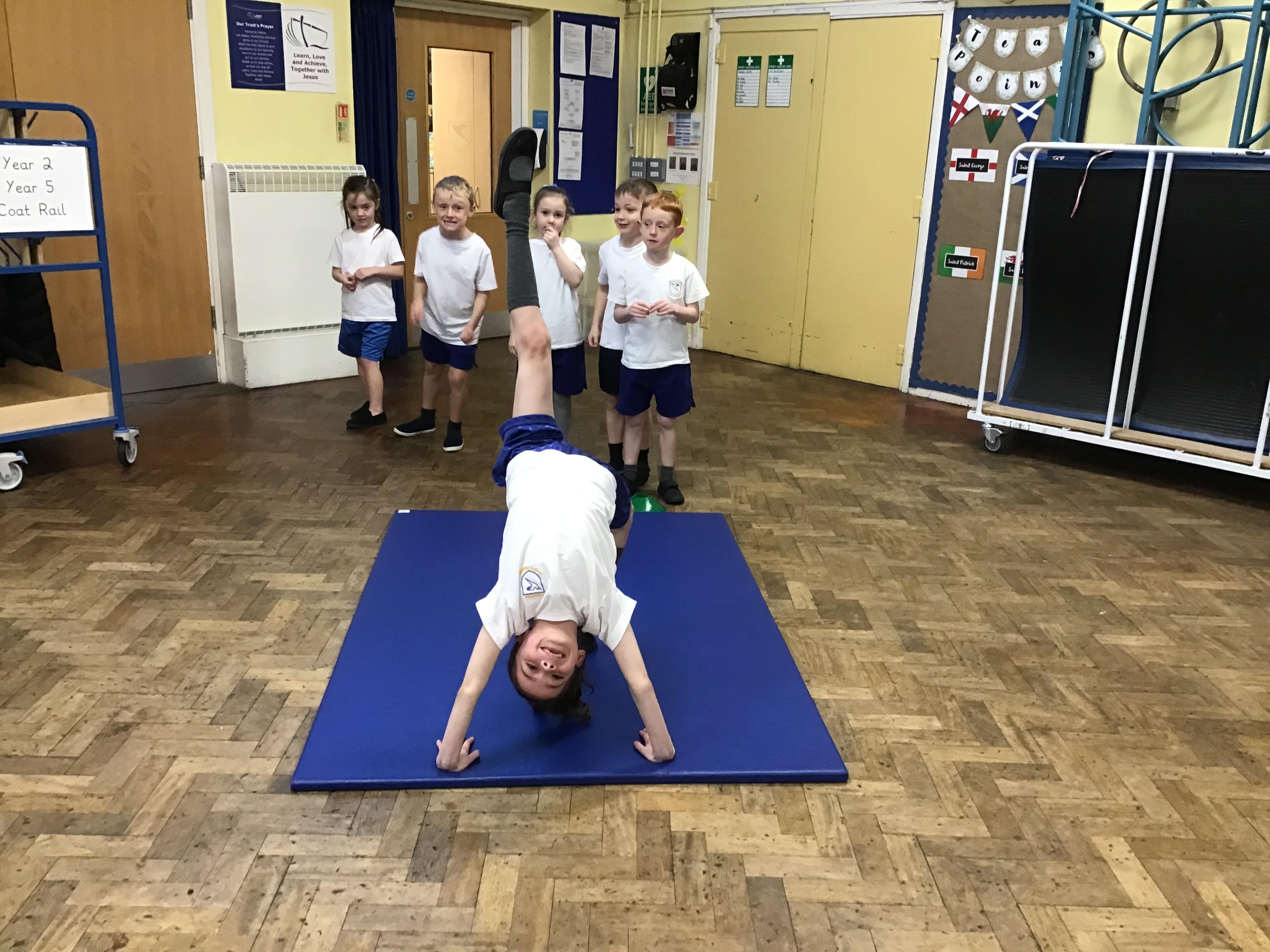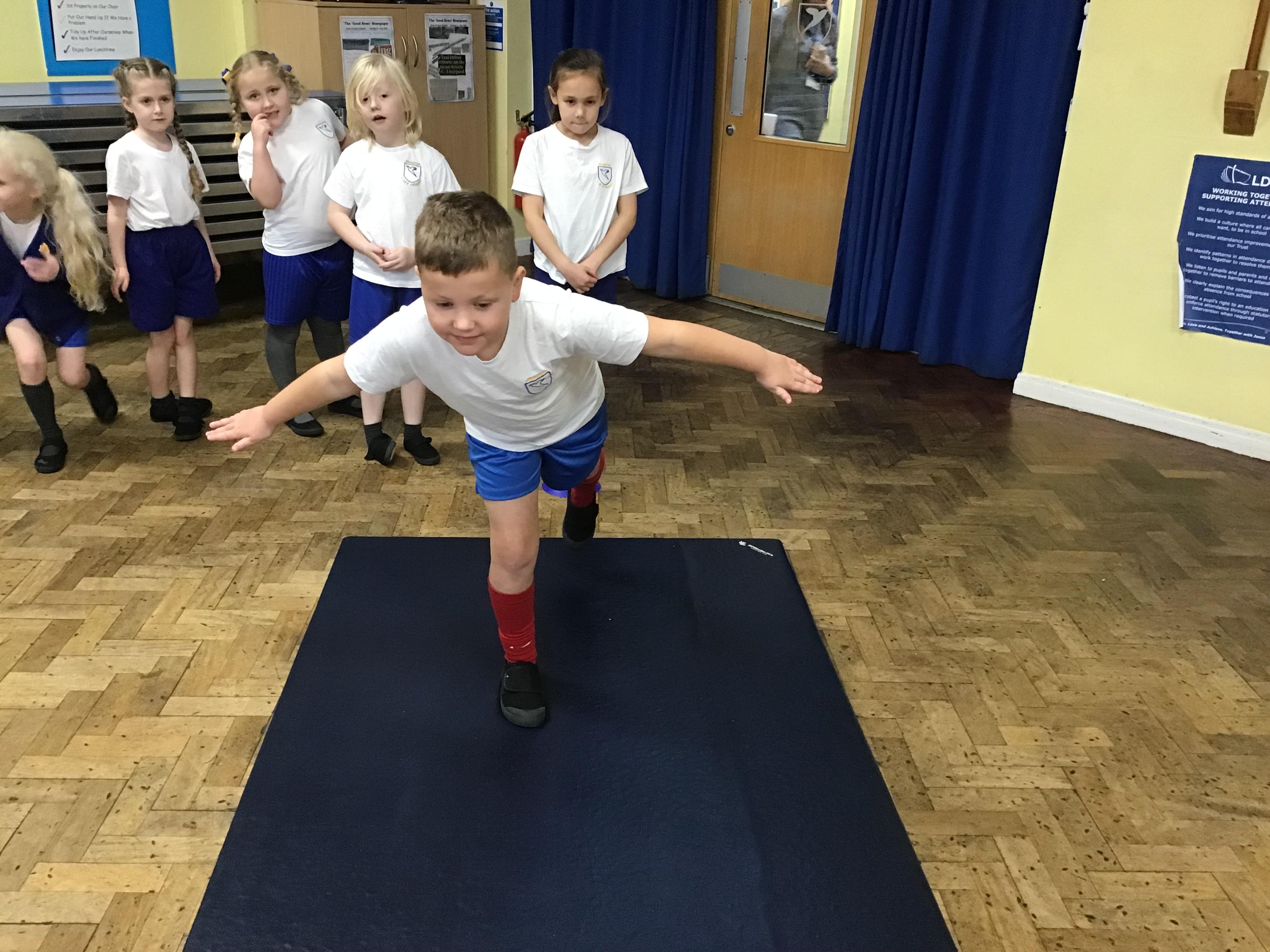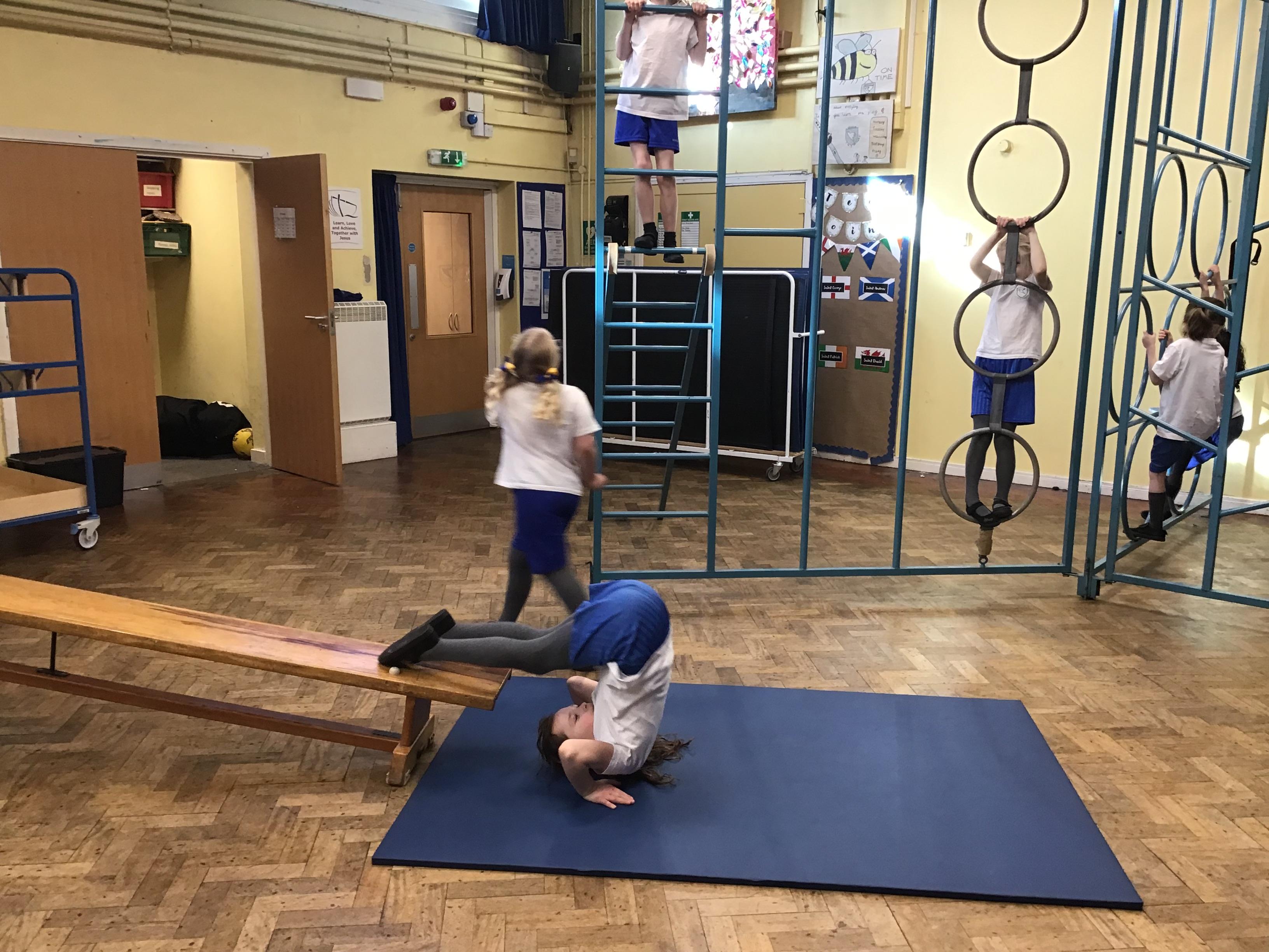 In PE we started our block on gymnastics by investigating and developing our rolling, balancing and jumping and putting routines together.