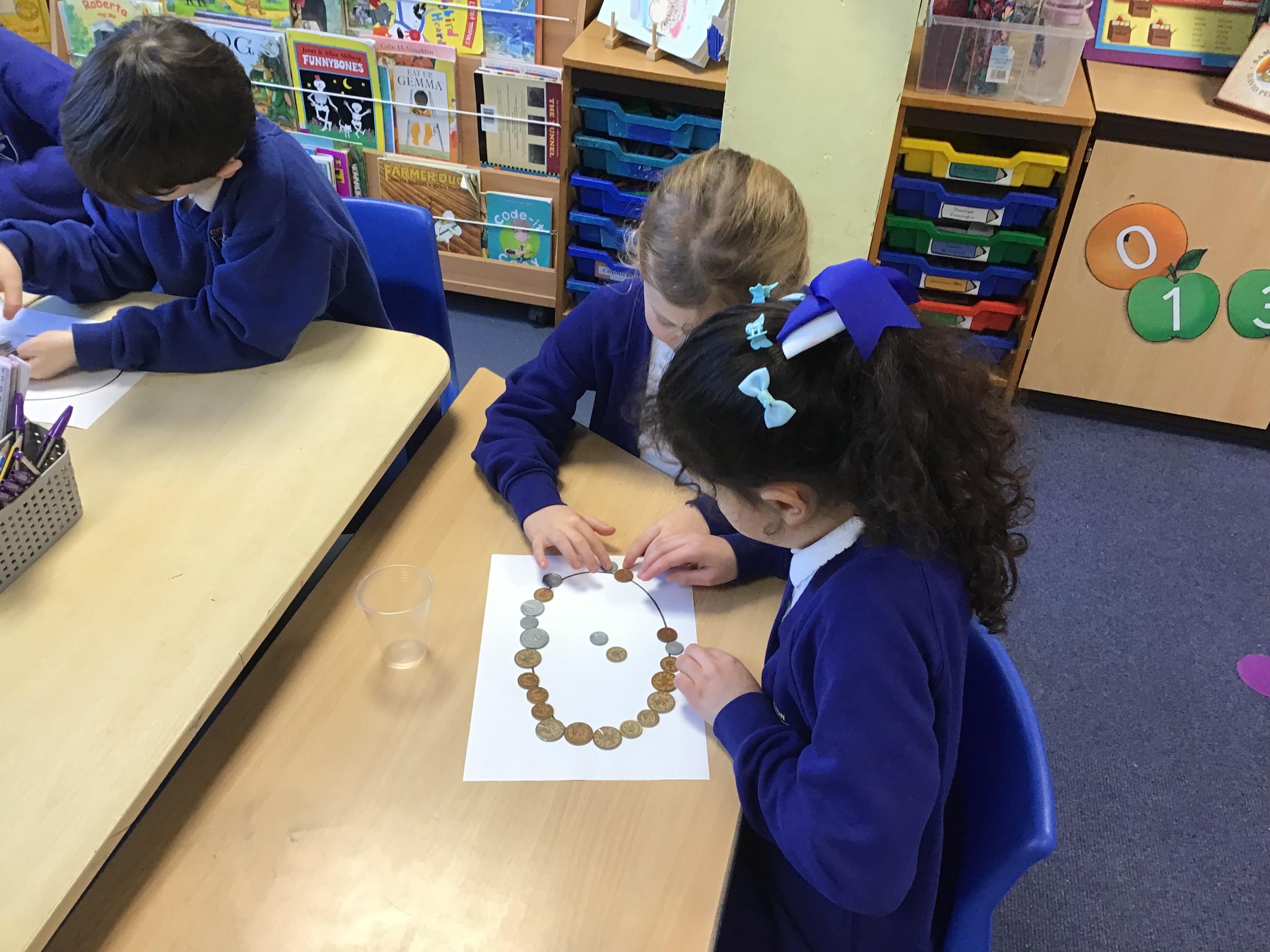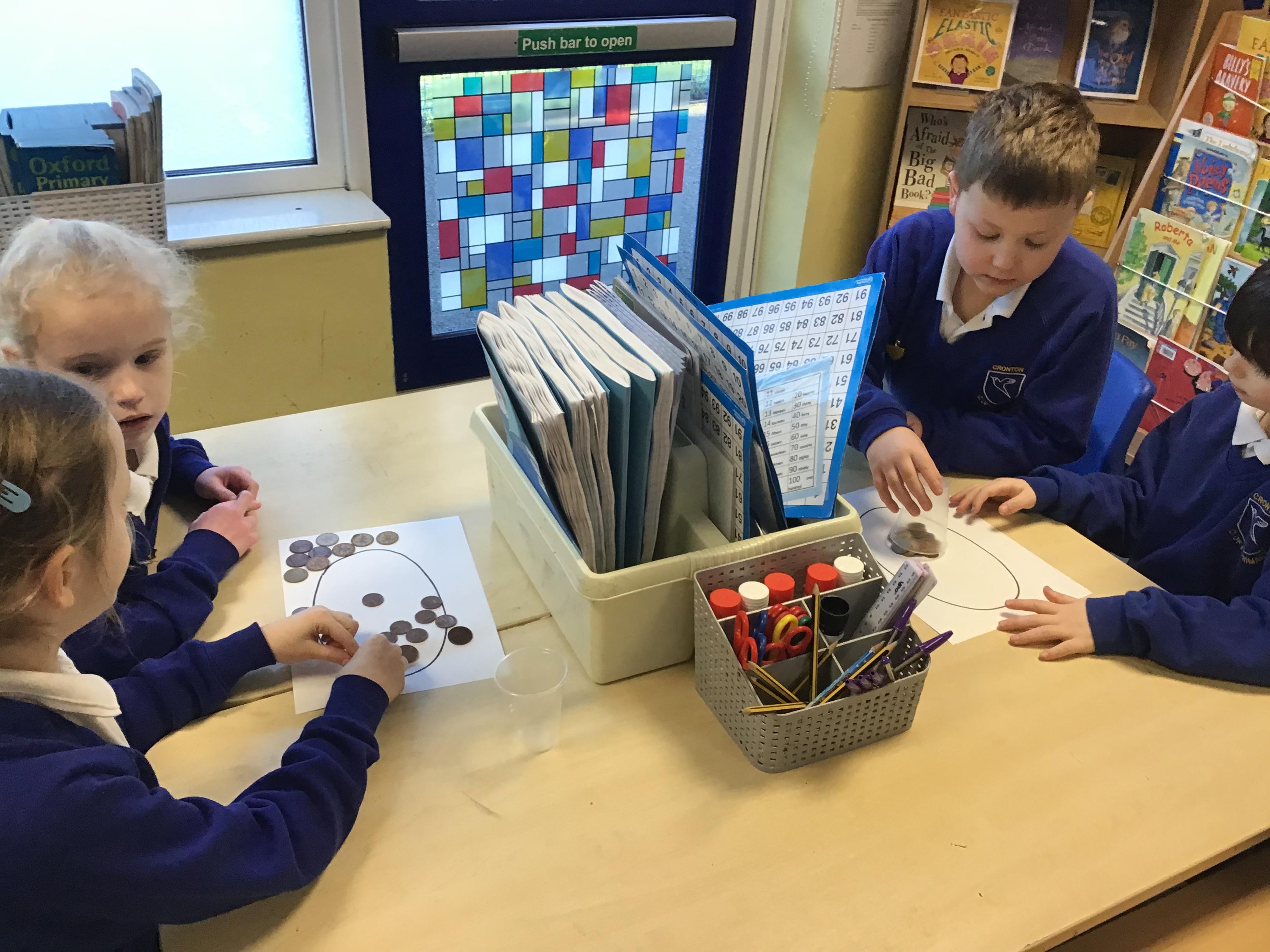 In maths this week we have been looking at how knowing our number bonds to 10 can help us work out and learn out number bonds to 100. So for example if we know 2 + 8 = 10, then we also know 20 + 80 = 100 - it is the same but 10 times bigger. We looked at the difference between counting how many 10's there are in a number and how many single units there are in a number. For example 28 has 2 tens and 8 ones and is 20 + 8. We found this a little tricky as sometimes we were recording 20 tens and 8 ones. Practice at home to help with this could be done using 10p and 1p pieces.