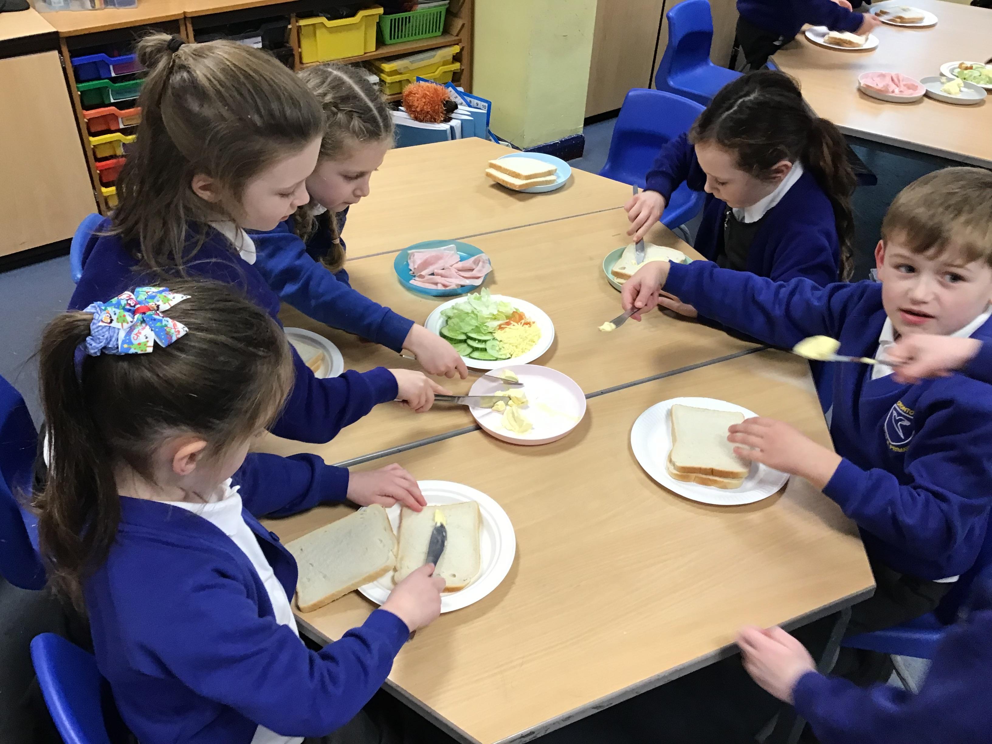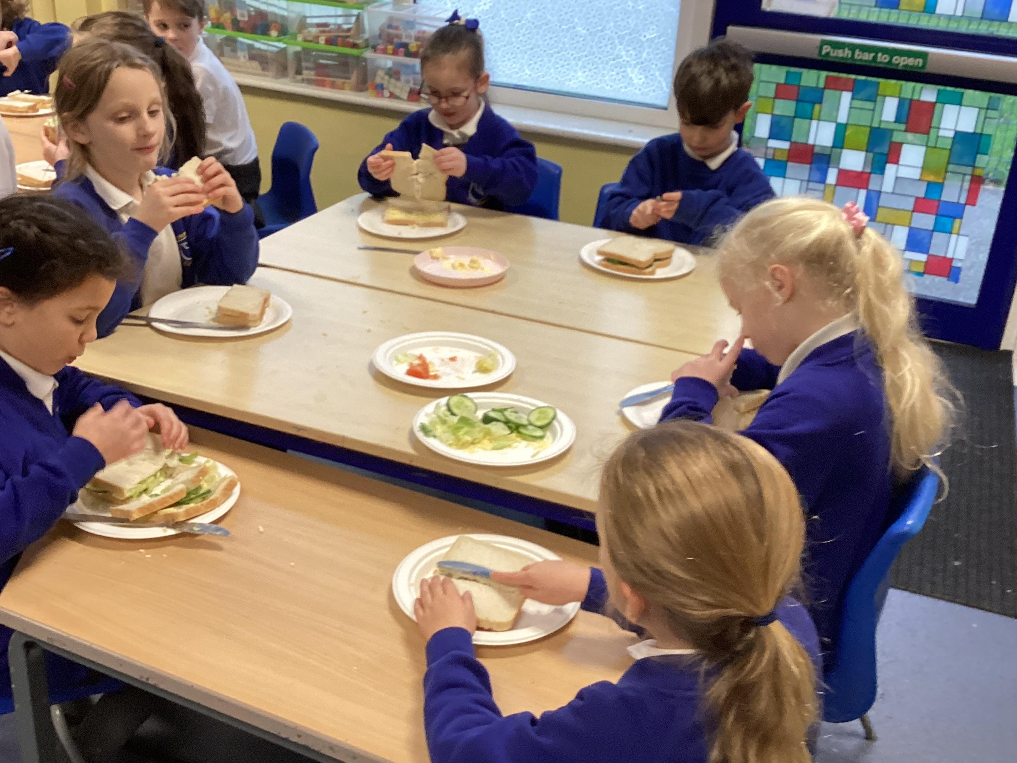 We finished our DT block by making (and eating) our sandwiches! Everyone seemed to enjoy every mouthful and there were lots of children using safe methods they had learned very well to slice their ingredients.