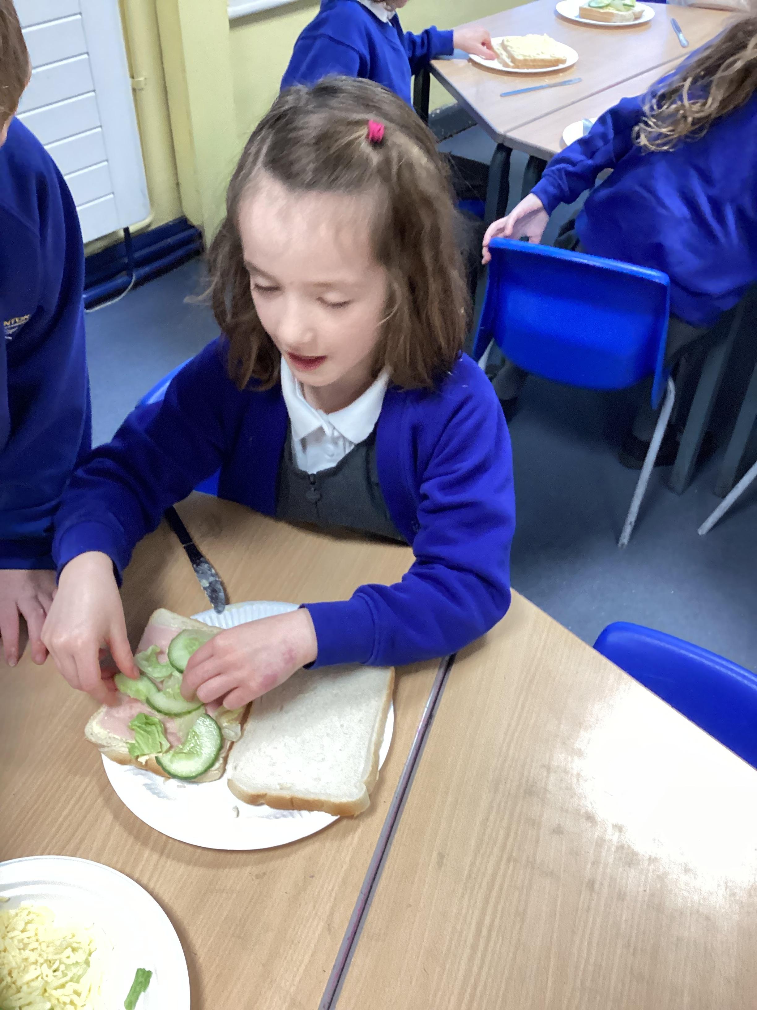 In P.E. we continued with our team games and carried on working towards our sandwich making in DT.