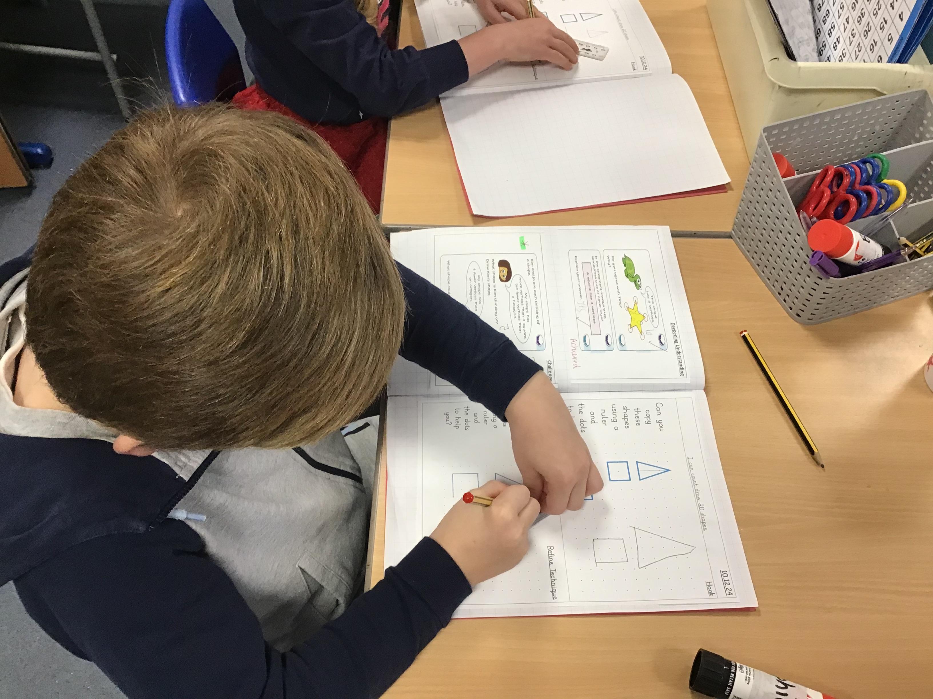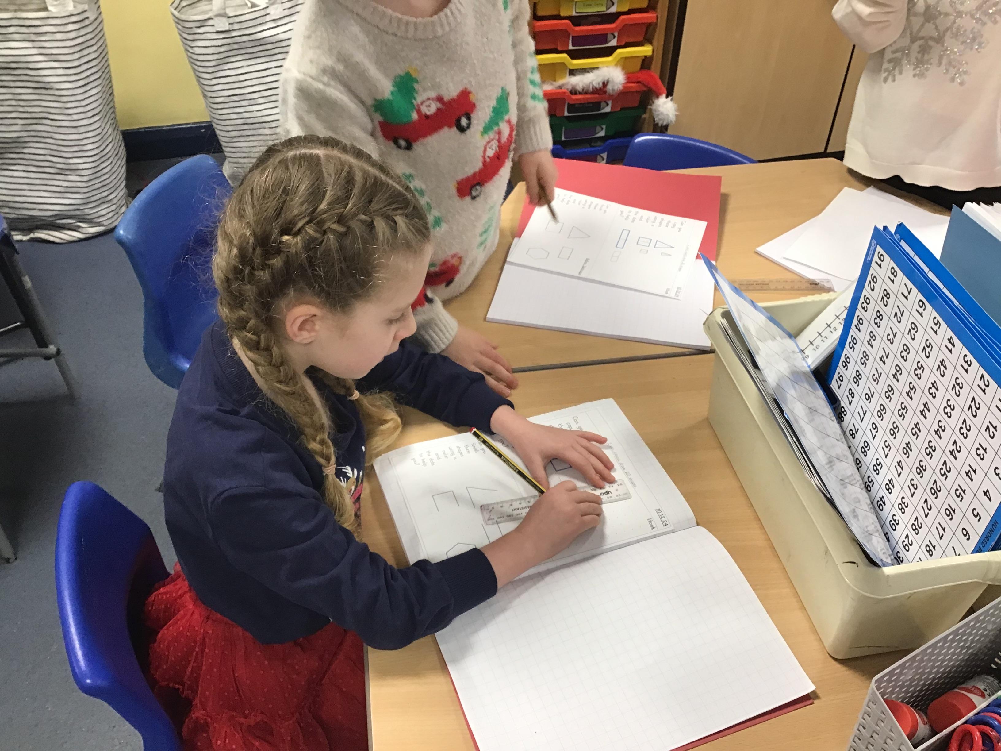 In our maths we have started our new block on 2D and 3D shapes. We have named them, looked at edges and sides, faces and vertices. We have also learned that shapes such as pentagons and hexagons are not always regular! Then we learned about symmetry and tired our best to complete shapes so that they were symmetrical.